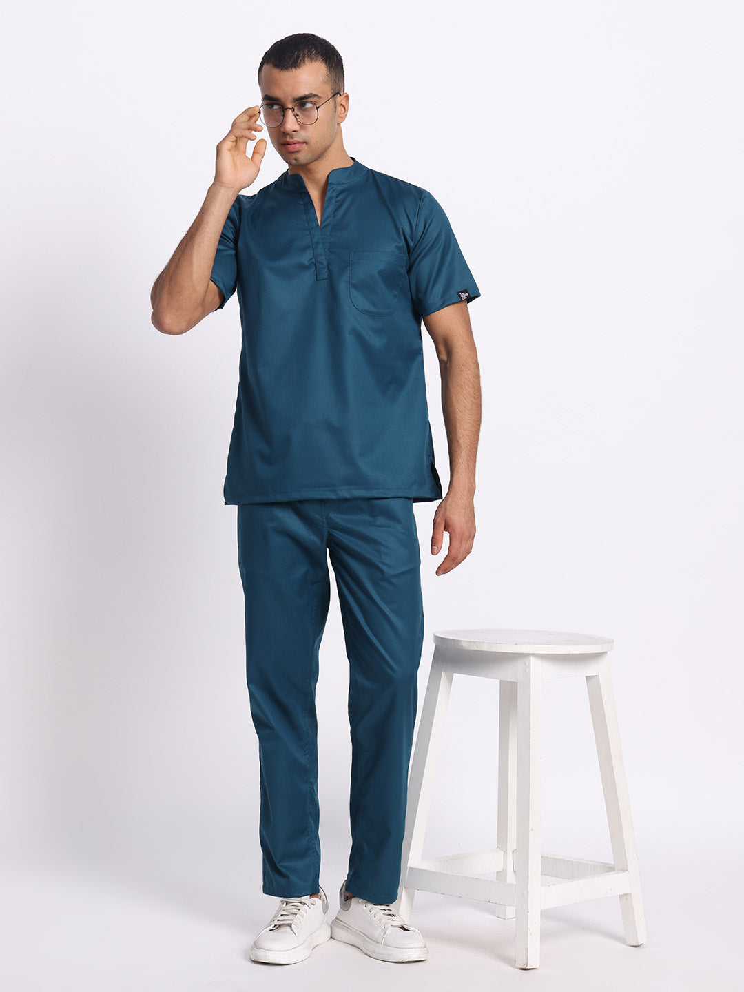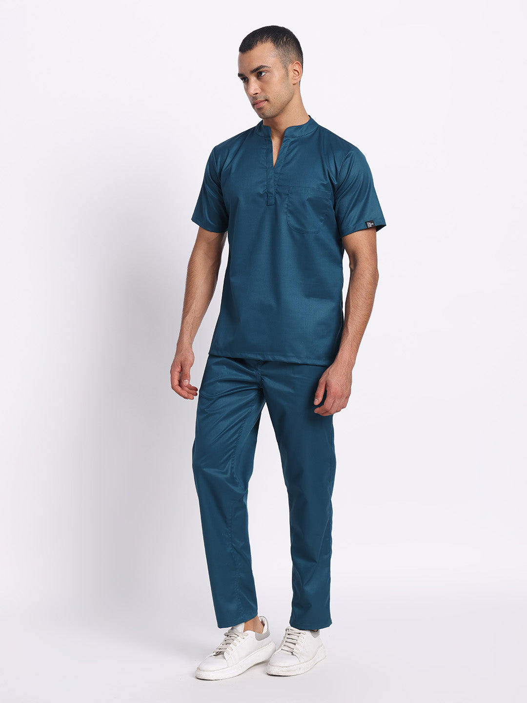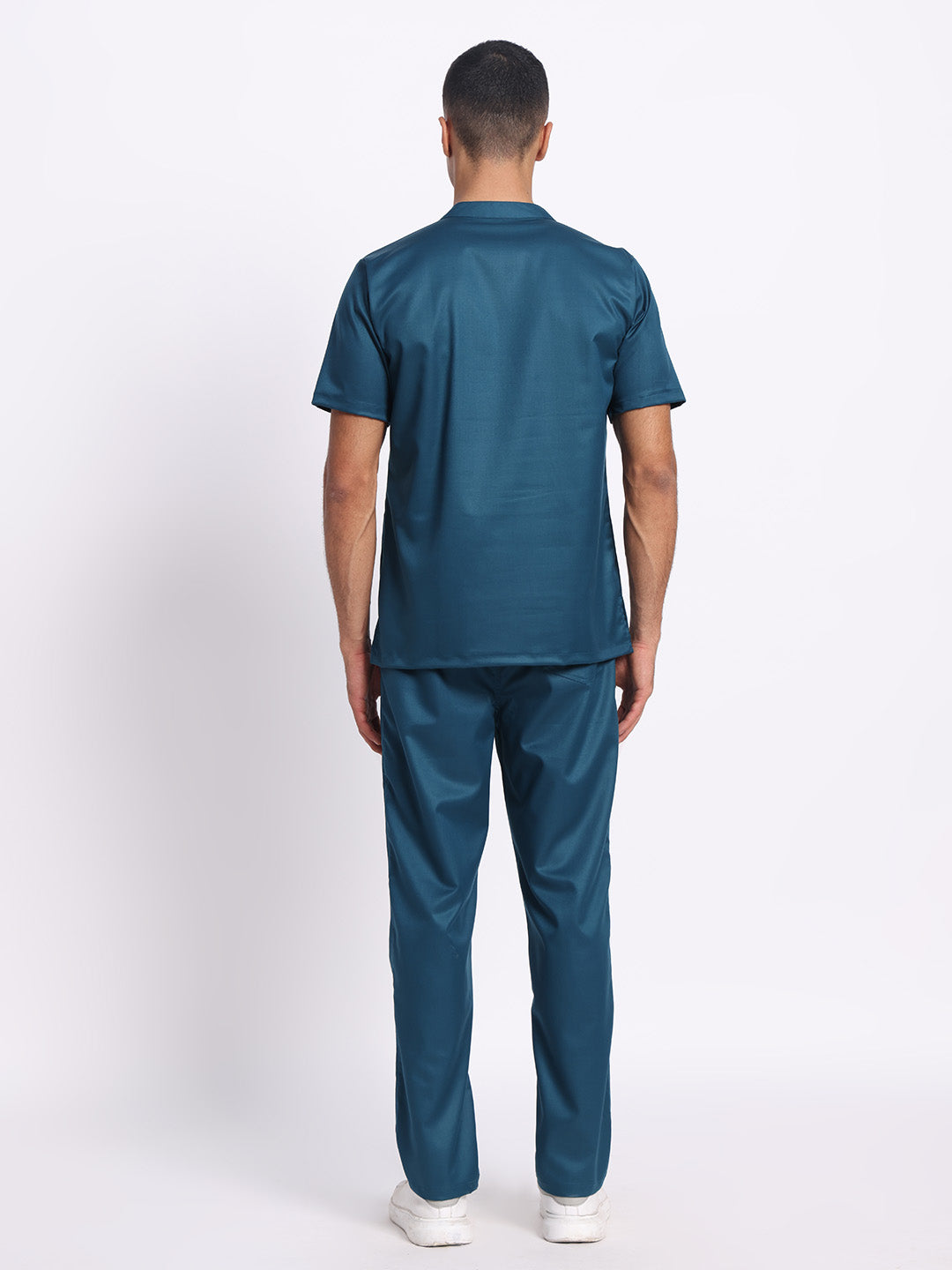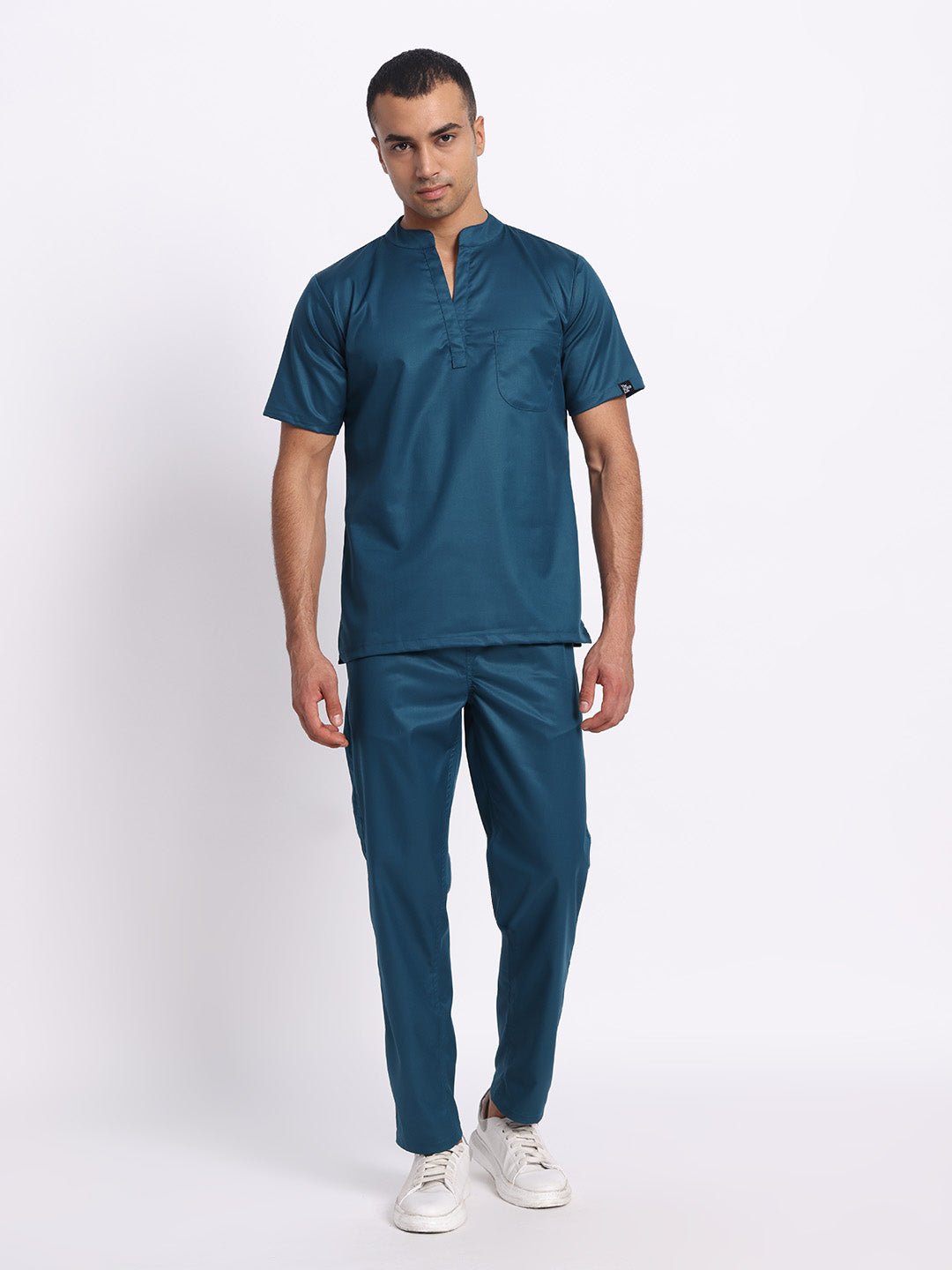 Stretchable (2Way) Male Forest Green Mandarin Neck With Straight Pant Scrub Set