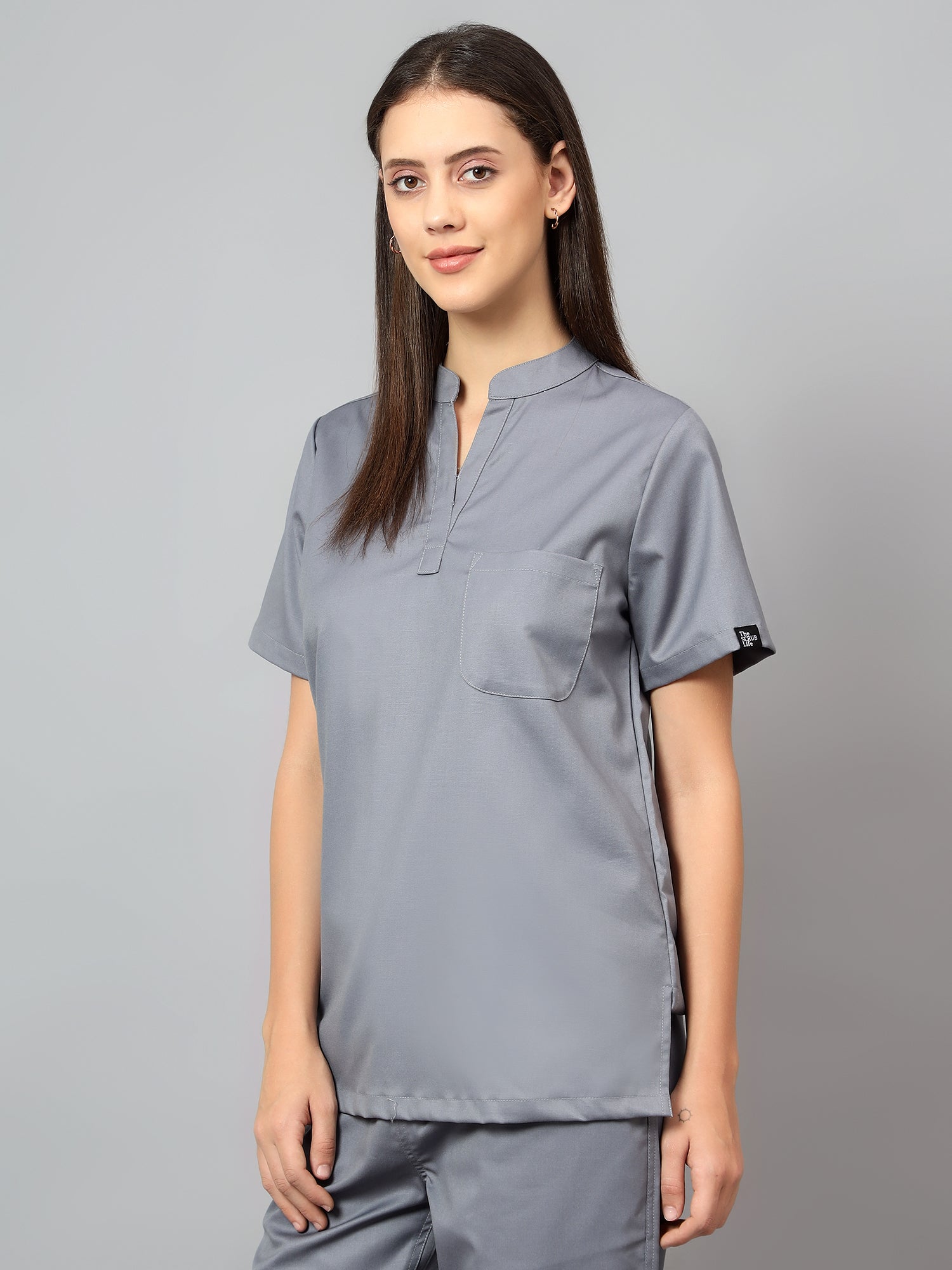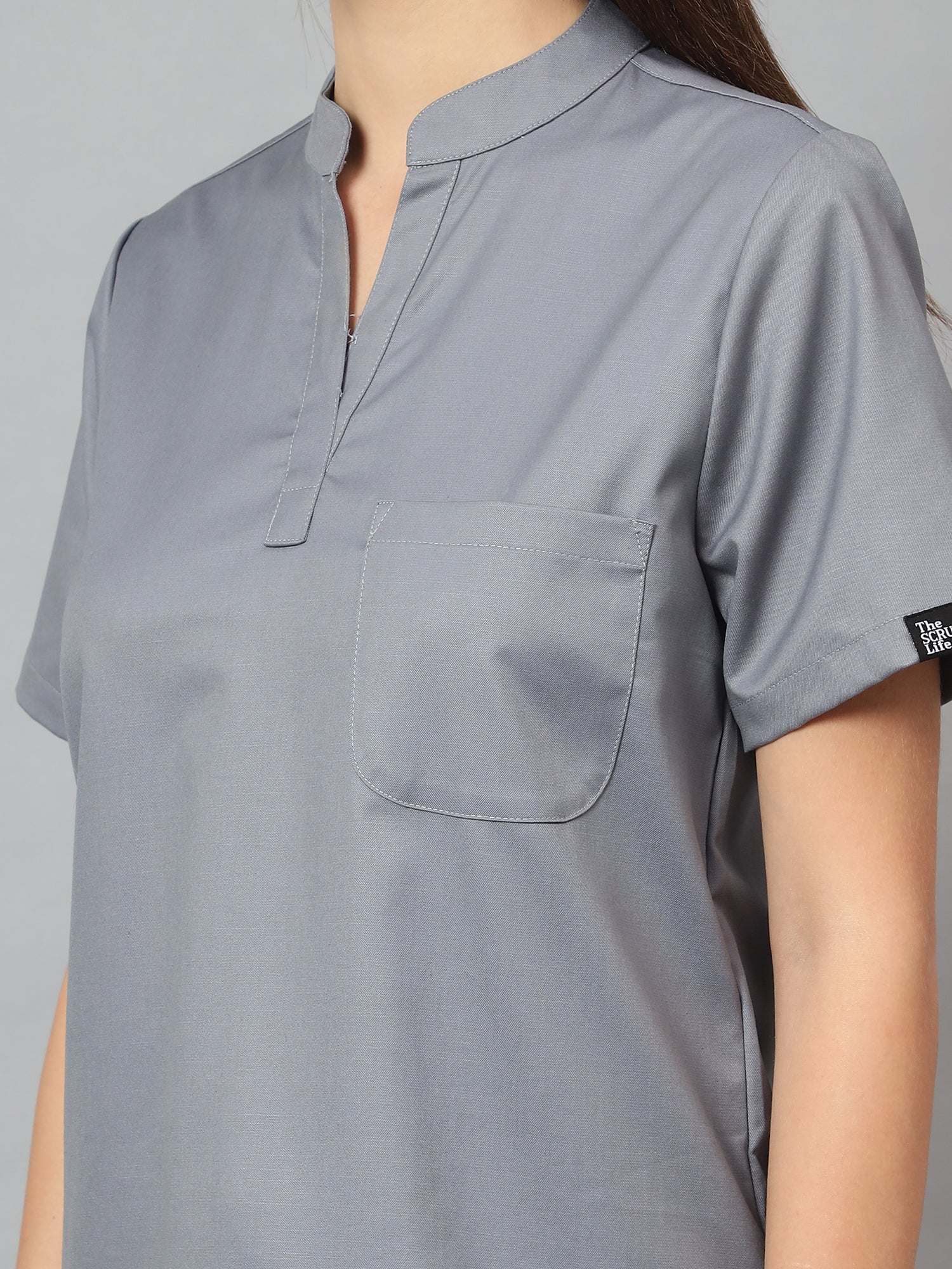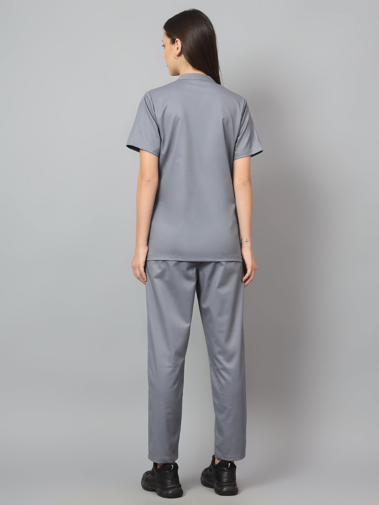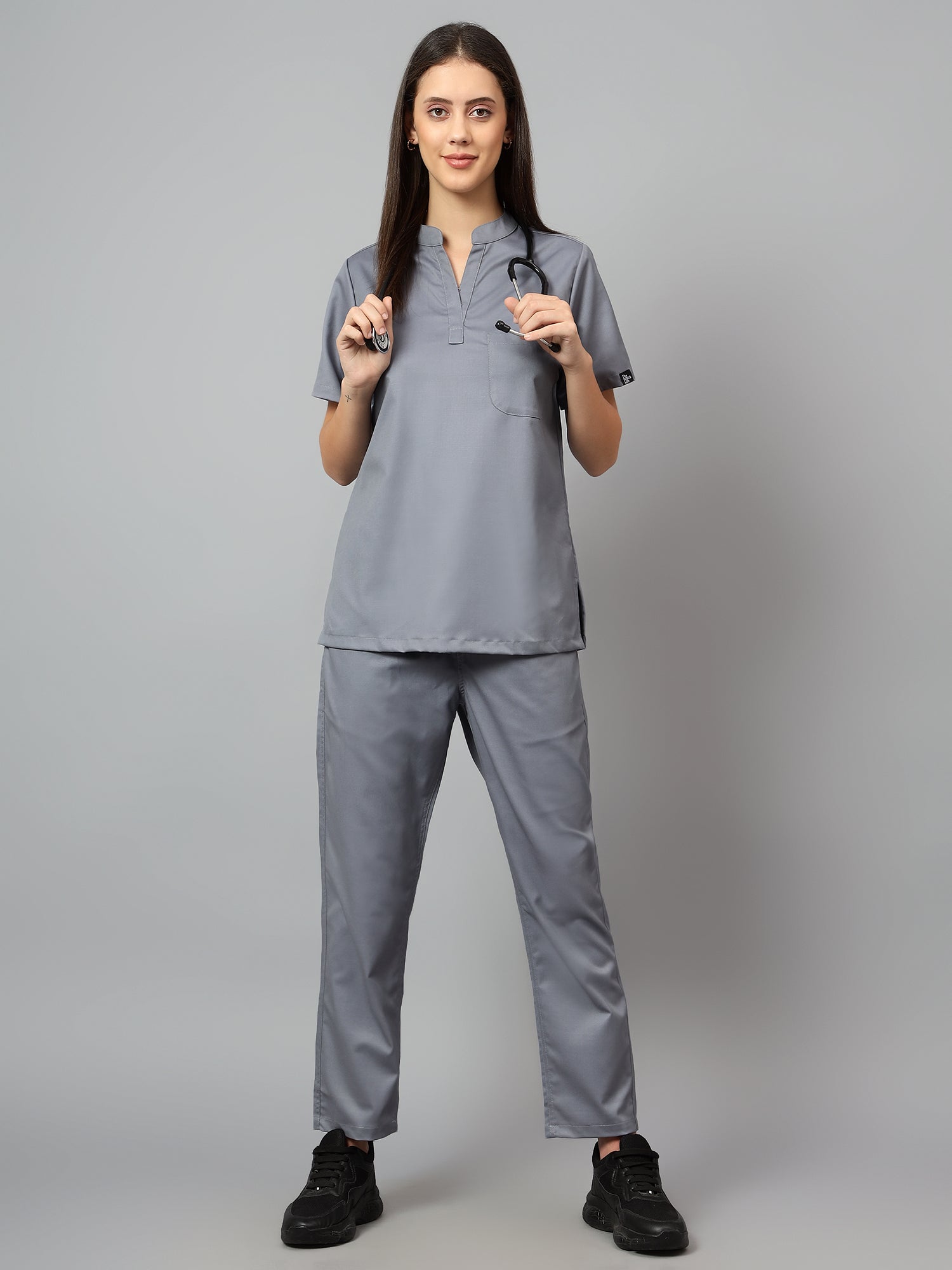 Stretchable (2Way) Female Graphite Mandarin Neck With Straight Pant Scrub Set