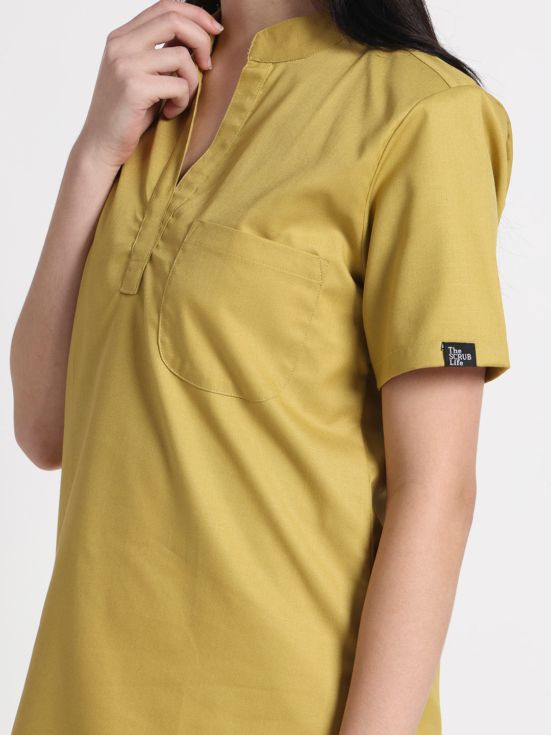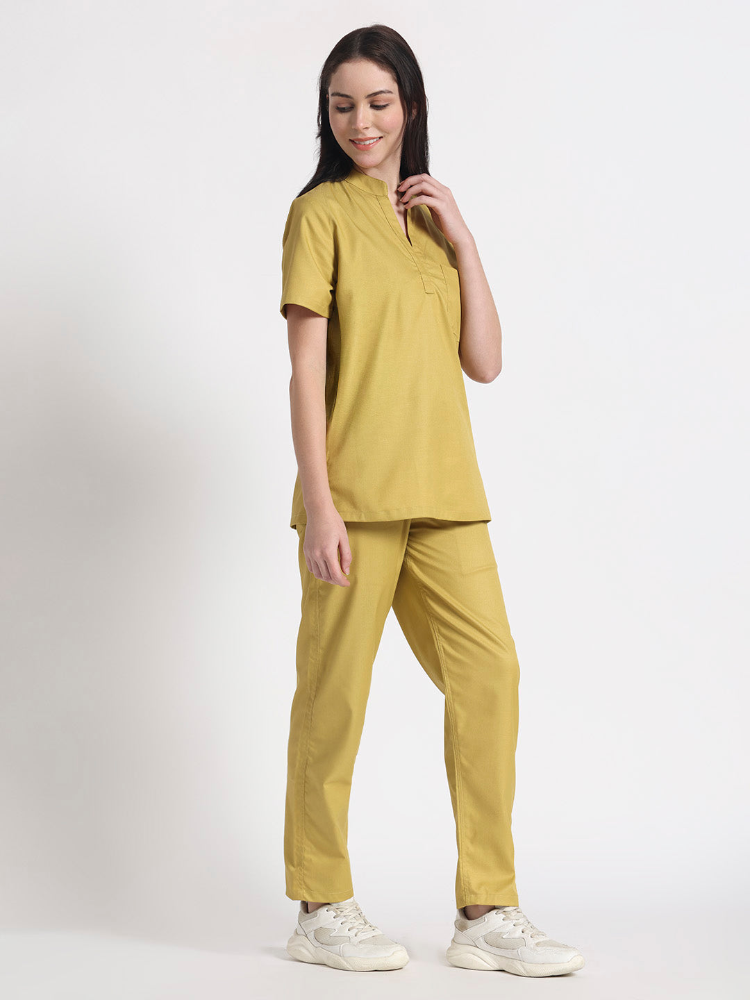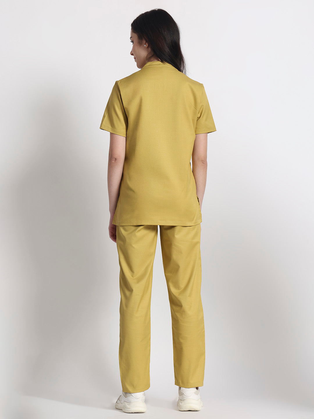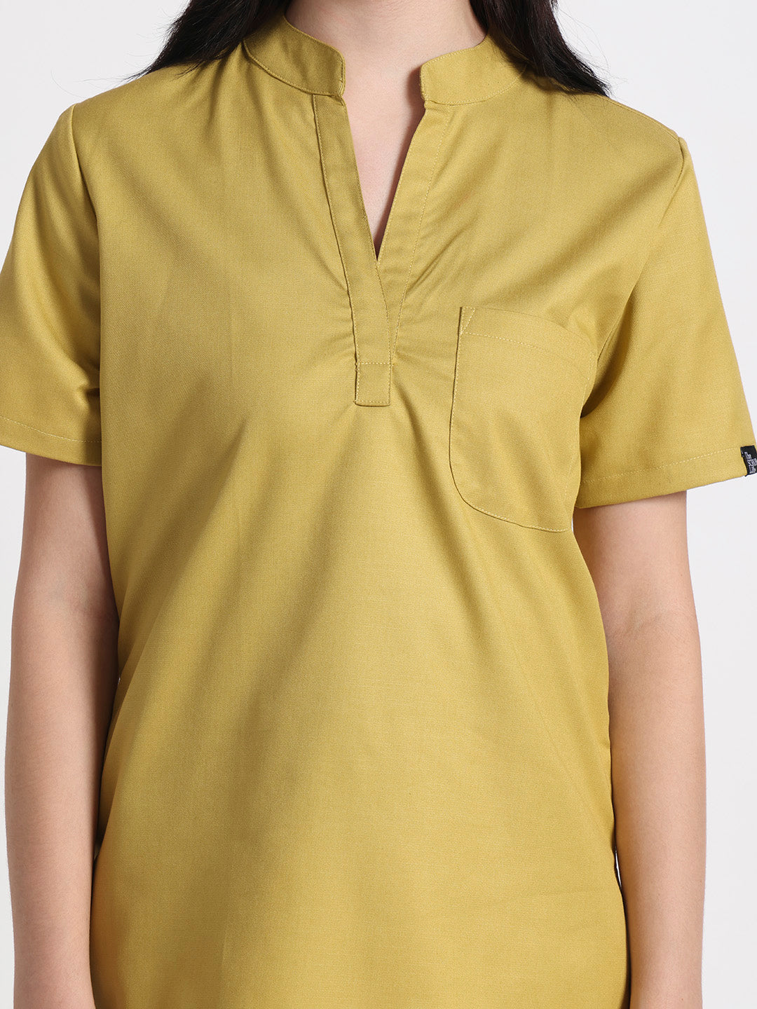 Stretchable (2Way) Female Mustard Mandarin Neck With Straight Pant Scrub Set