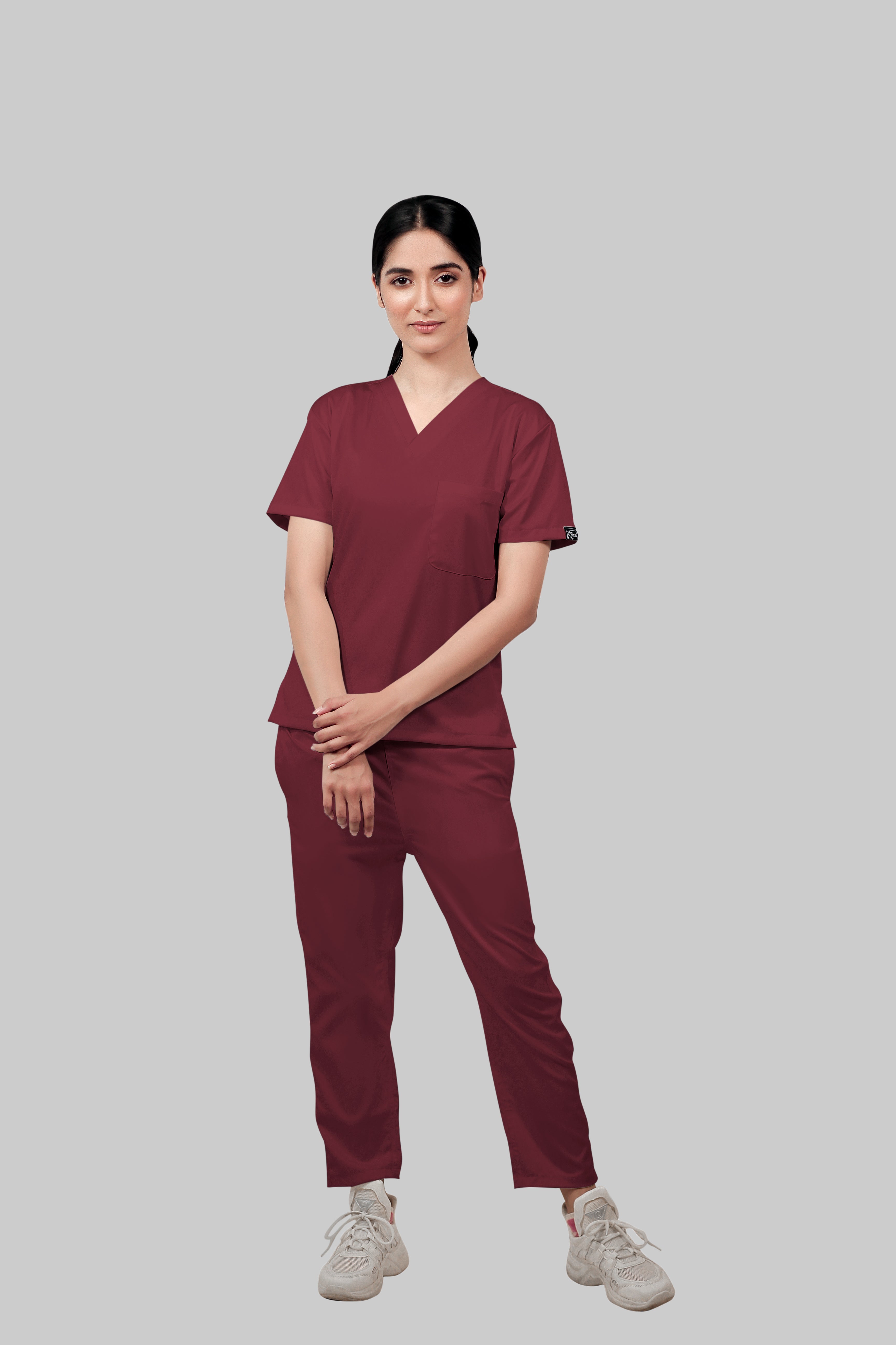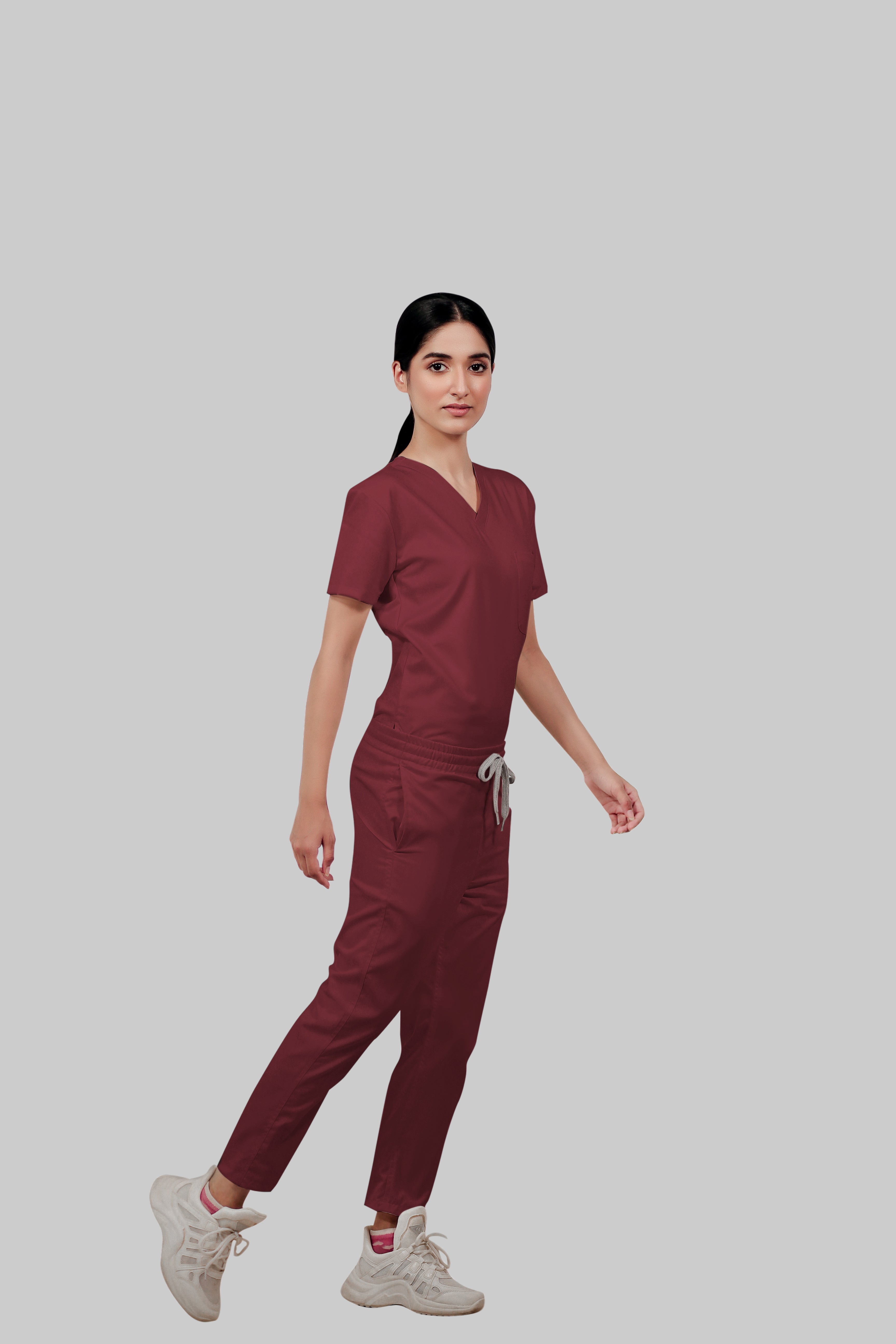Stretchable (2Way) Female Maroon Straight Scrub Pant