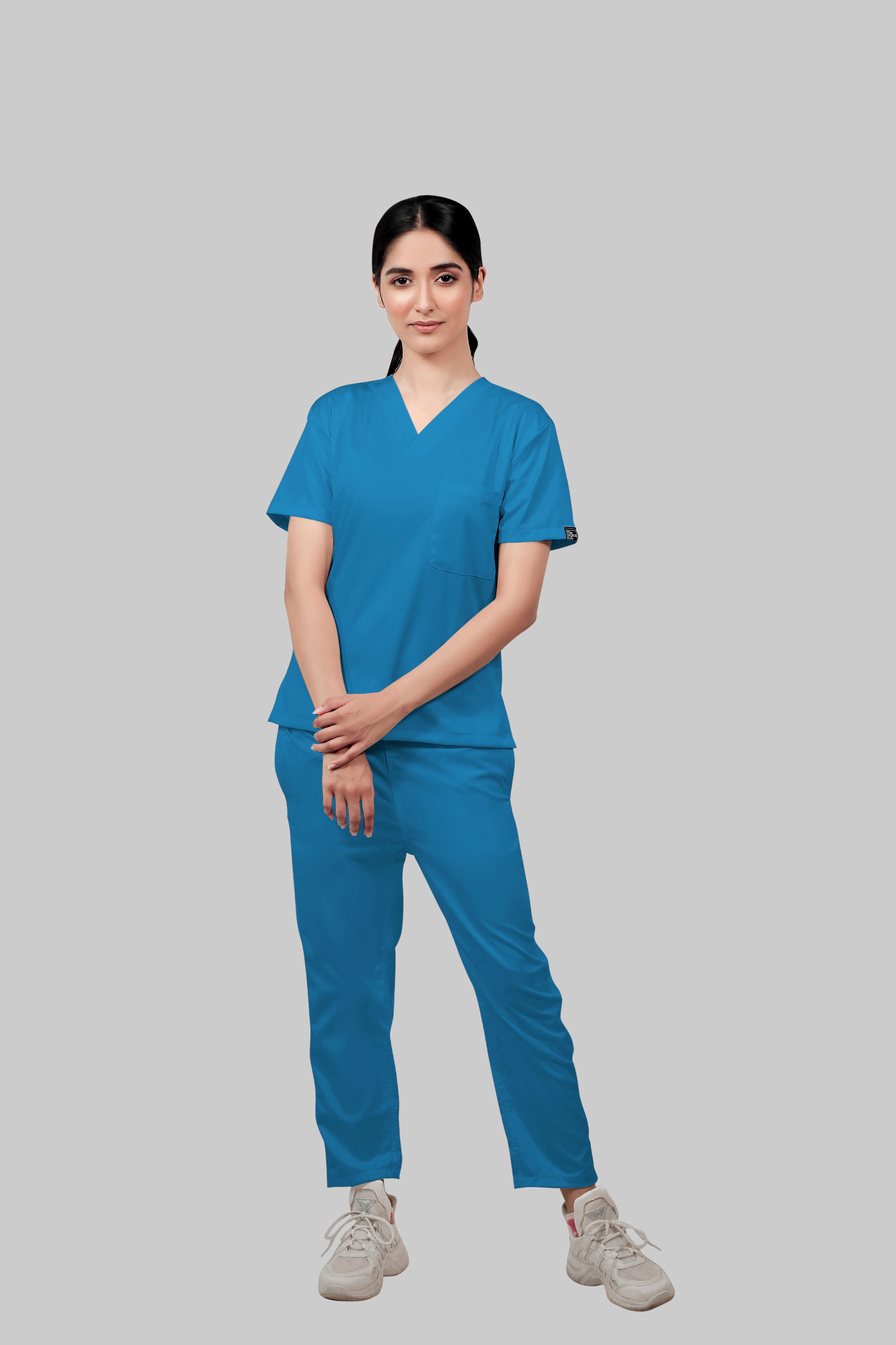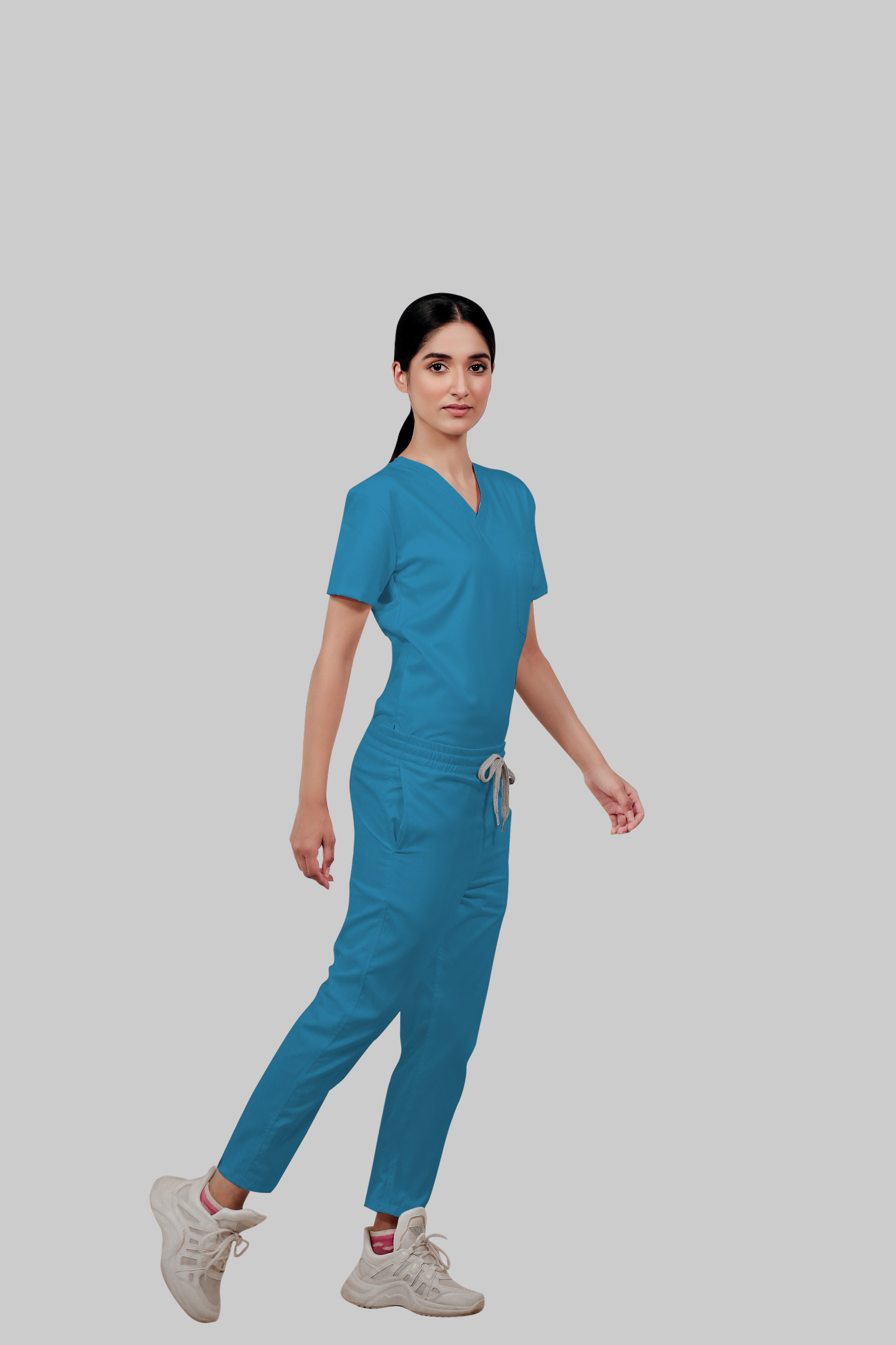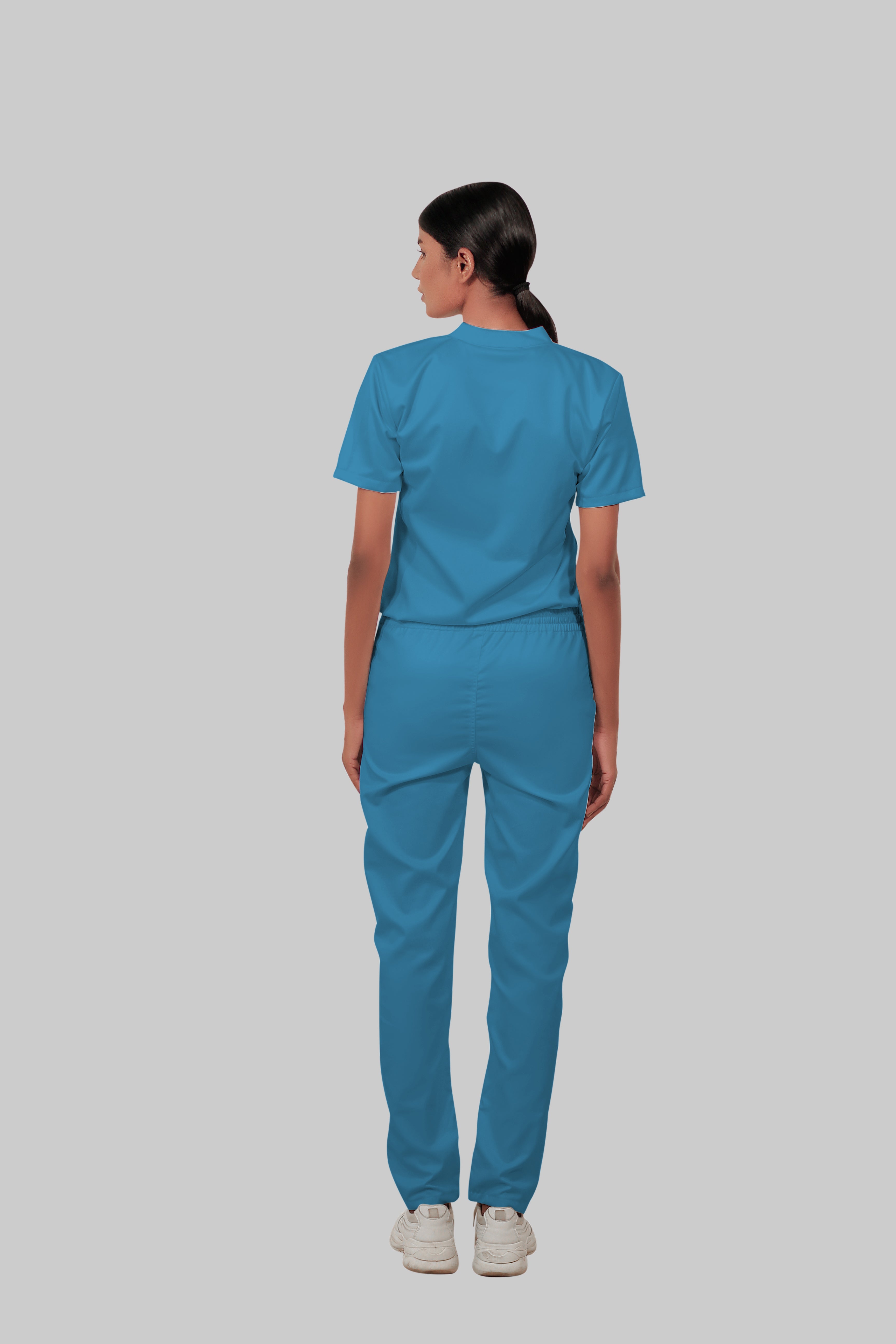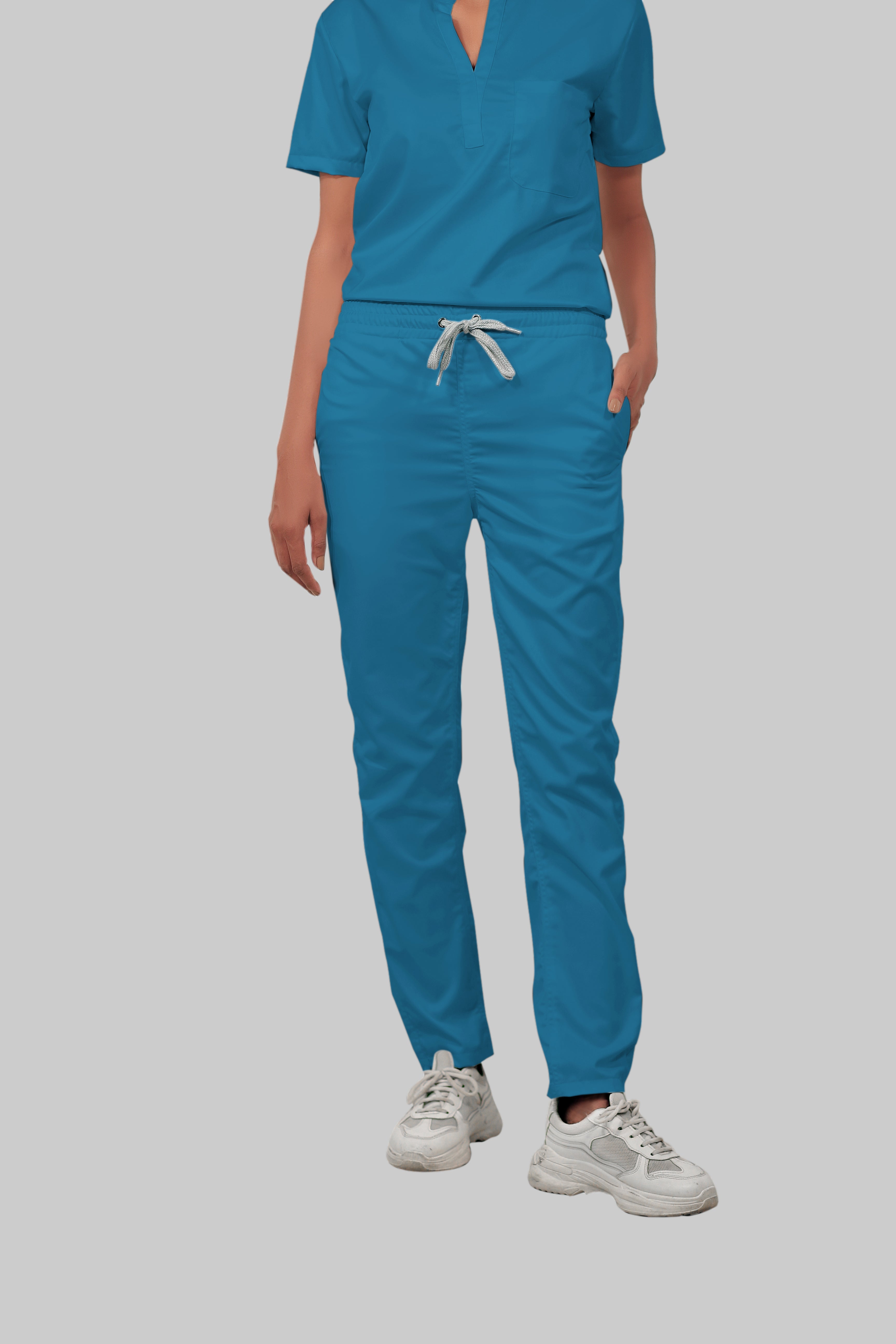 Stretchable (2Way) Female Peacock Blue Straight Scrub Pant