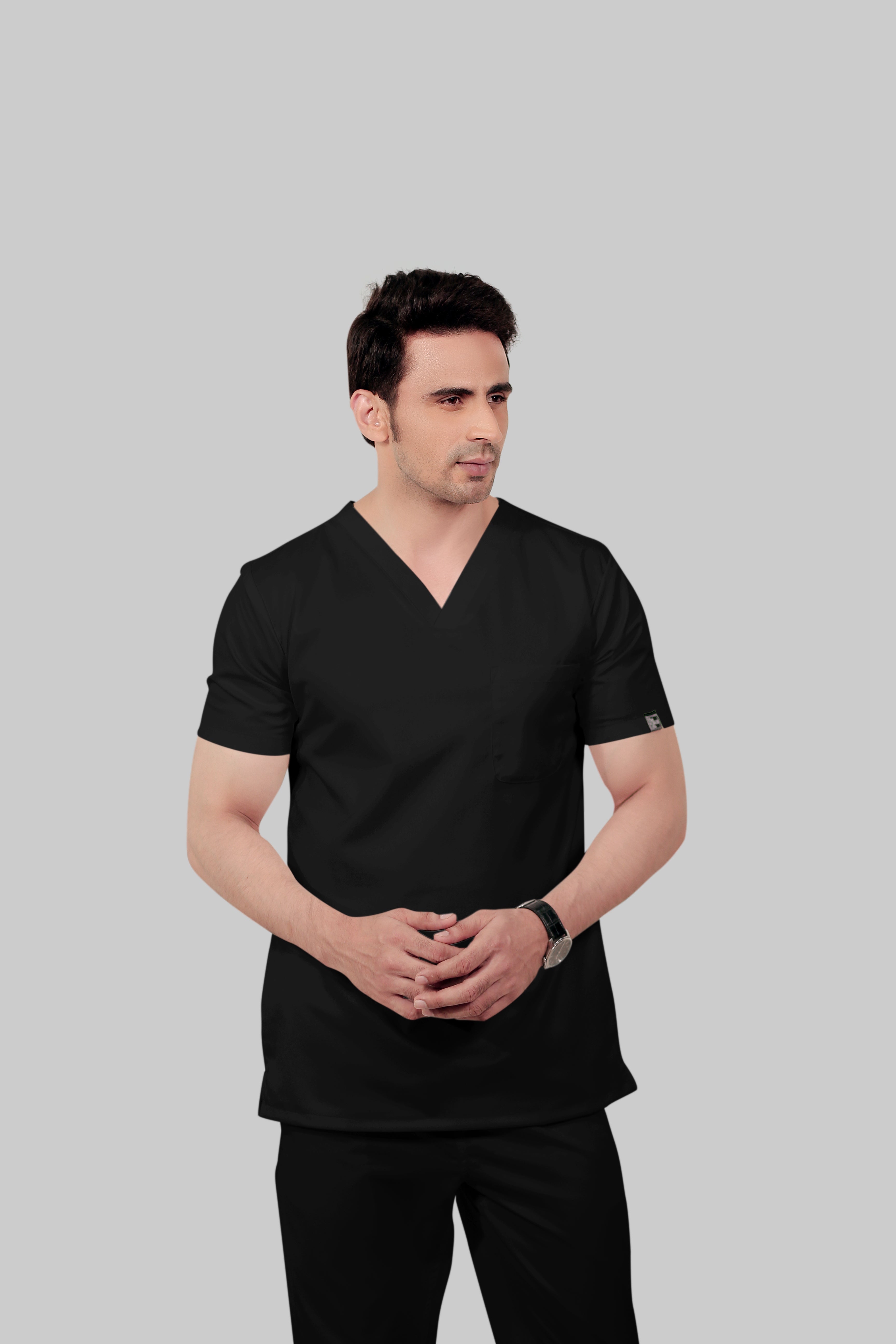 Stretchable (2Way) Male Black V-Neck With Jogger Scrub Set