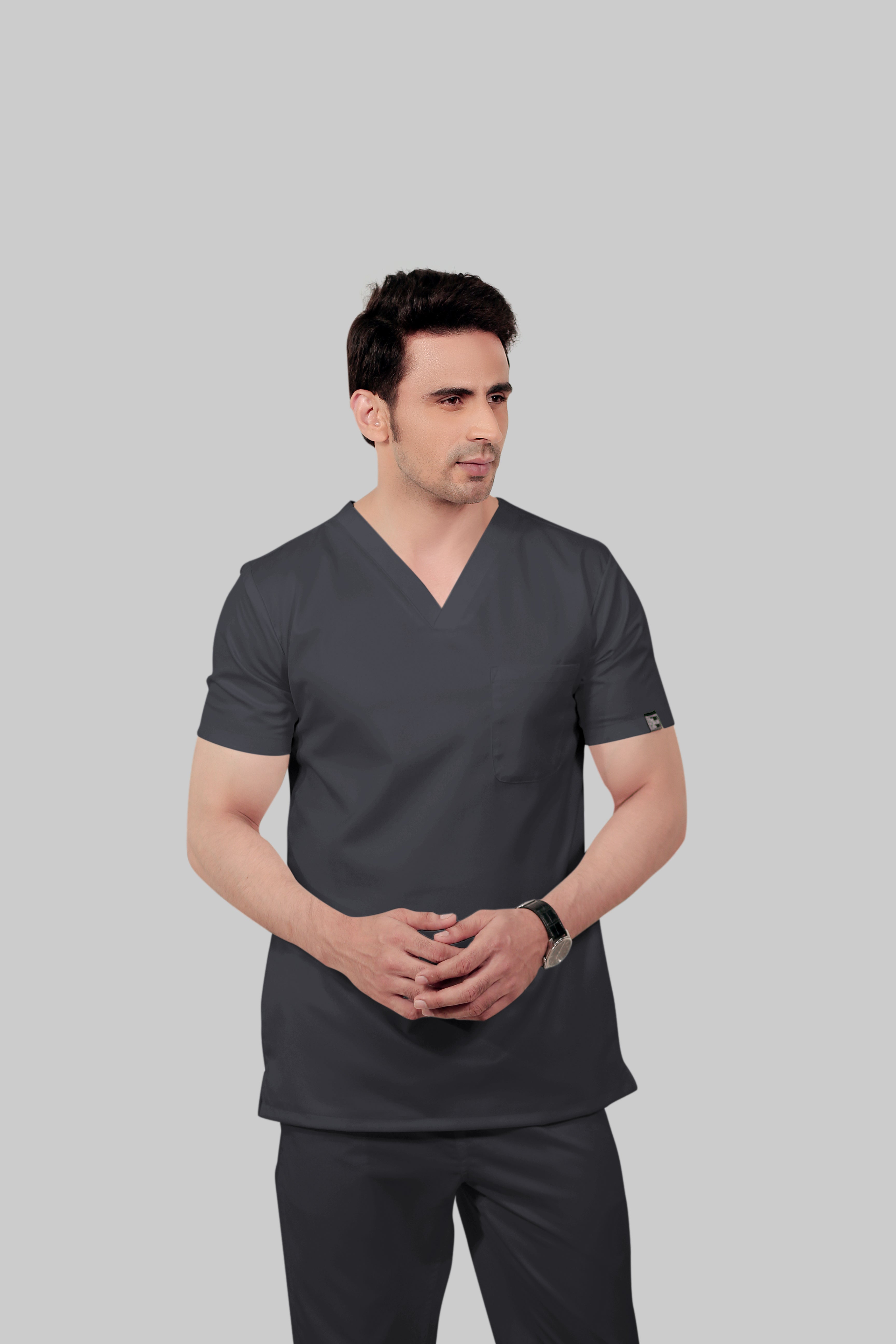 Stretchable (2Way) Male Dark Gray V-Neck With Jogger Scrub Set