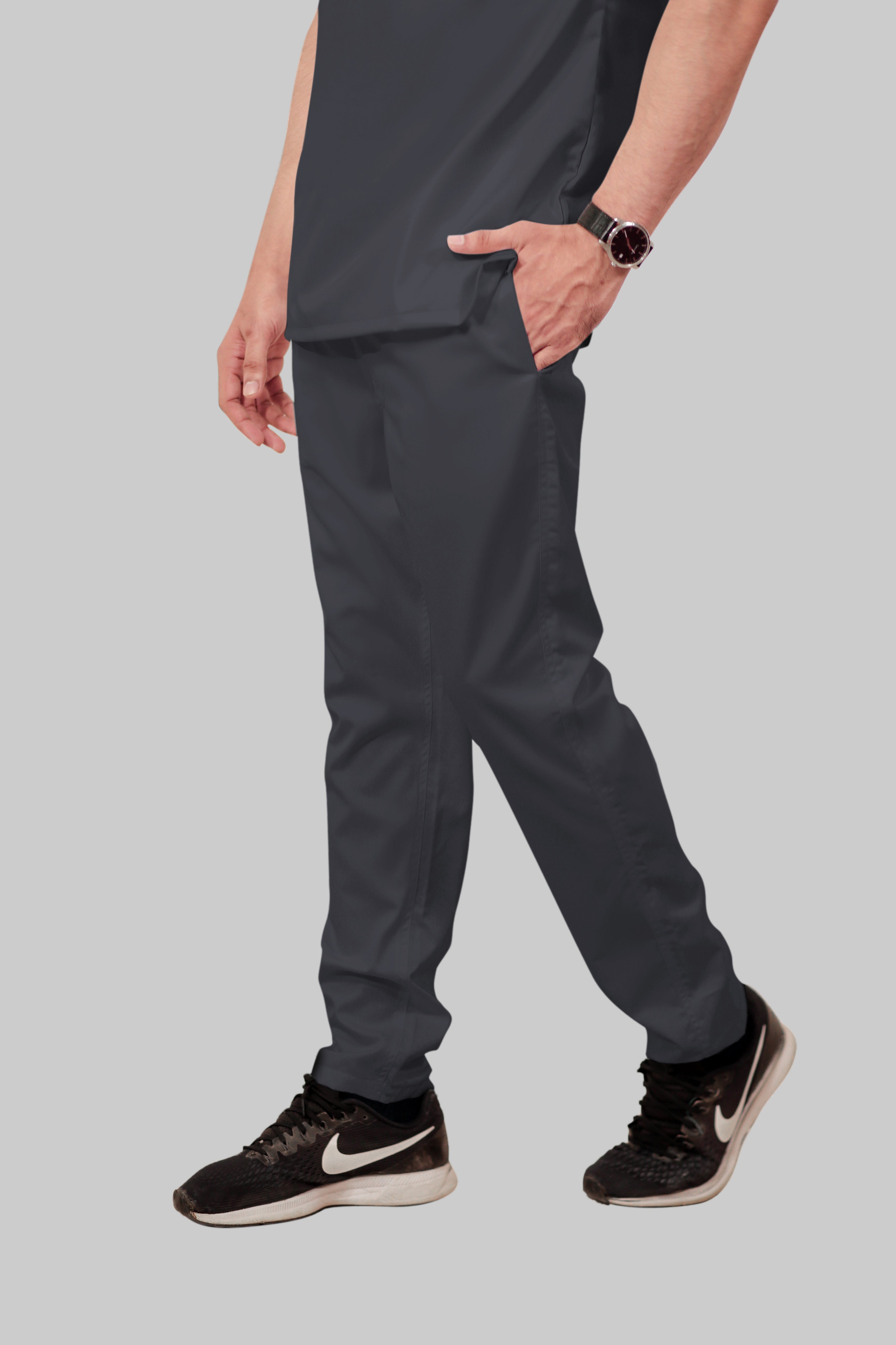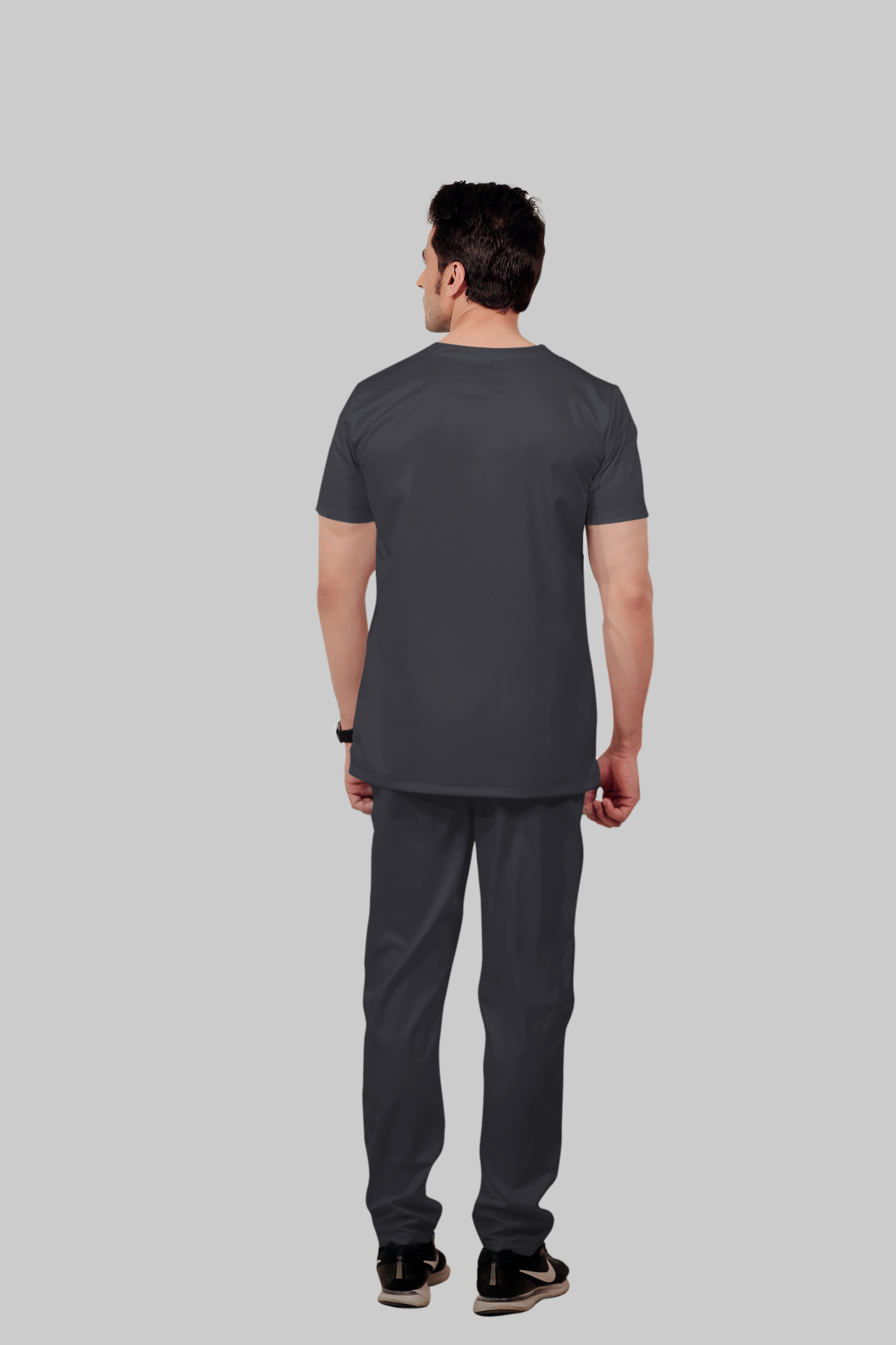 Stretchable (2Way) Male Dark Gray V-Neck With Straight Pant Scrub Set