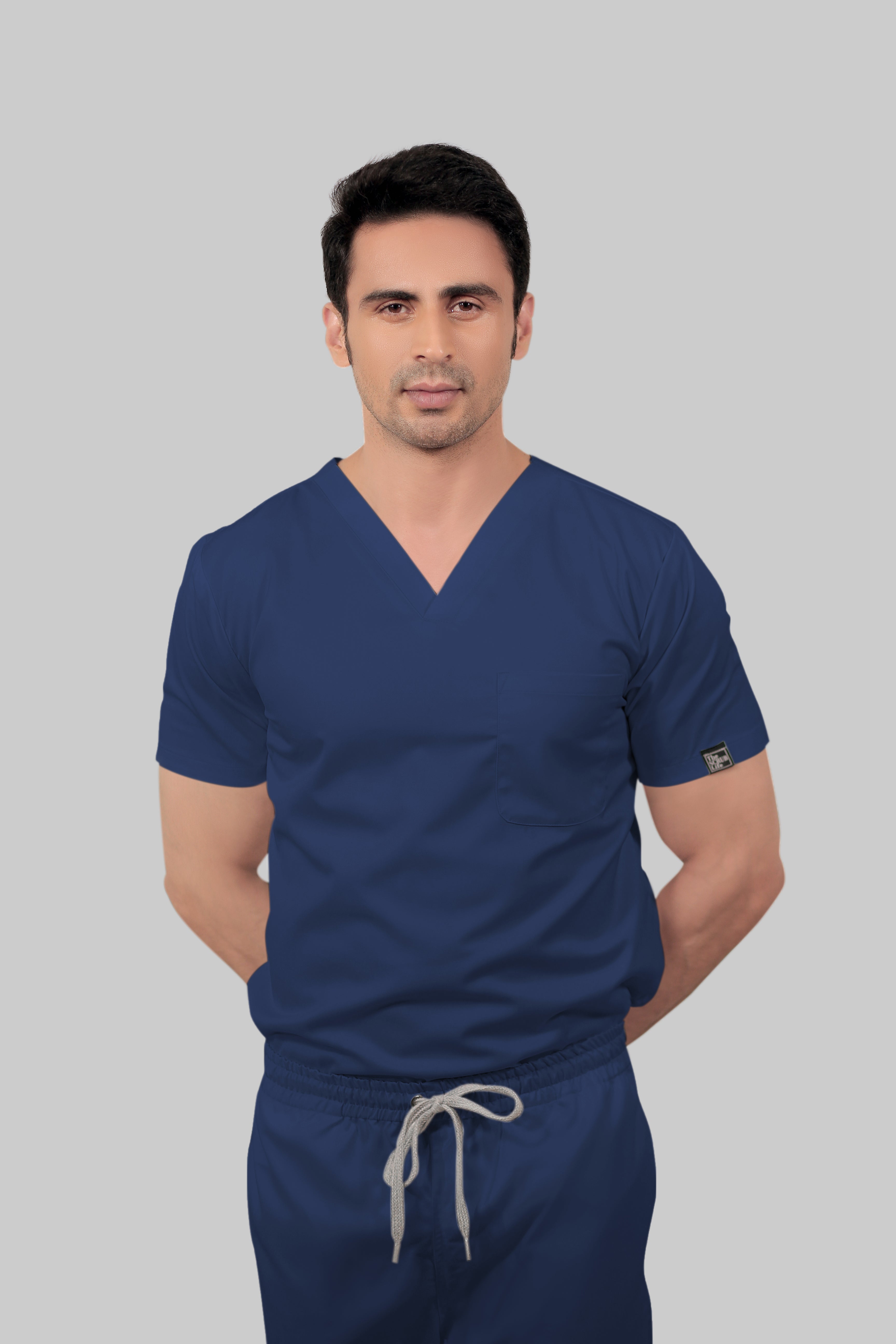 Stretchable (2Way) Male Navy Blue V-Neck With Jogger Scrub Set