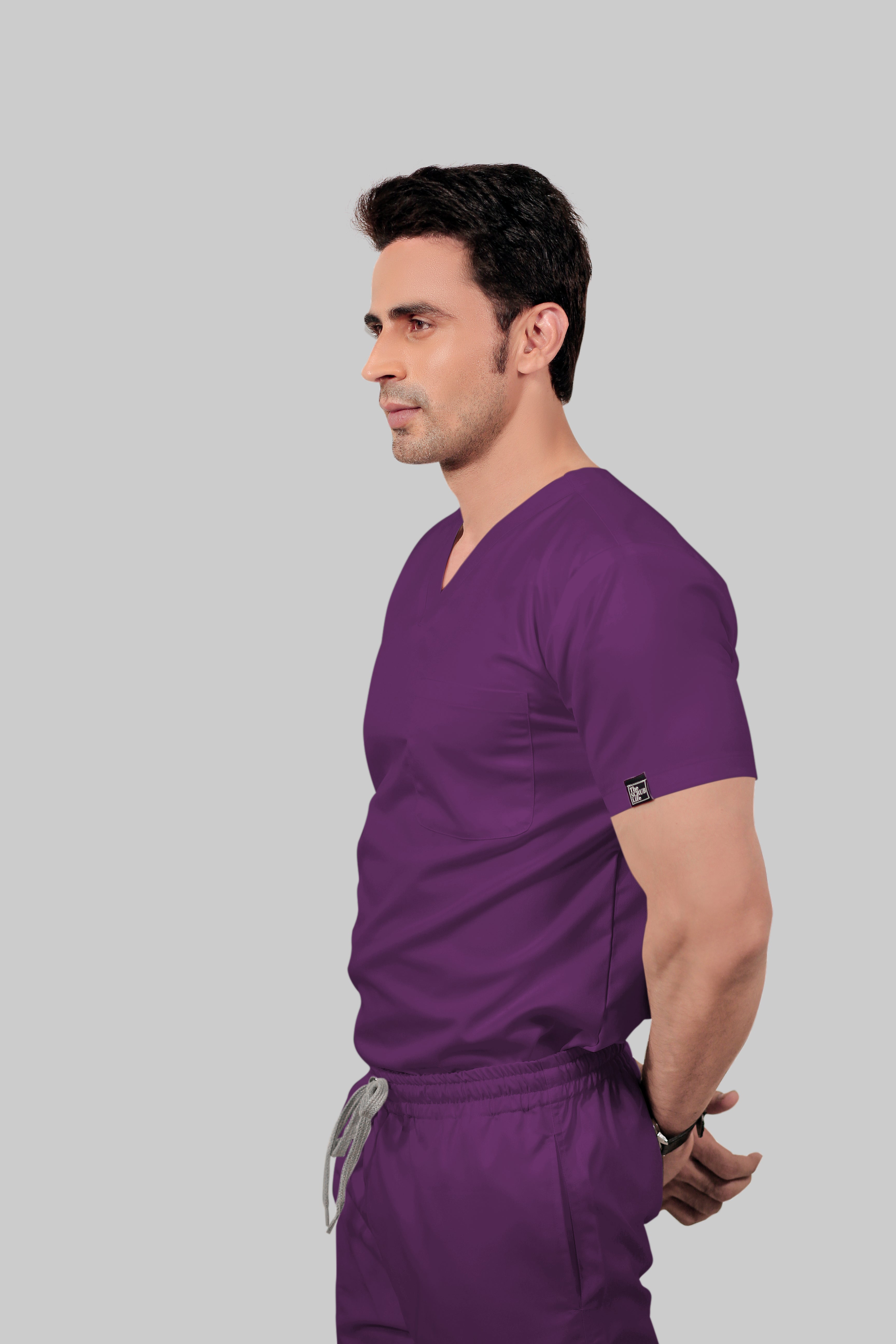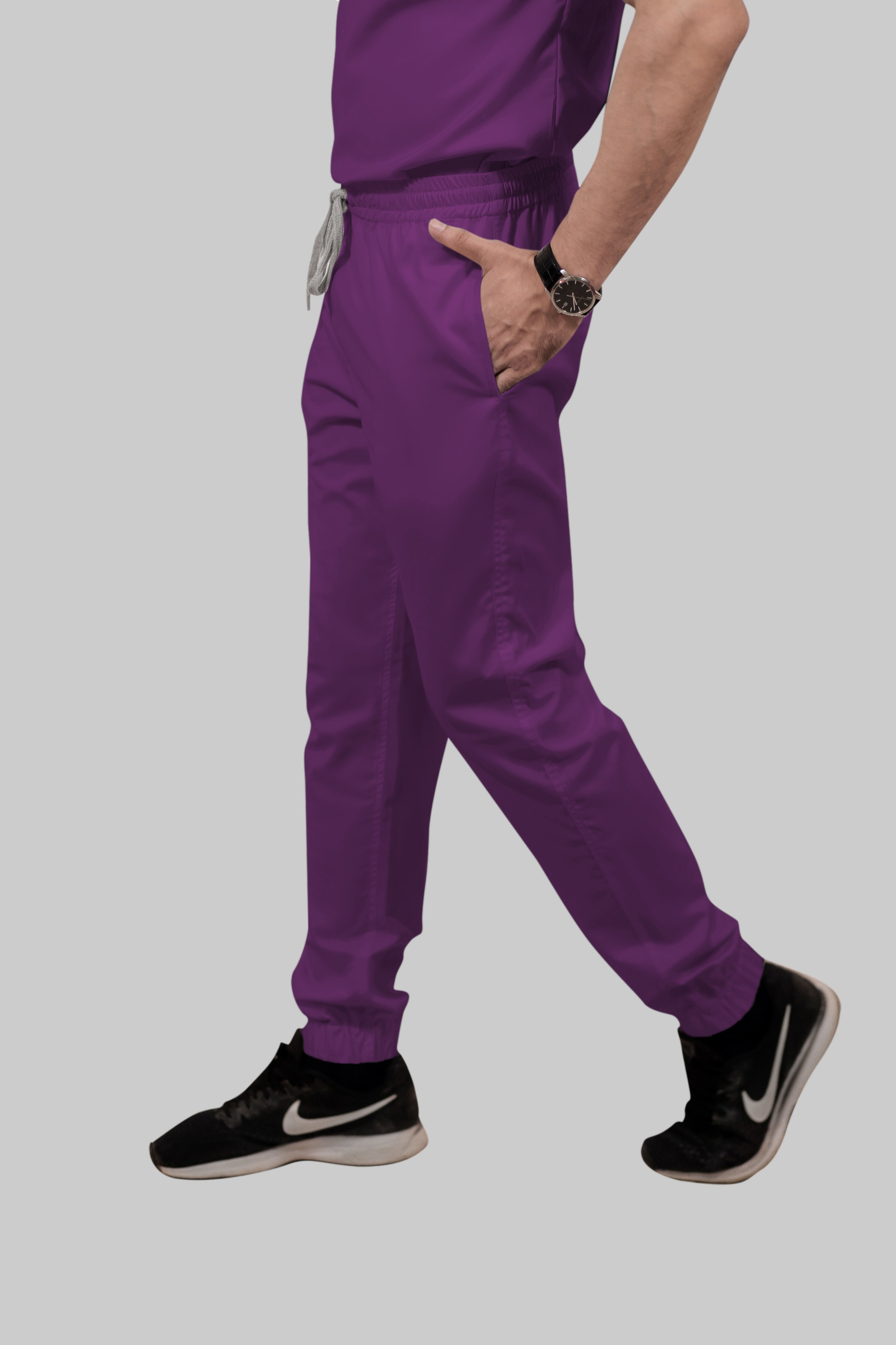 Stretchable (2Way) Male Purple V-Neck With Jogger Scrub Set