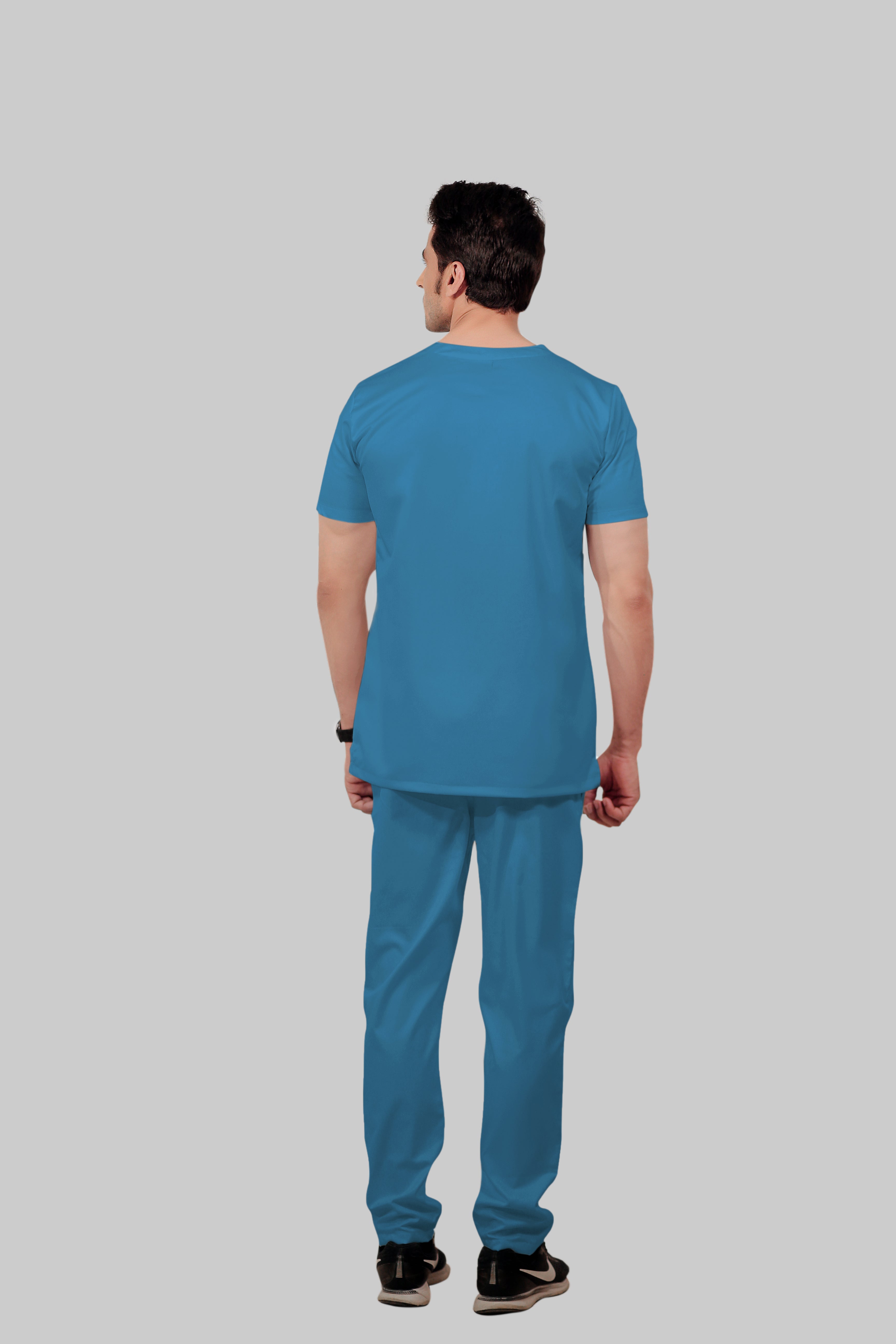 Stretchable (2Way) Male Peacock Blue V-Neck With Straight Pant Scrub Set