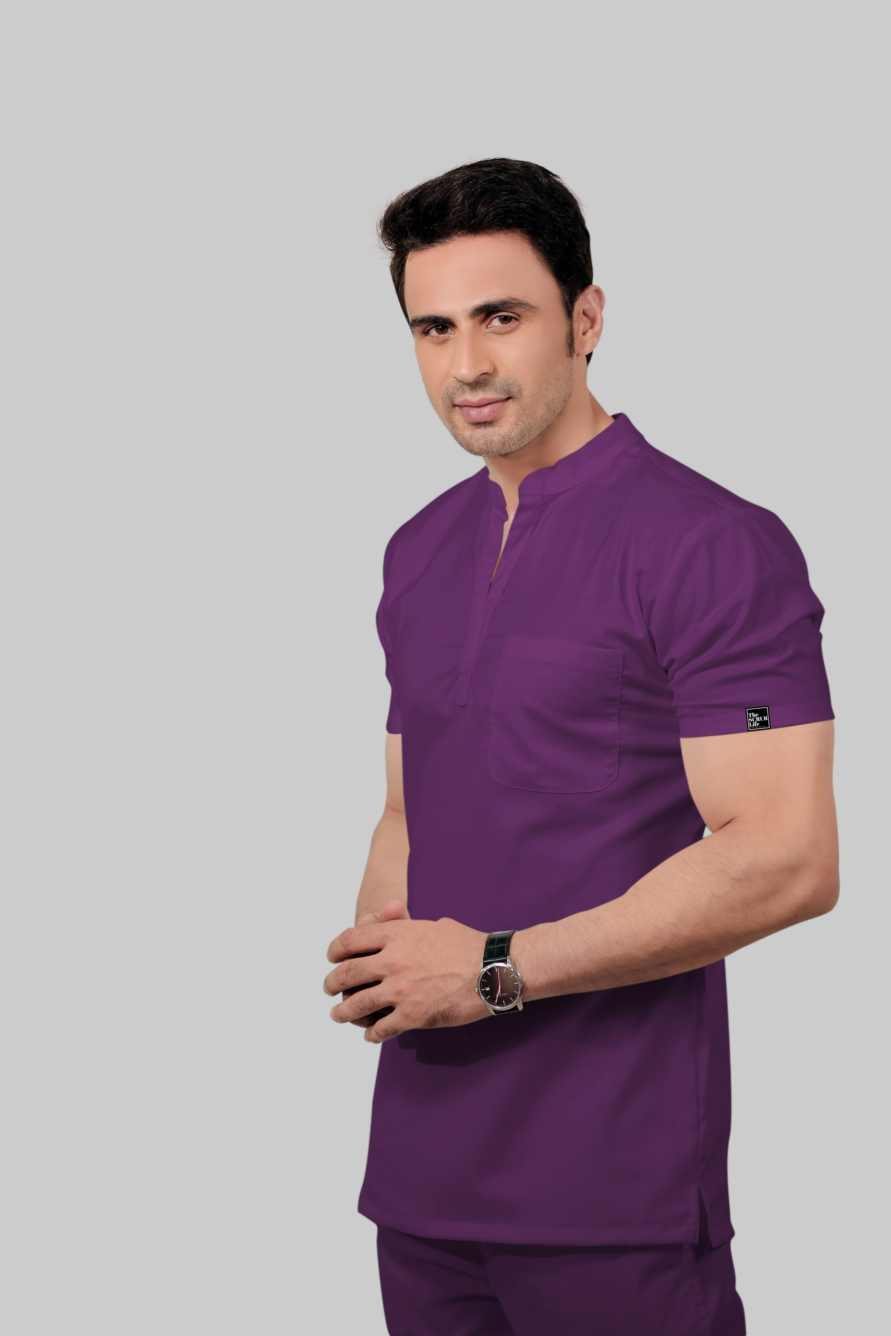 Stretchable (2Way) Male Purple Mandarin Neck Scrub Top