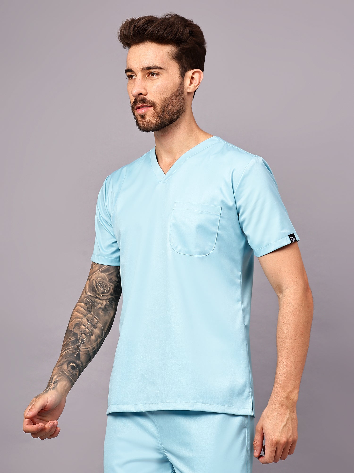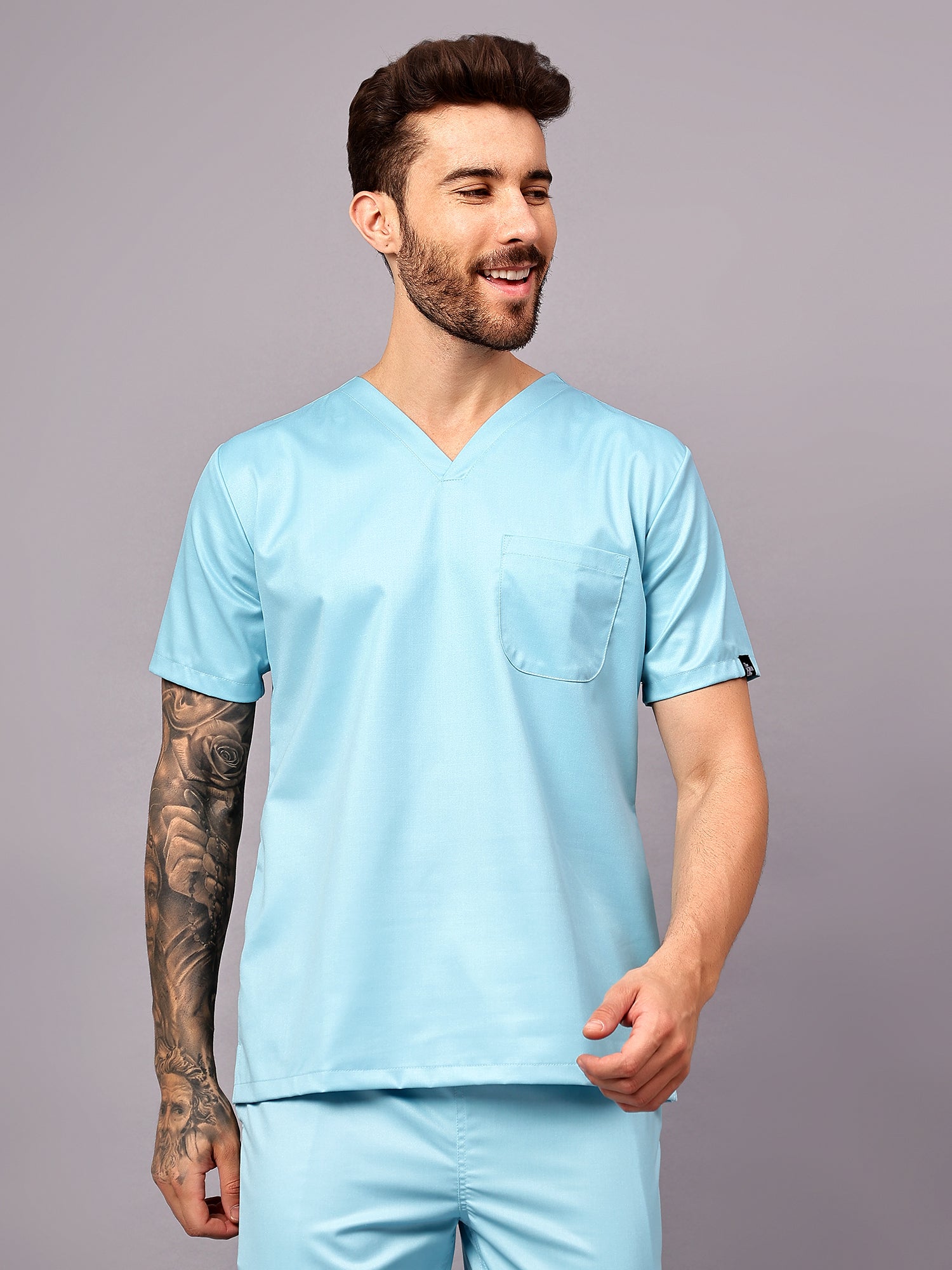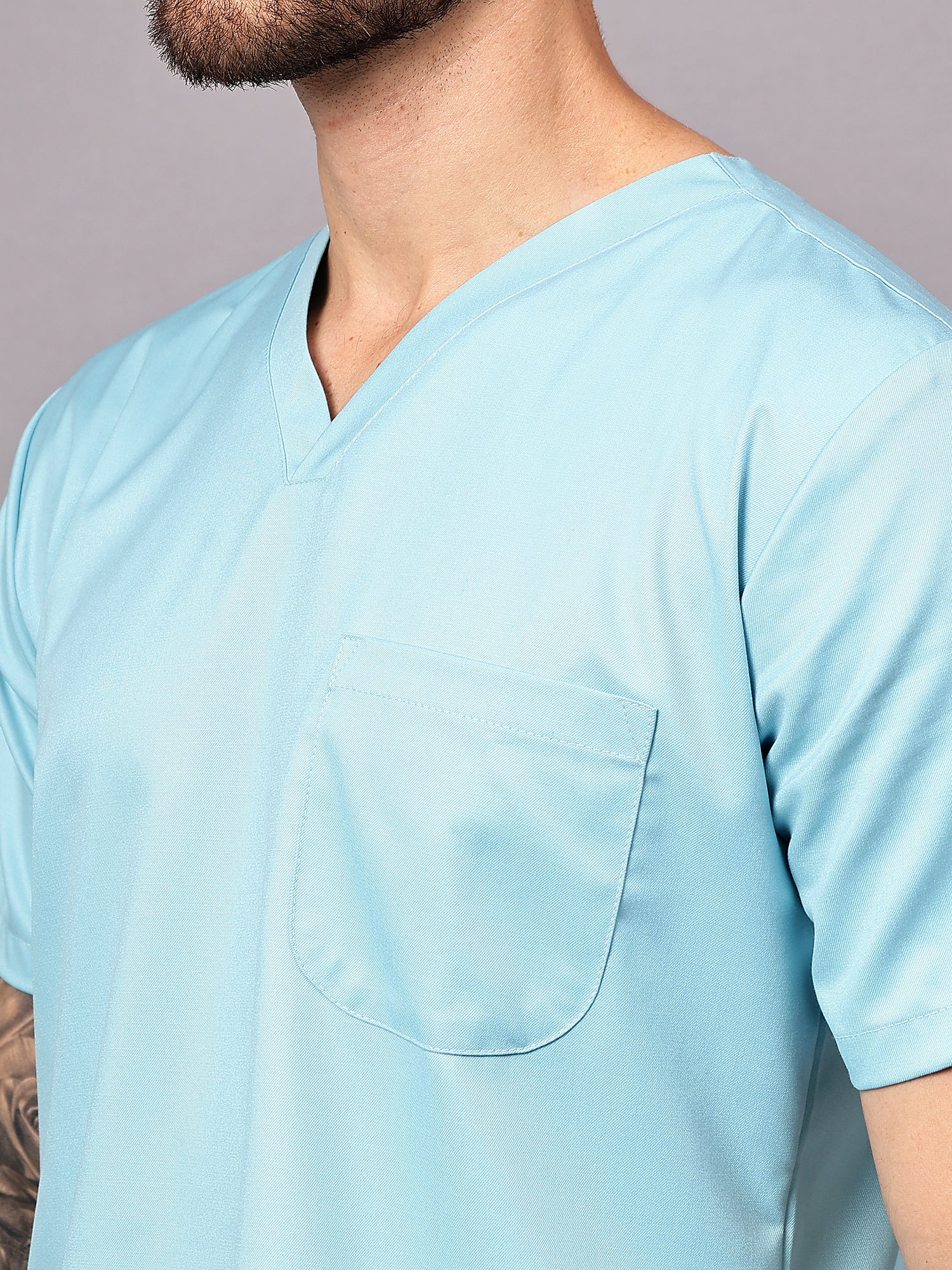 Stretchable (2Way) Male Aqua Blue V-Neck Scrub Top
