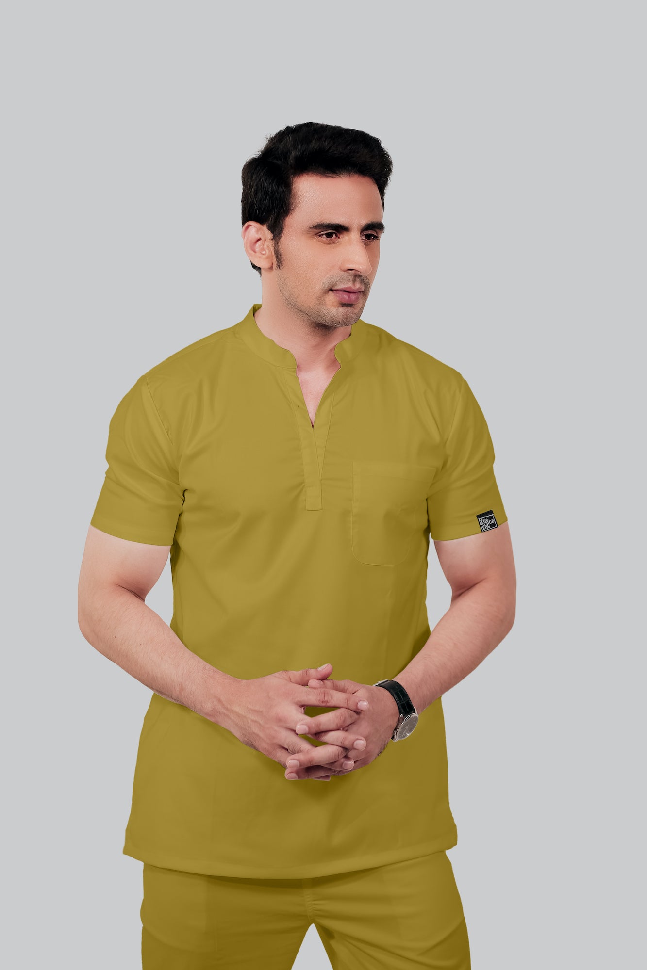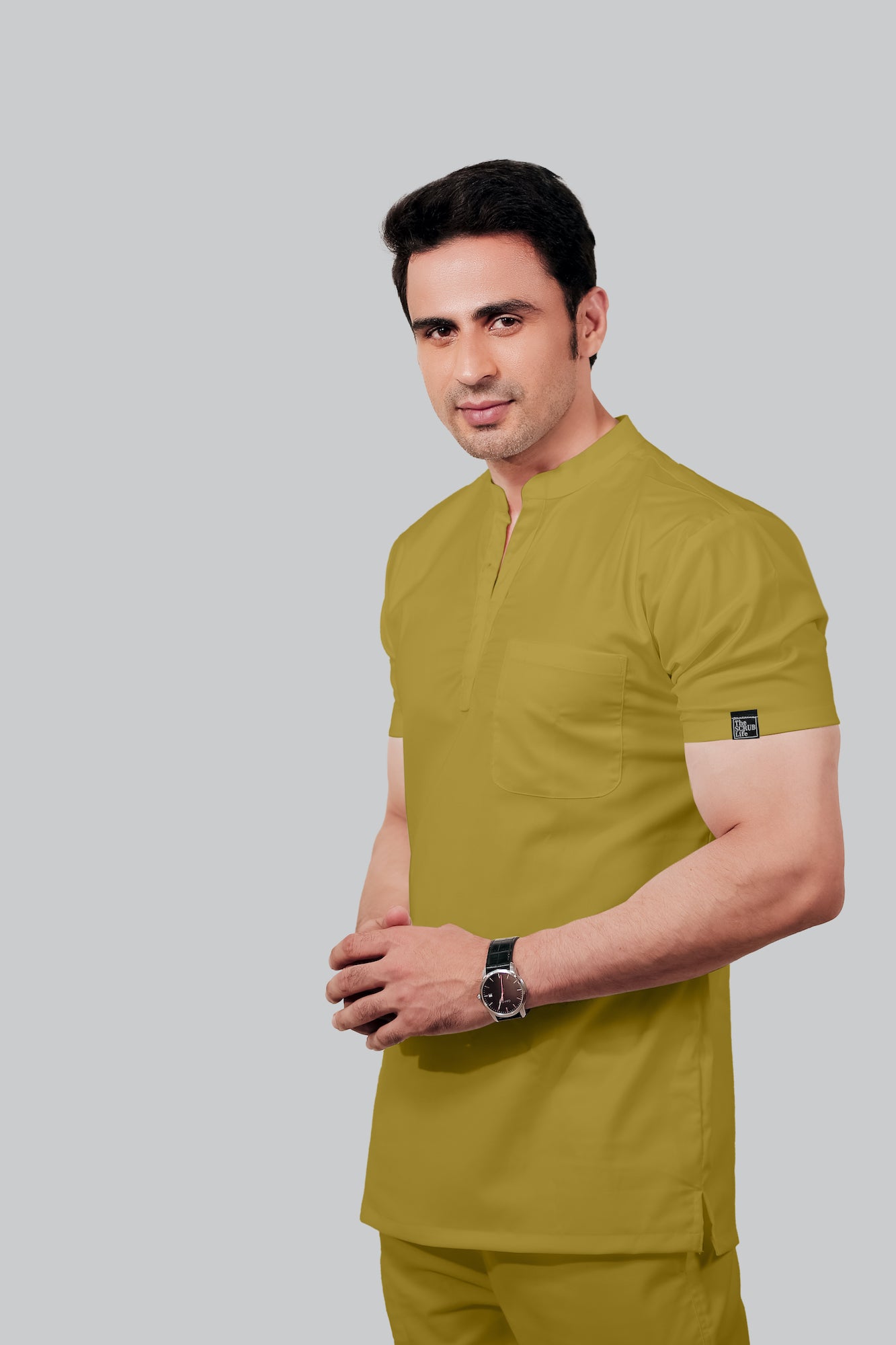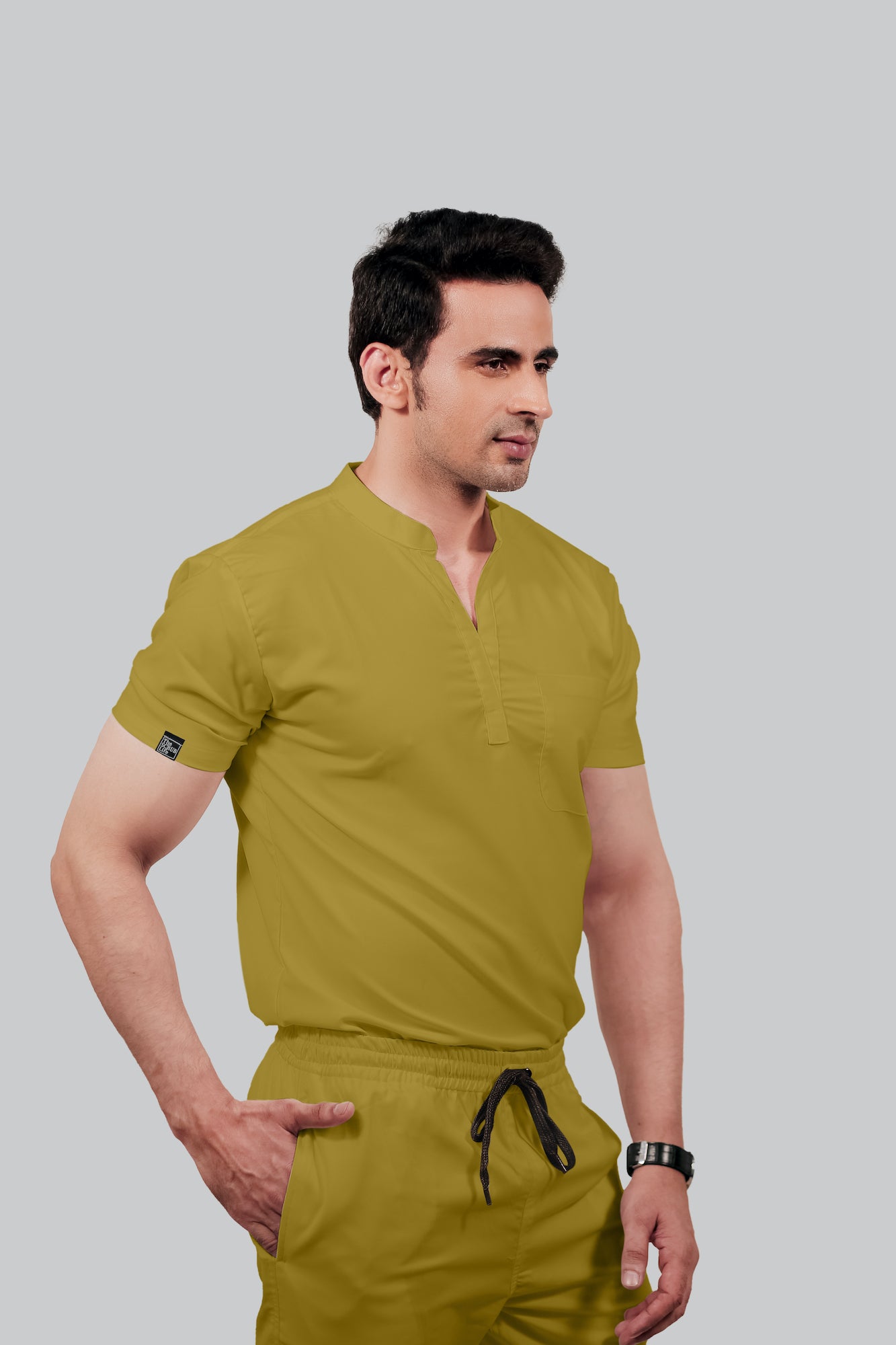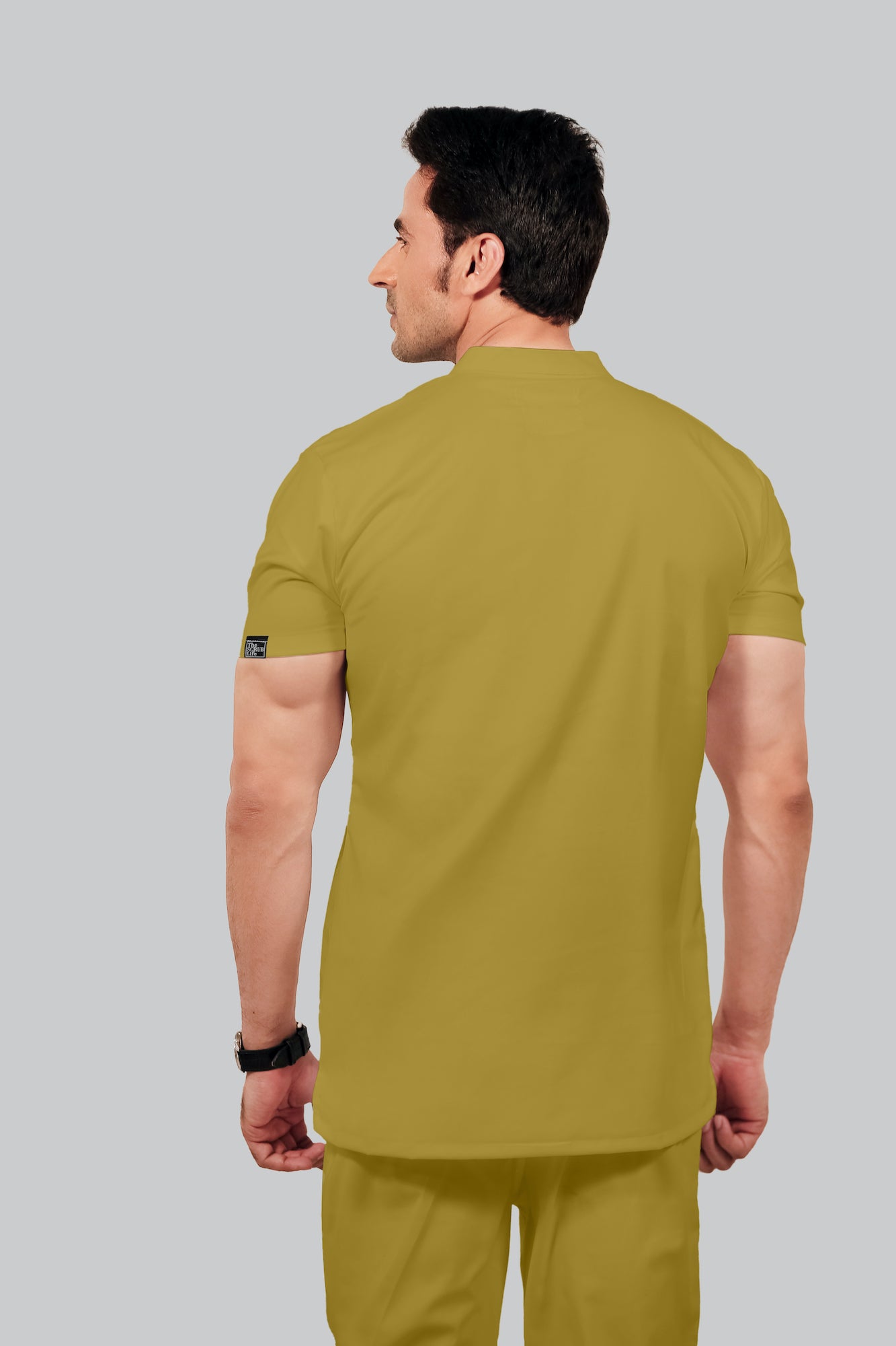 Stretchable (2Way) Male Mustard Mandarin Neck Scrub Top