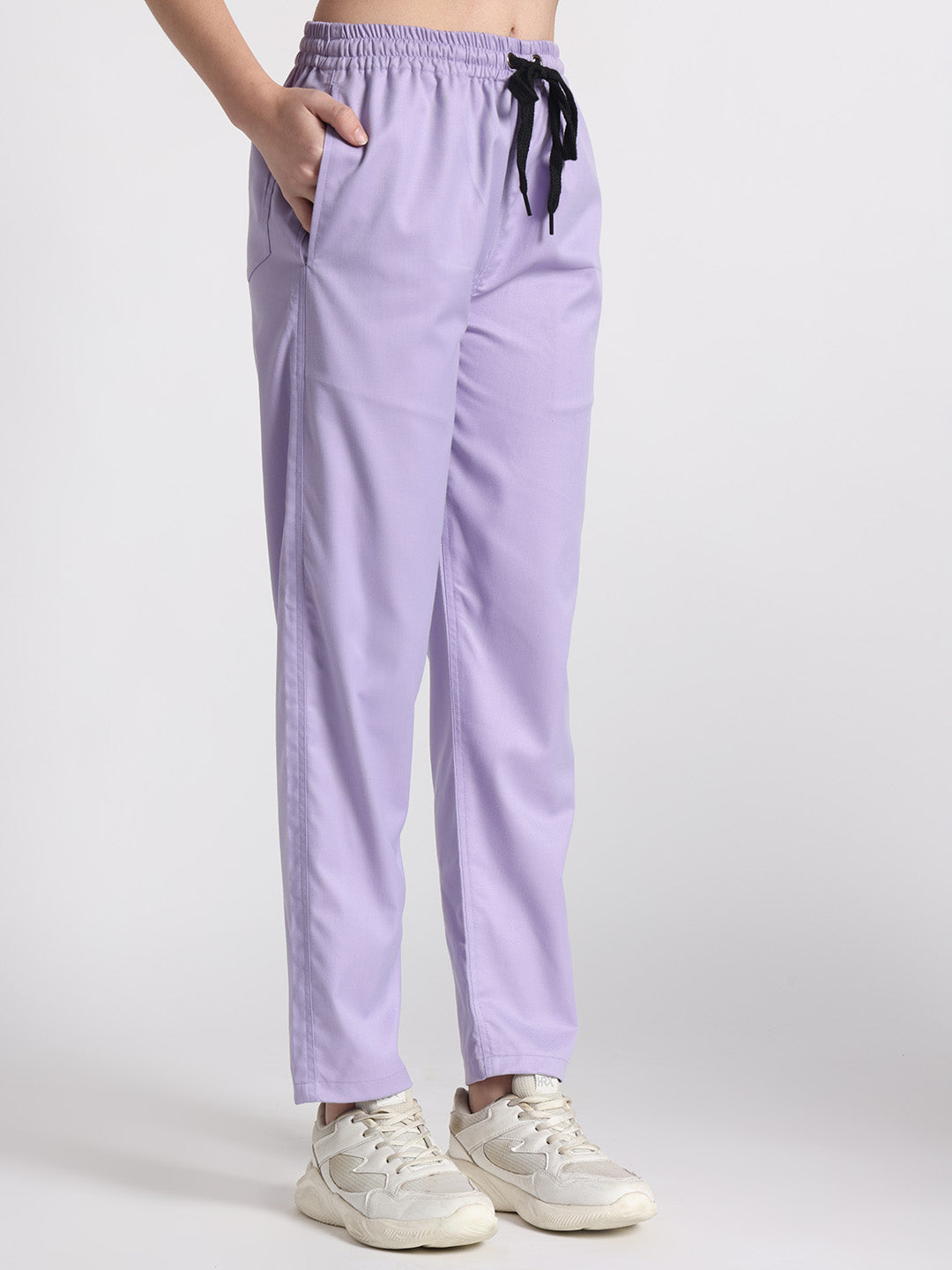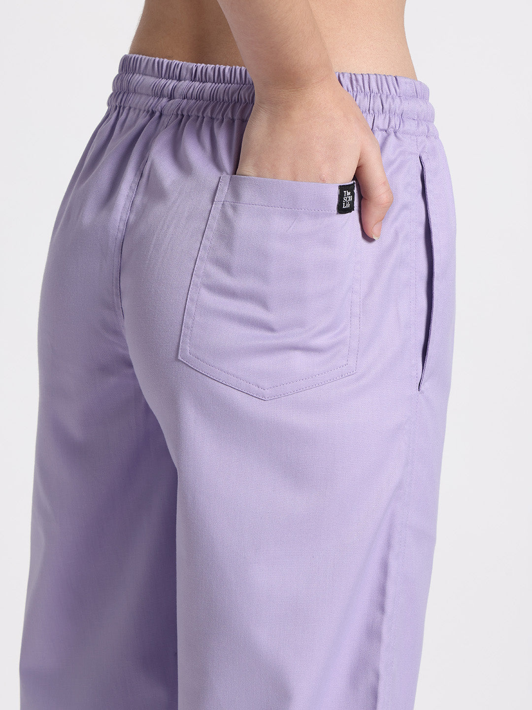 Stretchable (2Way) Female Lavender V-Neck With Straight Pant Scrub Set