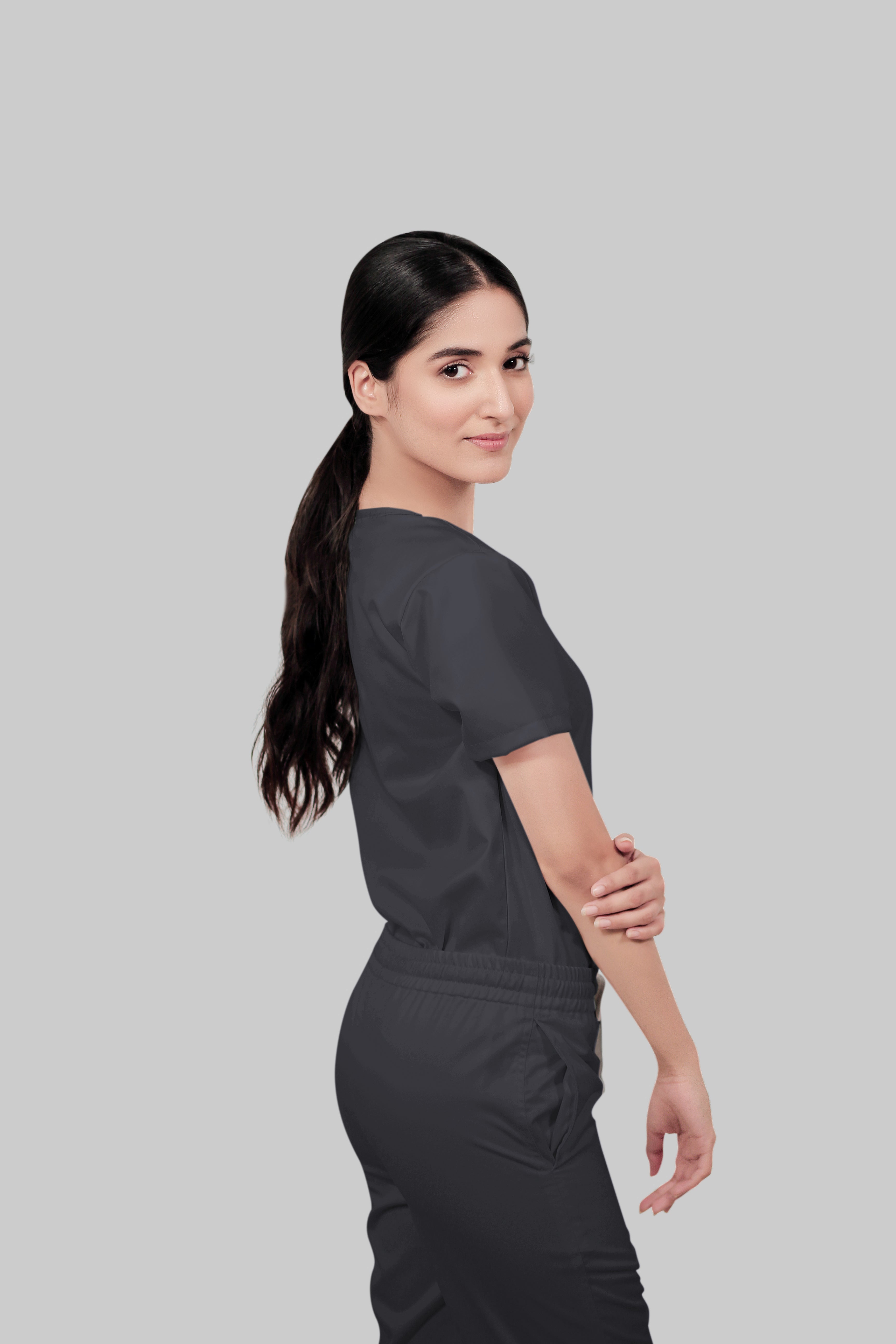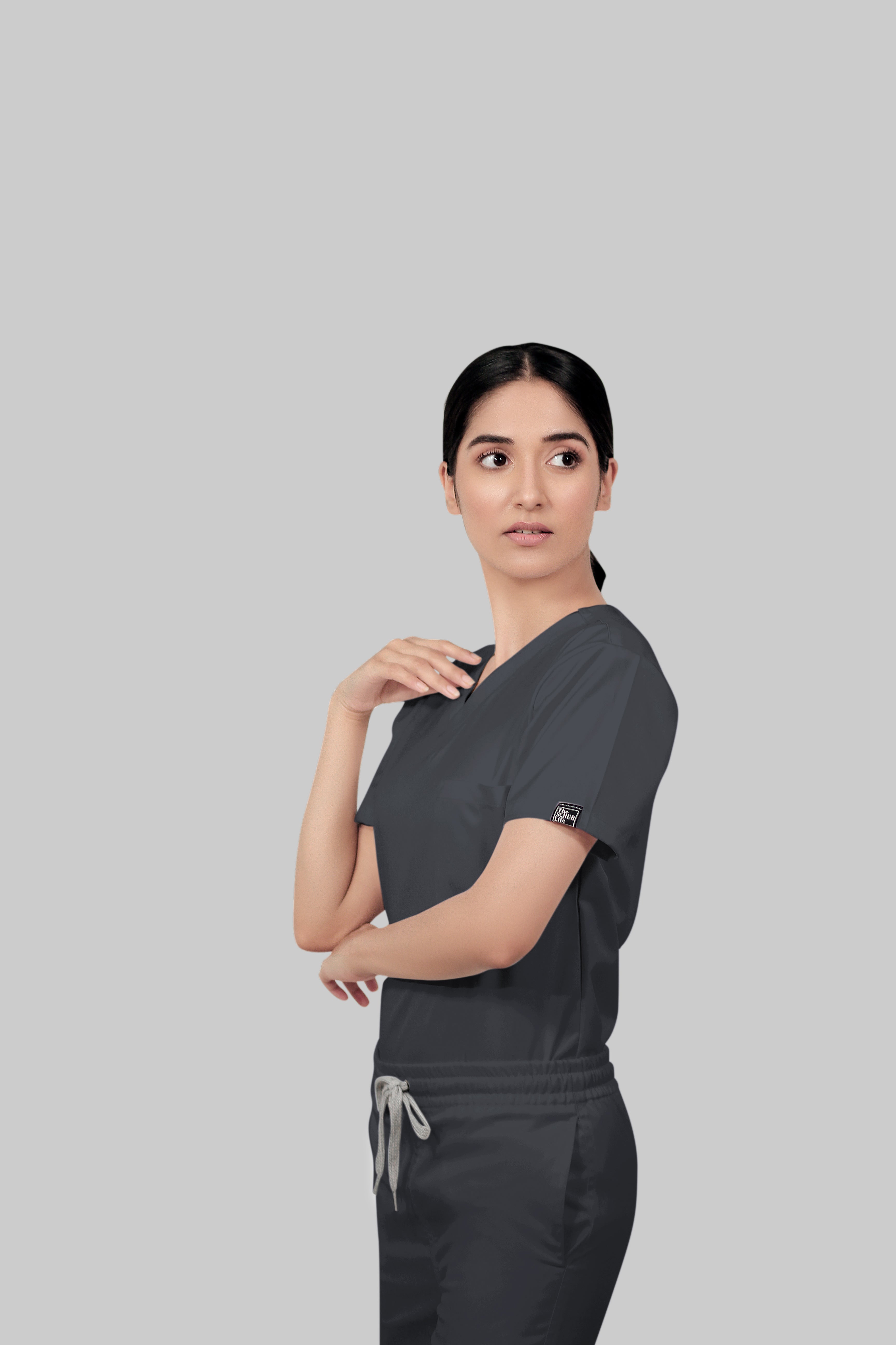 Stretchable (2Way) Female Dark Gray V-Neck Scrub Top