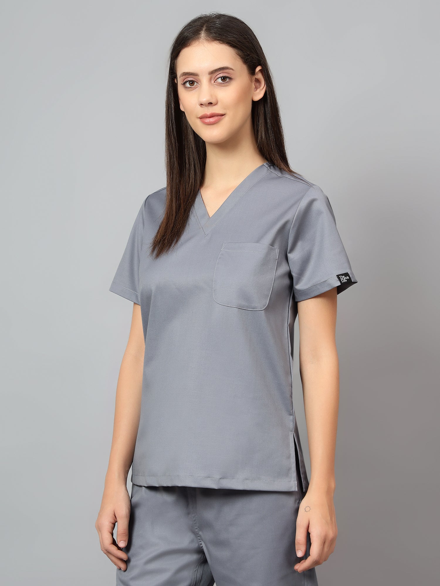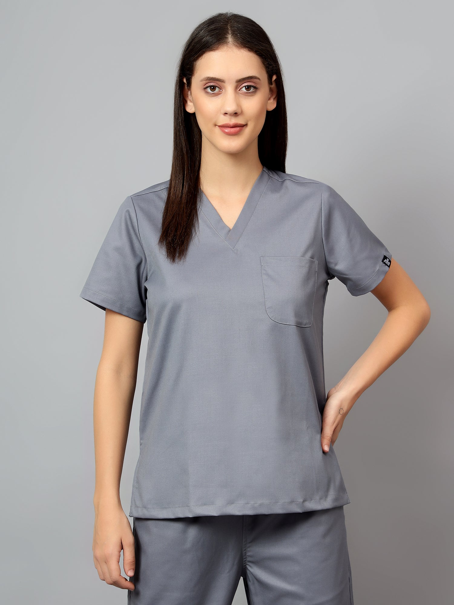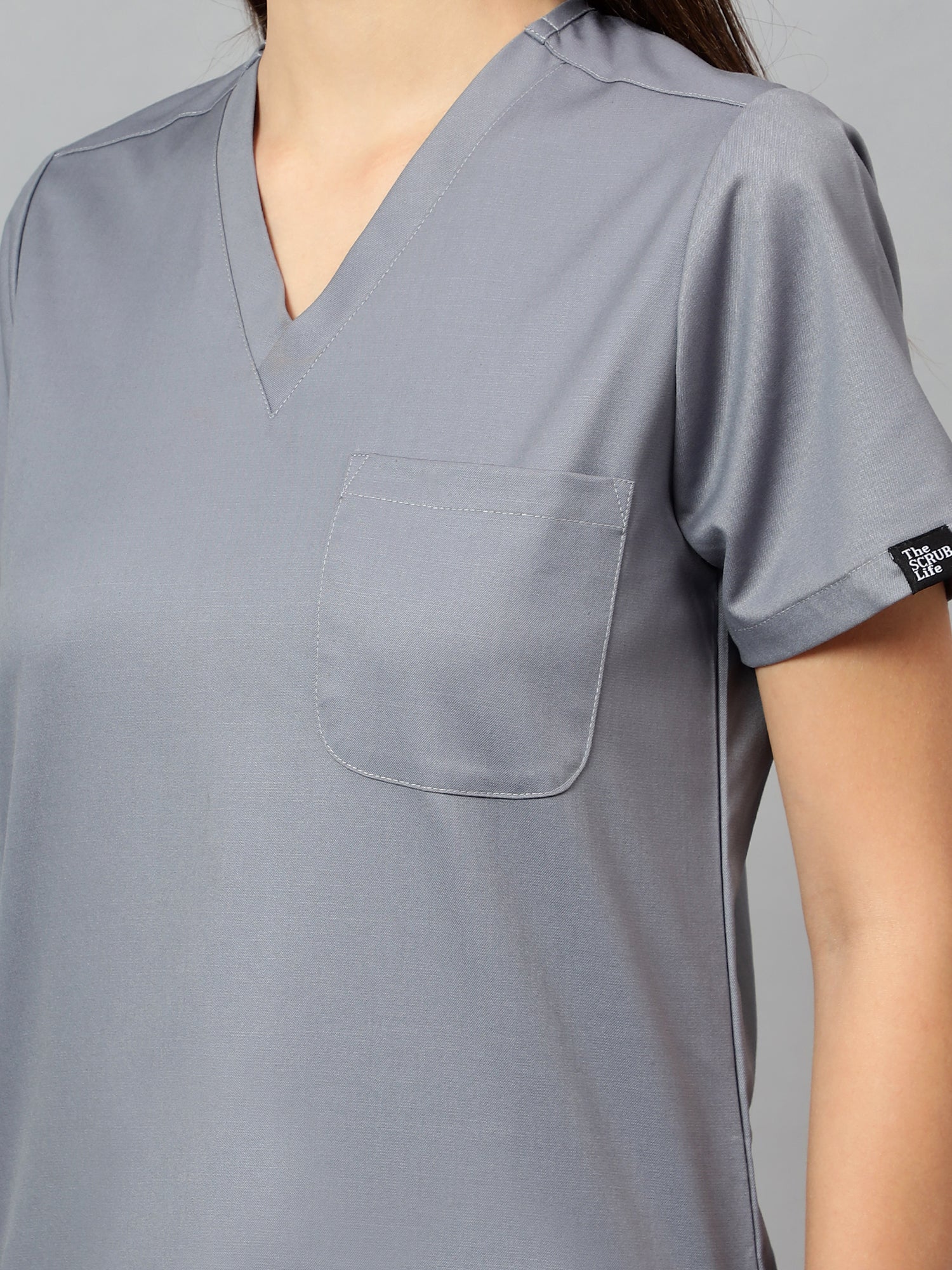 Stretchable (2Way) Female Graphite V-Neck Scrub Top