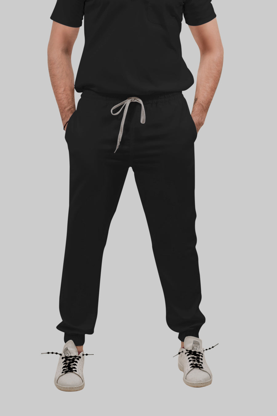 Stretchable (4Way) Female Black Mandarin Neck With Jogger Scrub Set