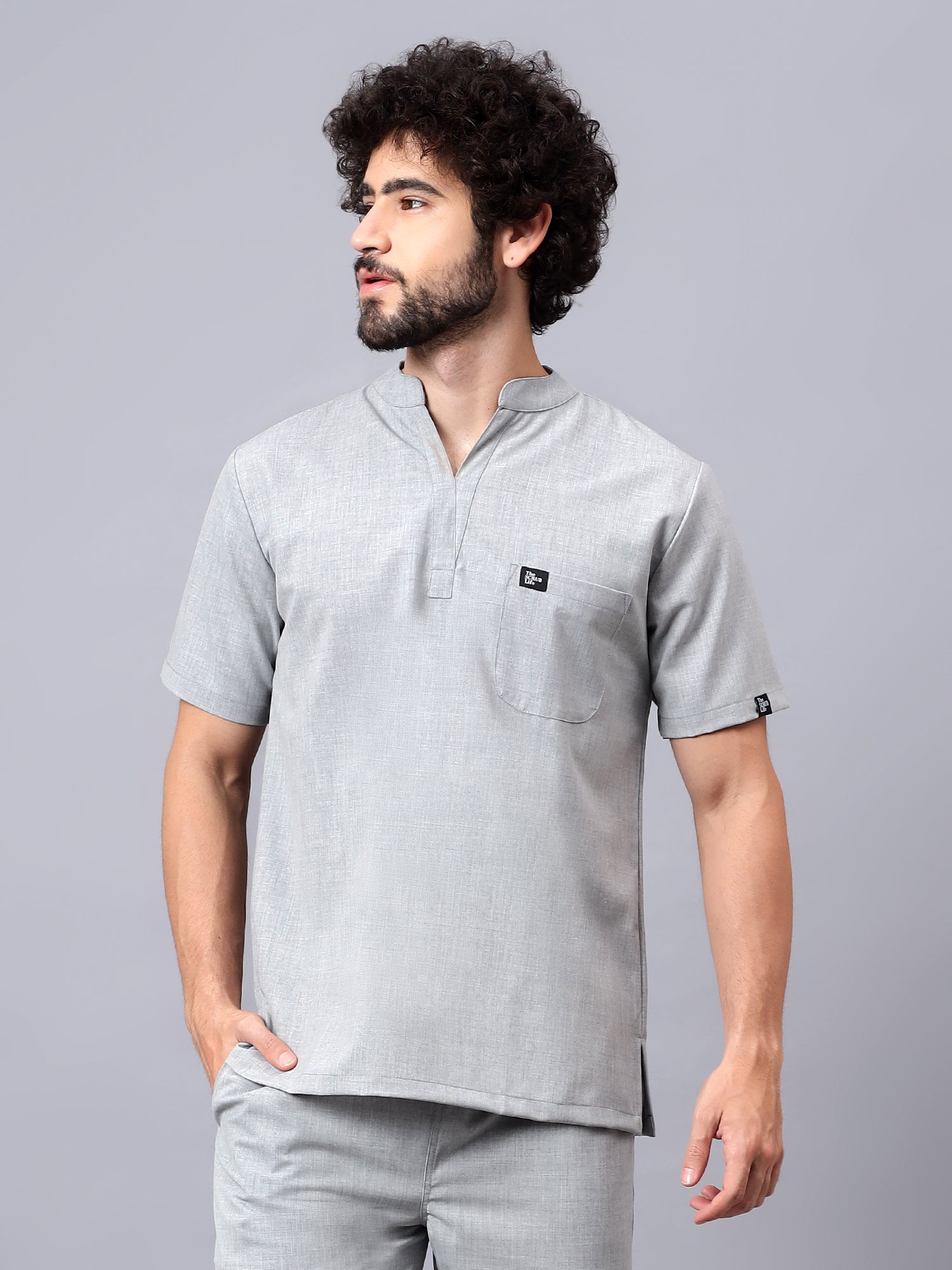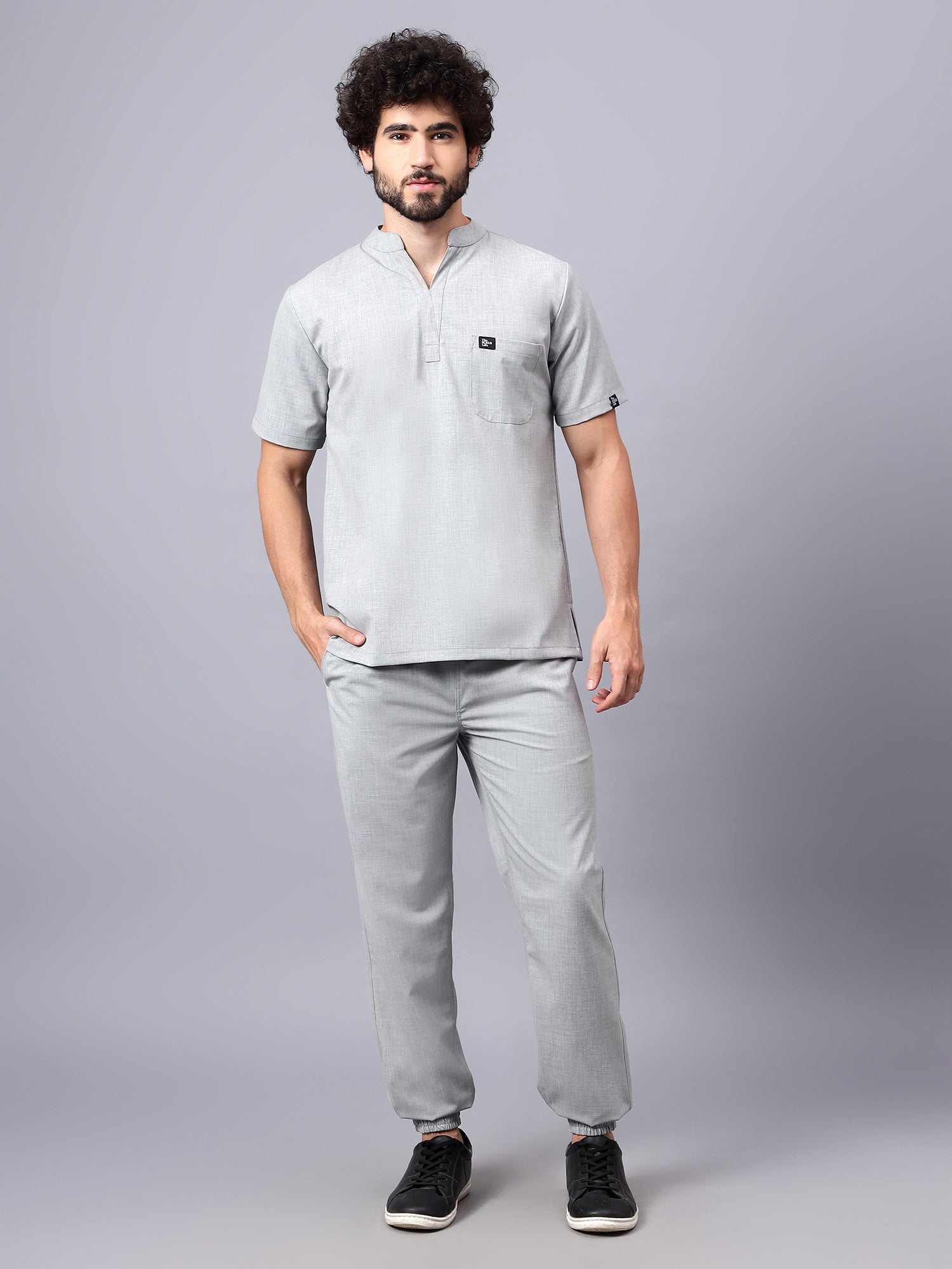 Stretchable (4Way) Male Light Grey Mandarin Neck with Jogger Scrub Set