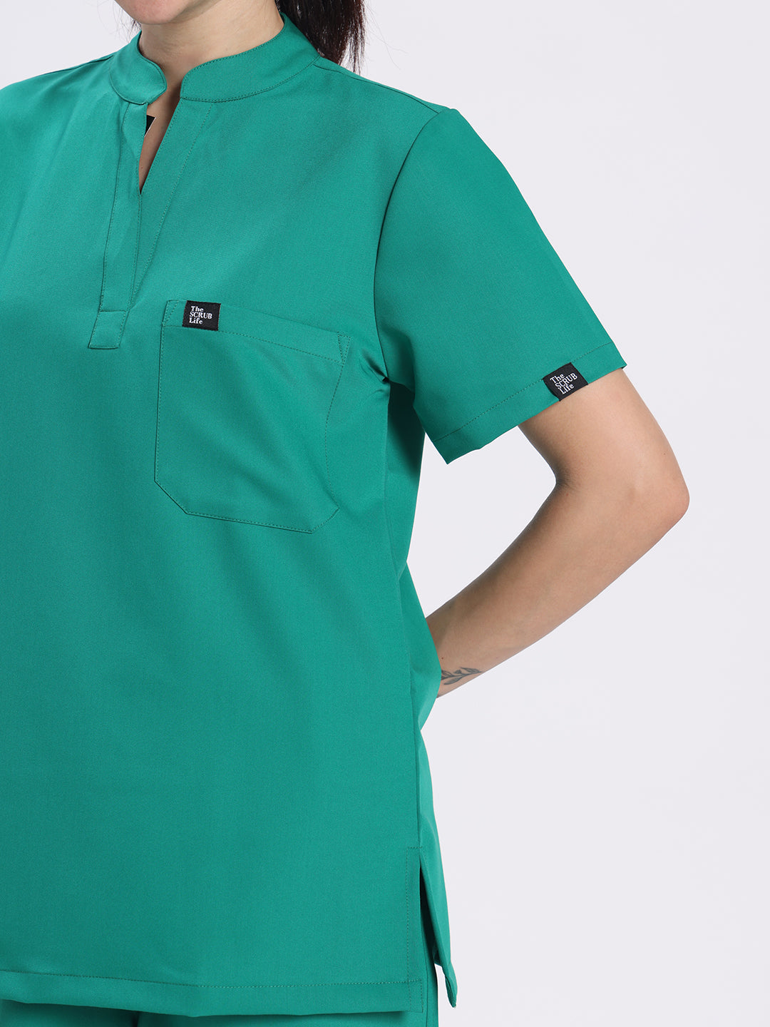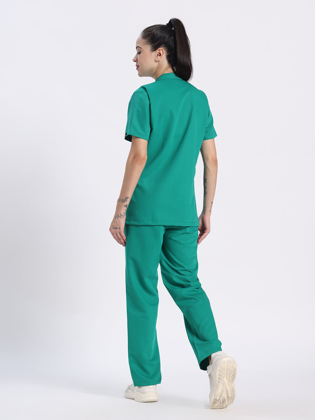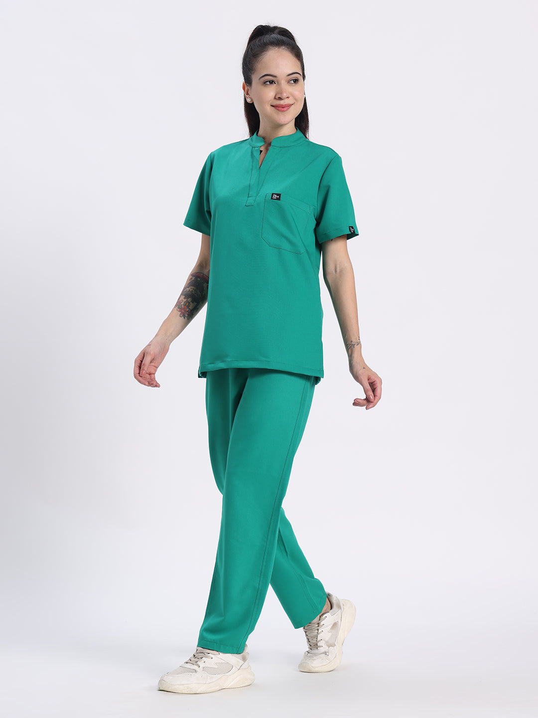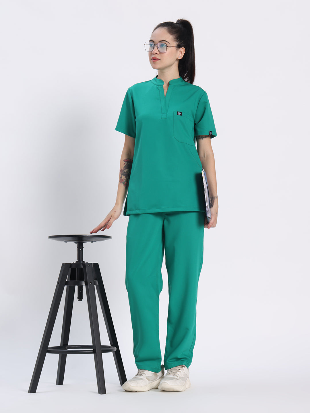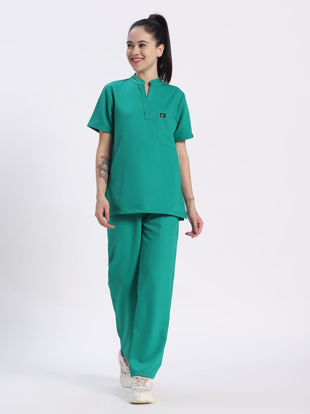 Stretchable (4Way) Female Sea Green Mandarin Neck With Straight Pant Set
