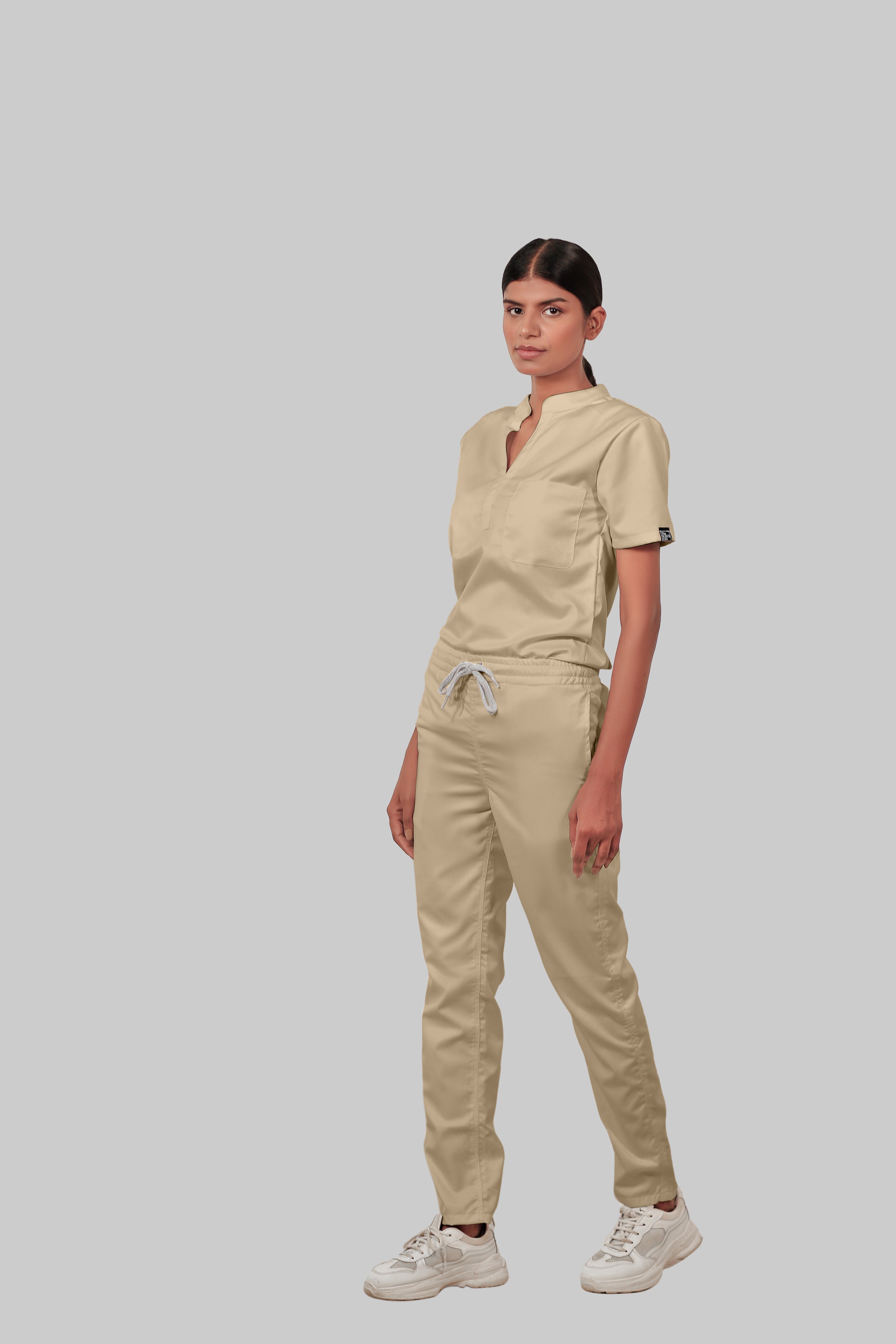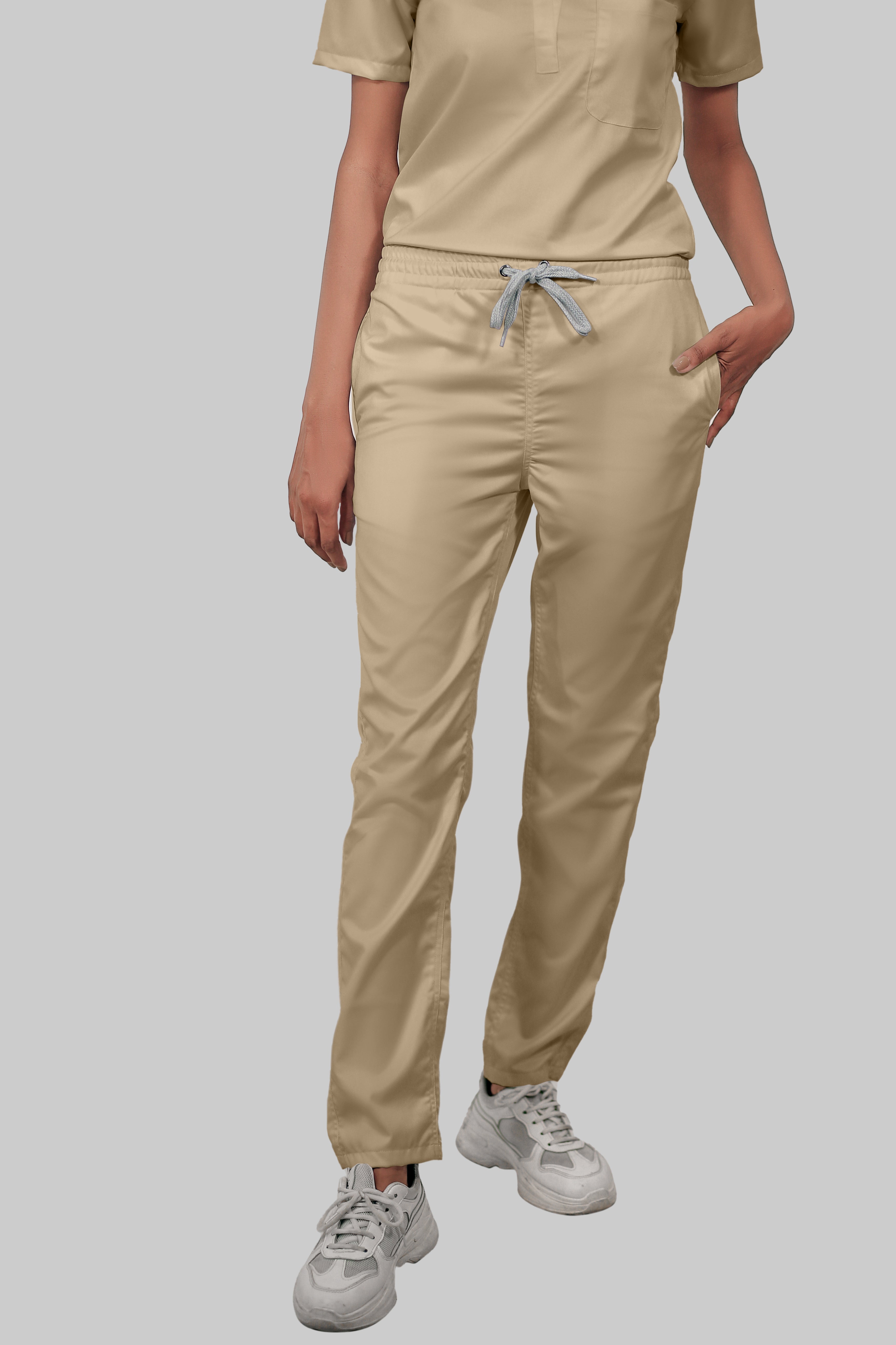 Stretchable (4Way) Female Beige Straight Scrub Pant
