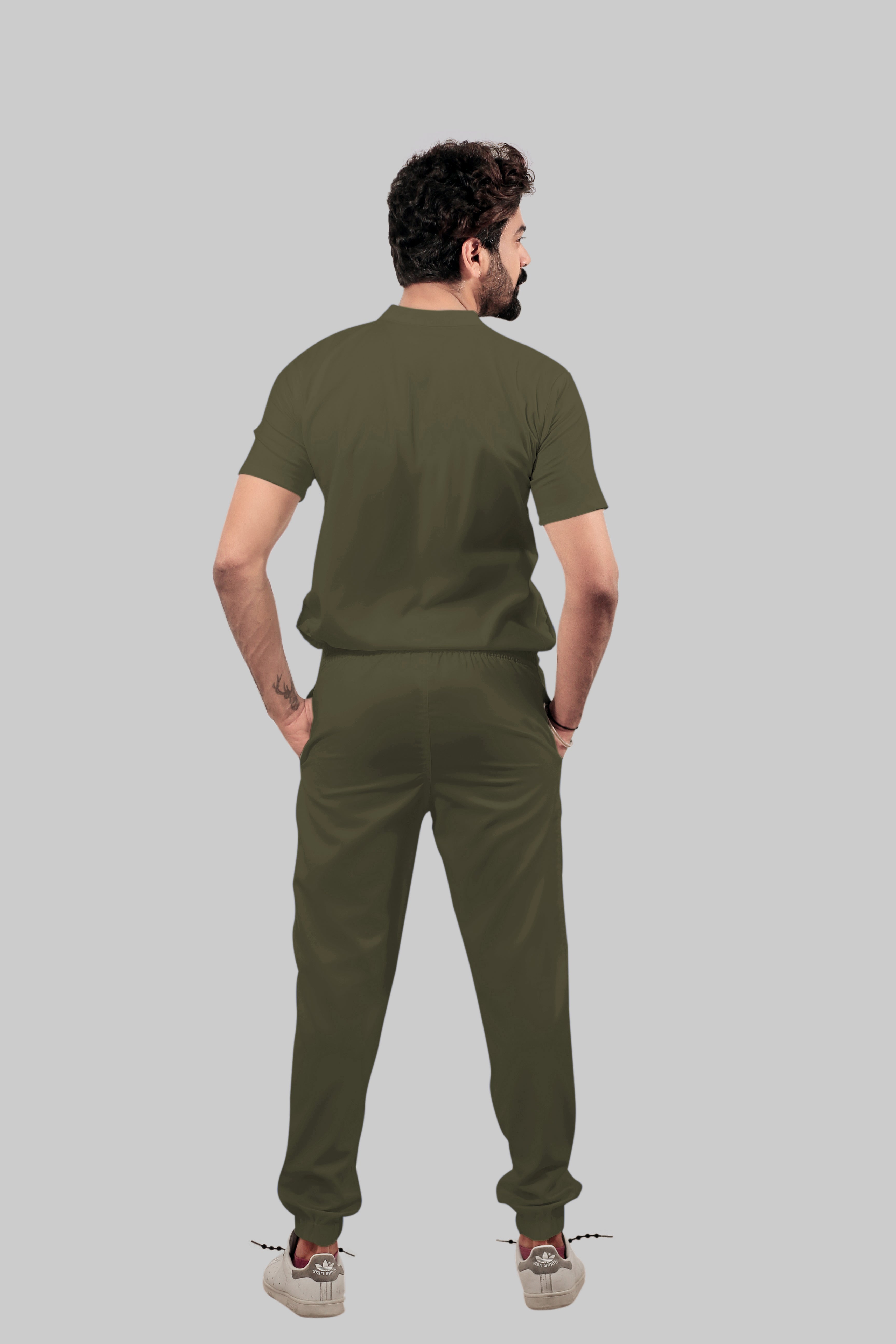 Stretchable (4Way) Male Olive Green Mandarin Neck with Jogger Scrub Set