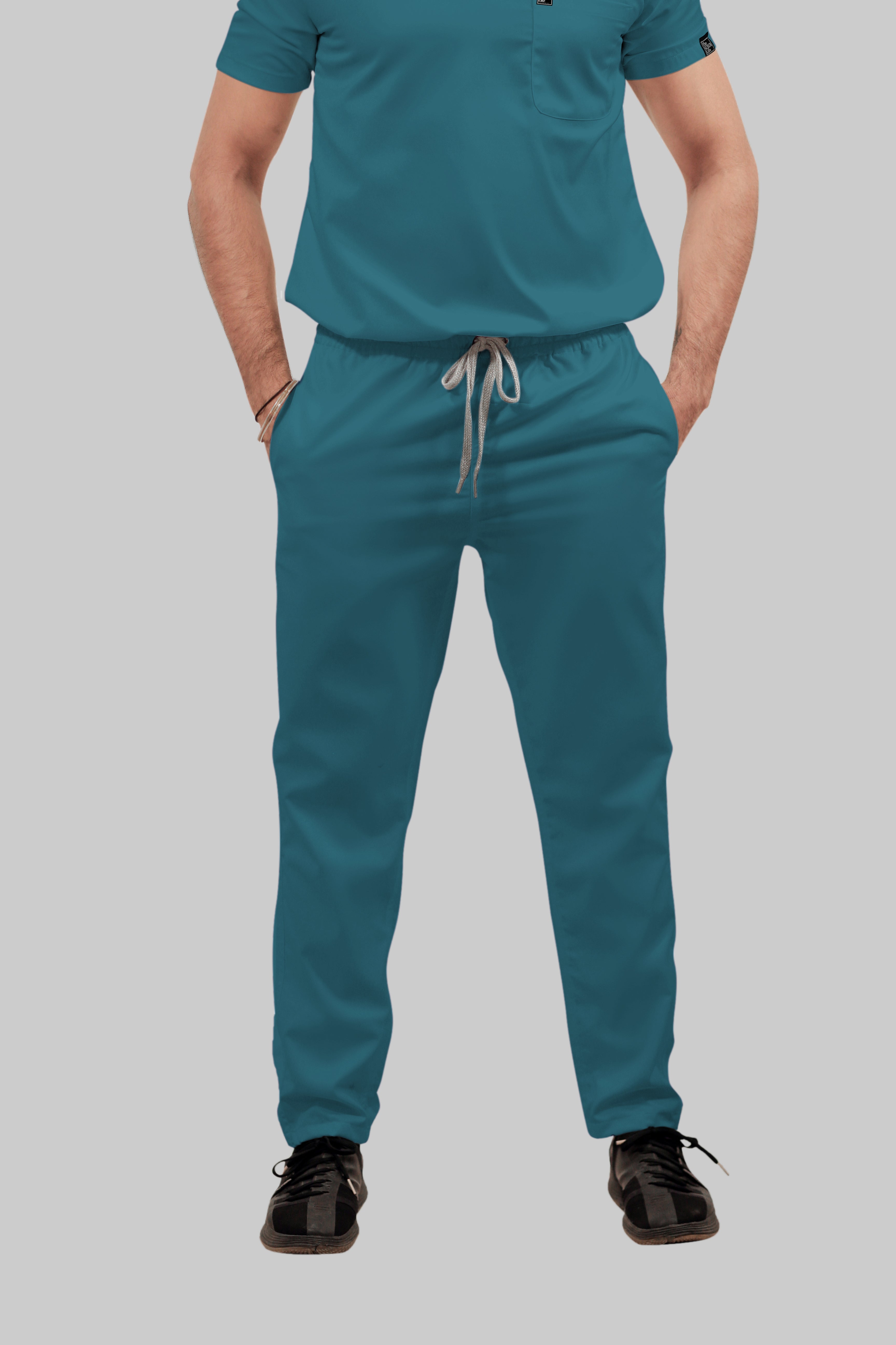 Stretchable (4Way) Male Peacock Blue Mandarin Neck with Straight Pant Scrub Set
