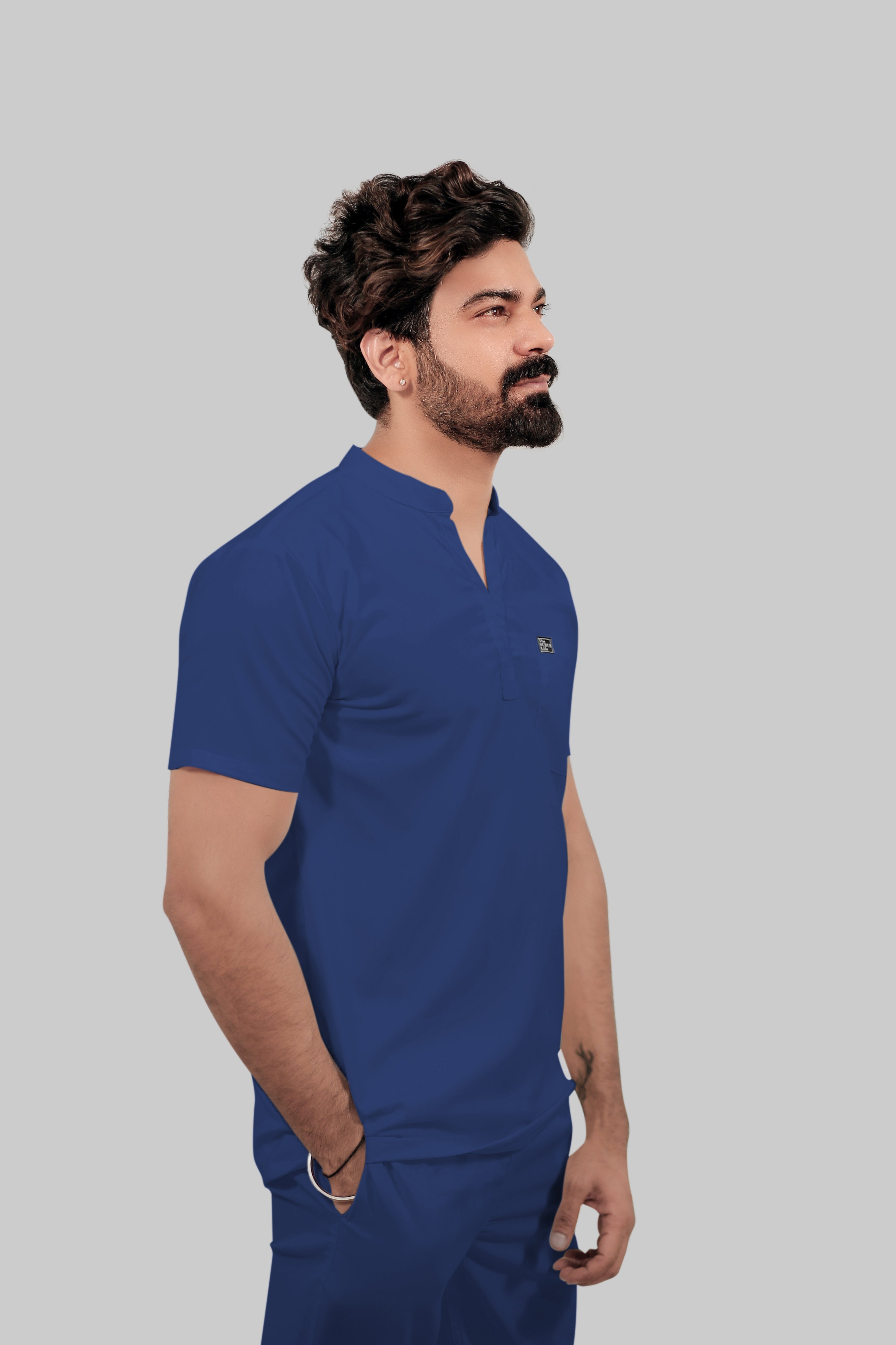 Stretchable (4Way) Male Royal Blue Mandarin Neck with Jogger Scrub Set