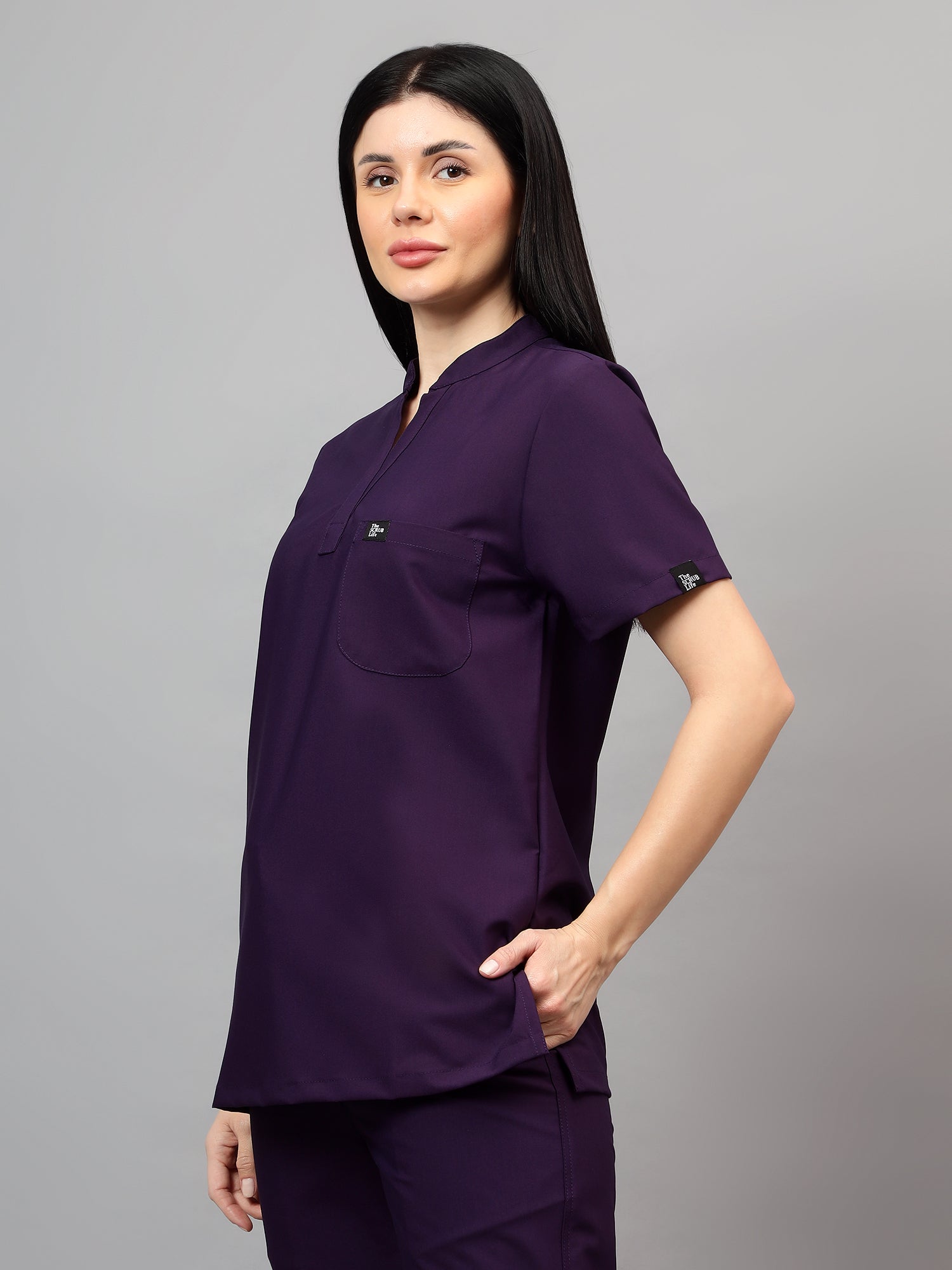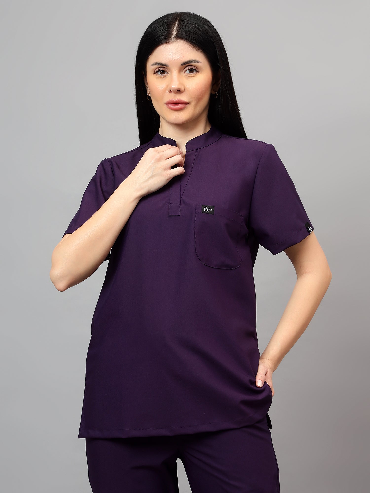 Stretchable (4Way) Female Violet Mandarin Neck Scrub Top
