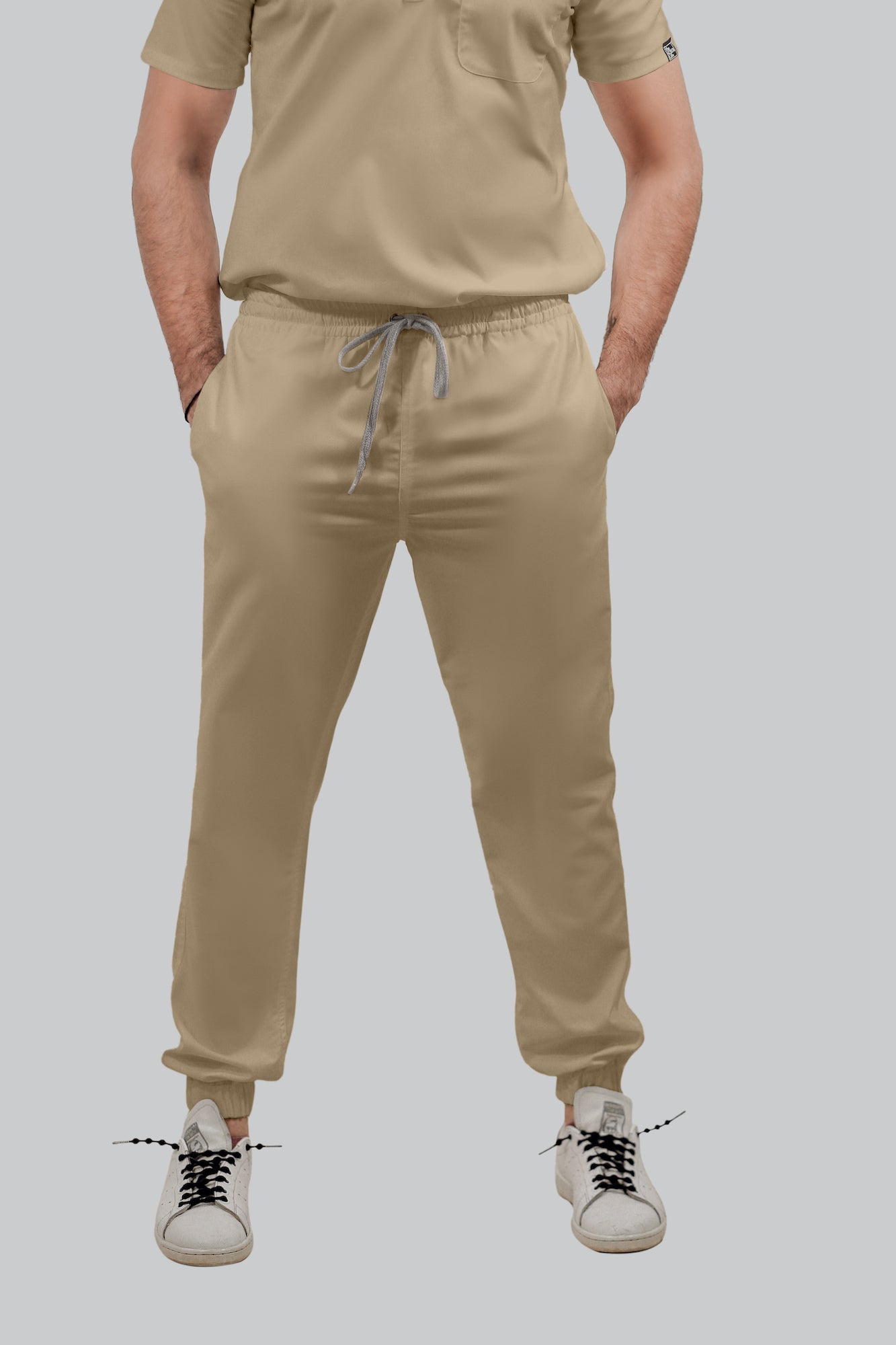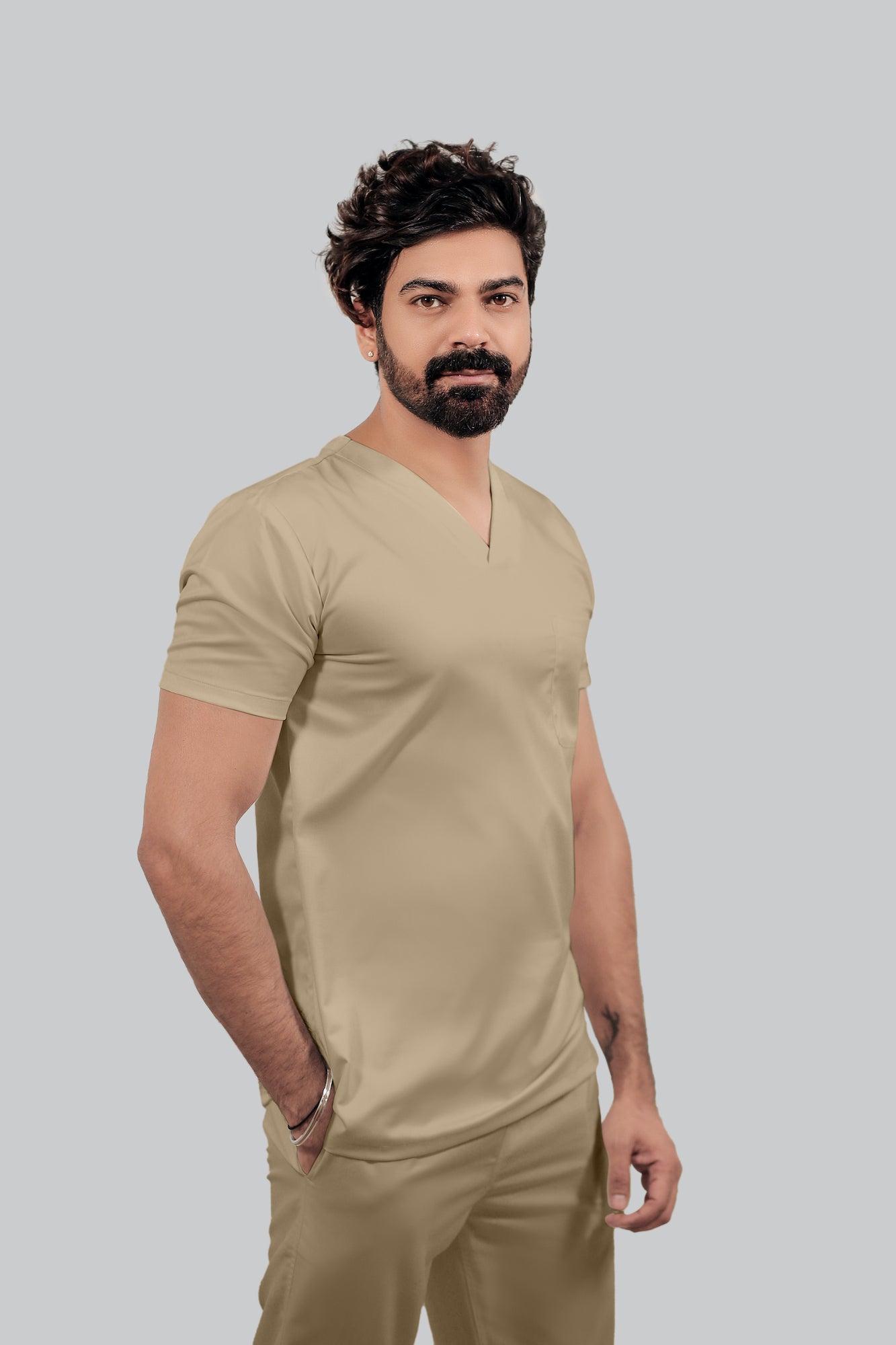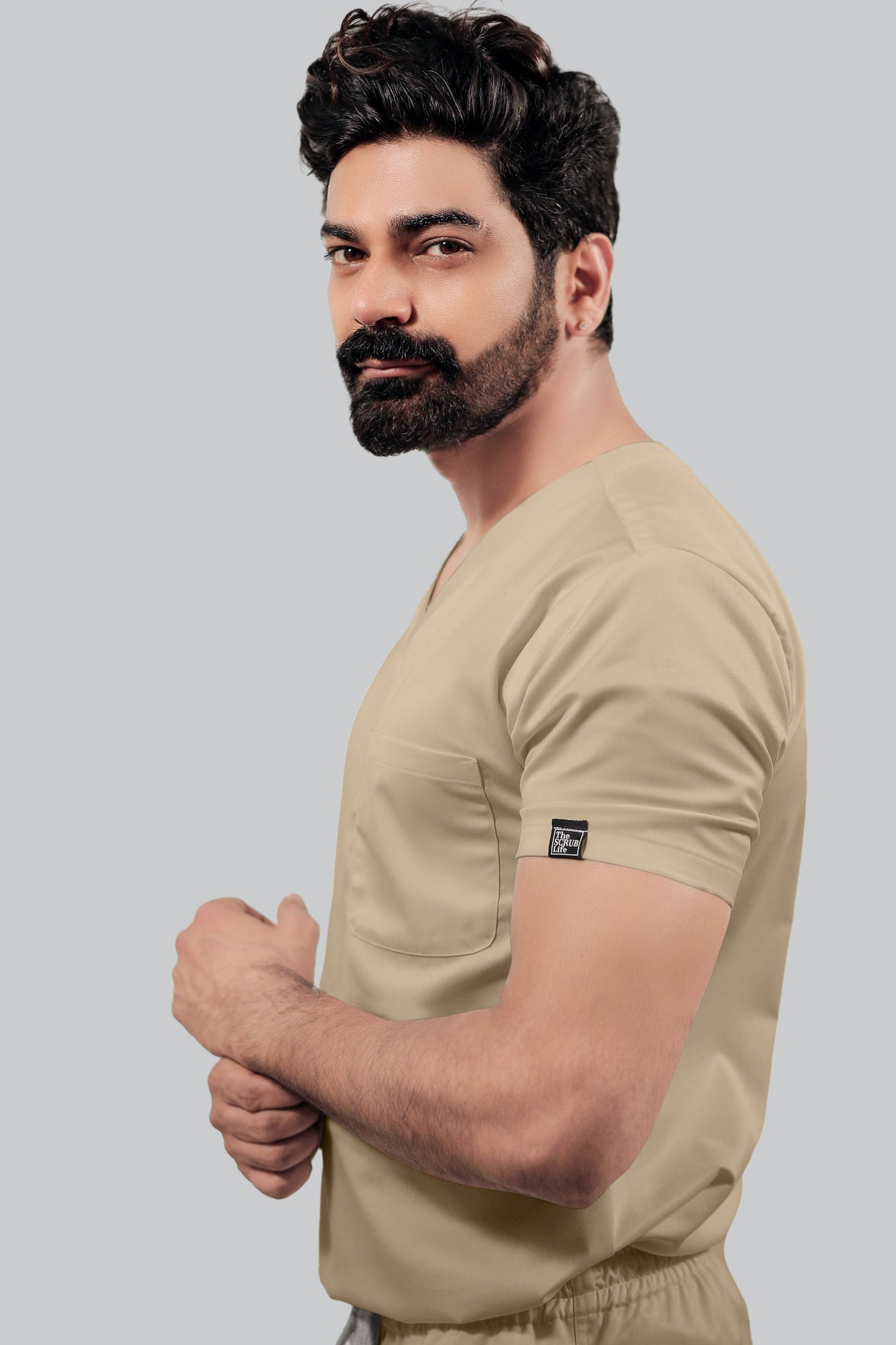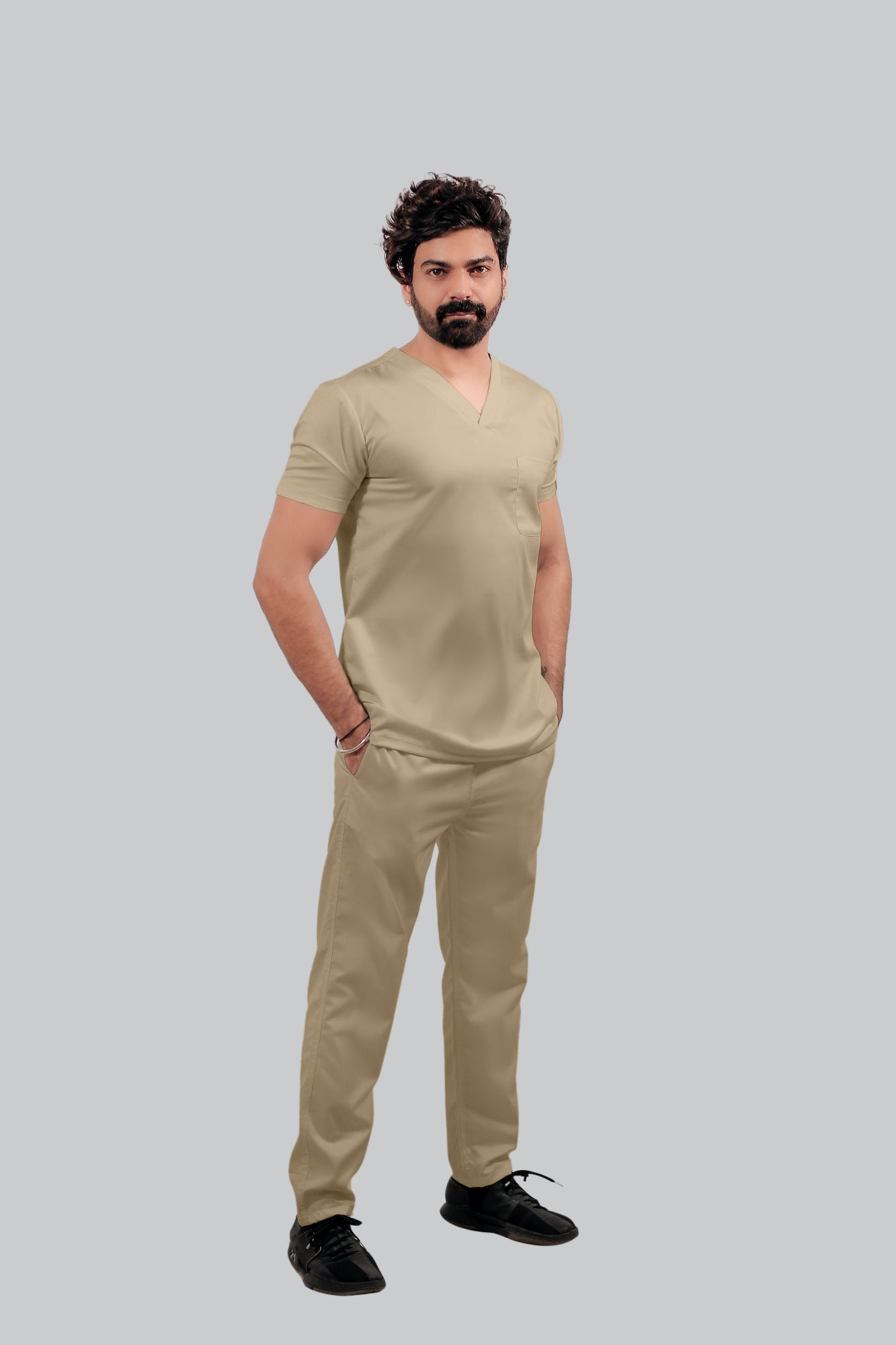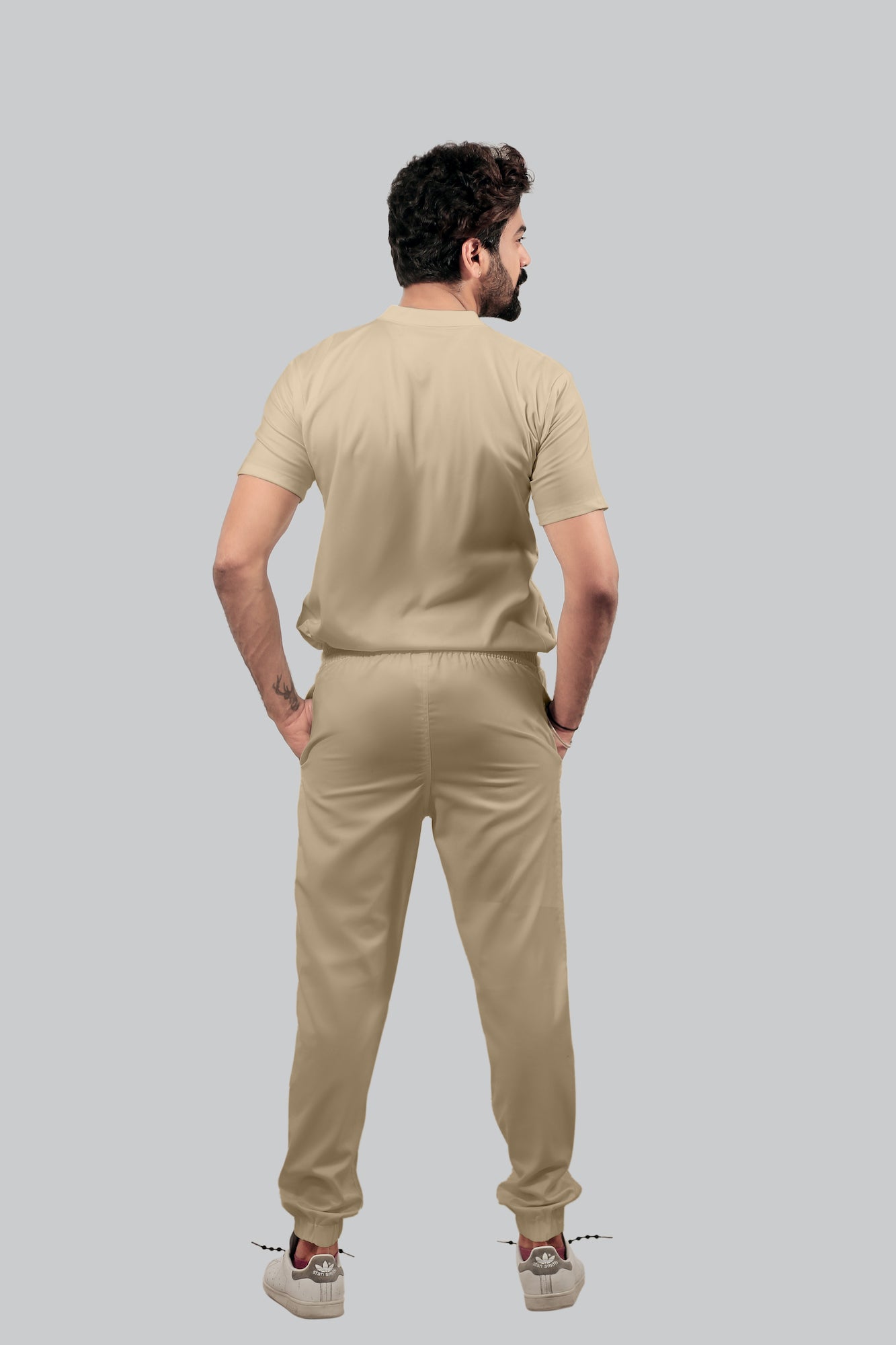 Stretchable (4Way) Male Beige V-Neck With Jogger Scrub Set