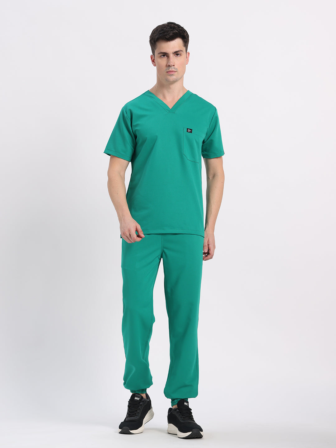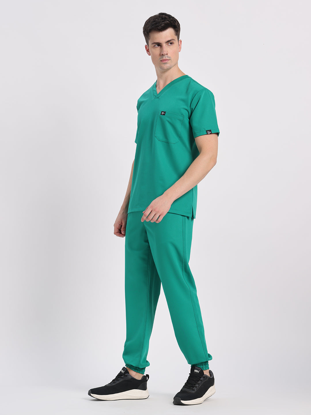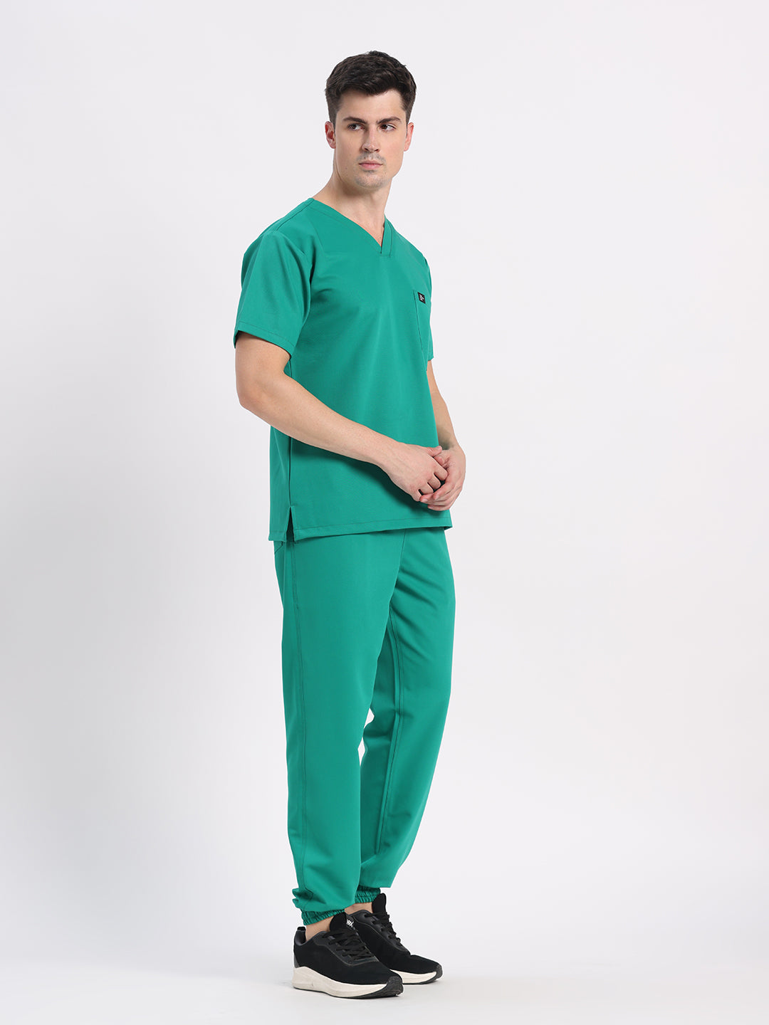 Stretchable (4Way) Male Sea Green V-Neck With Jogger Scrub Set