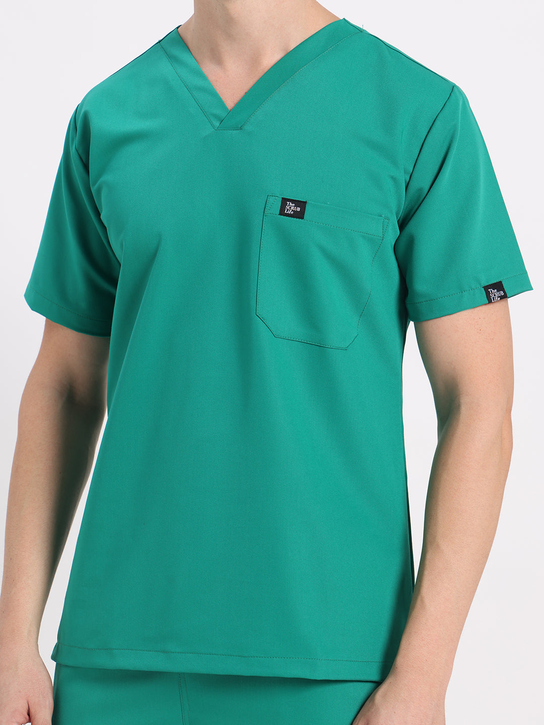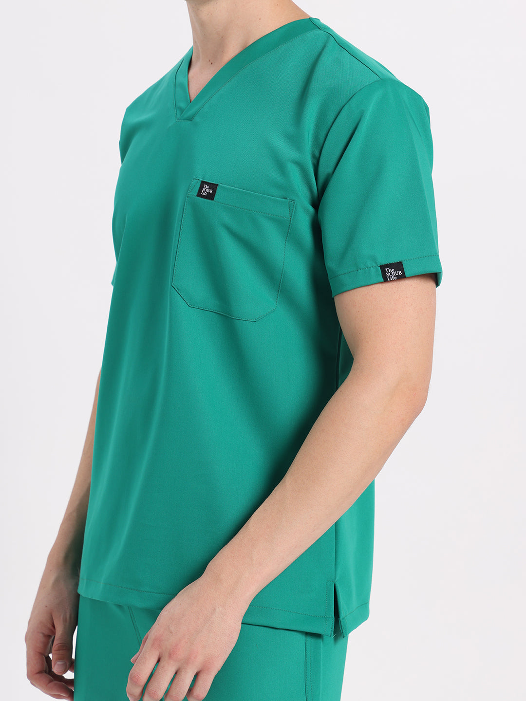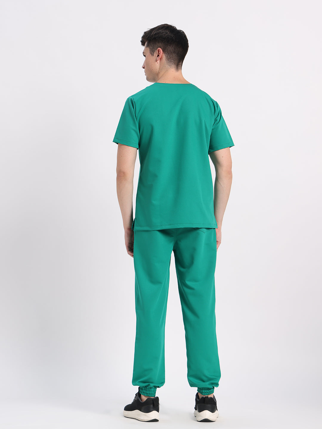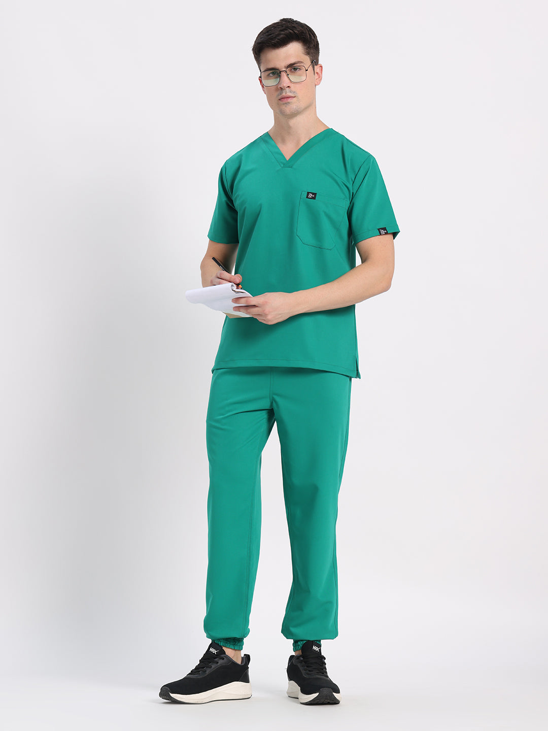 Stretchable (4Way) Male Sea Green V-Neck With Jogger Scrub Set