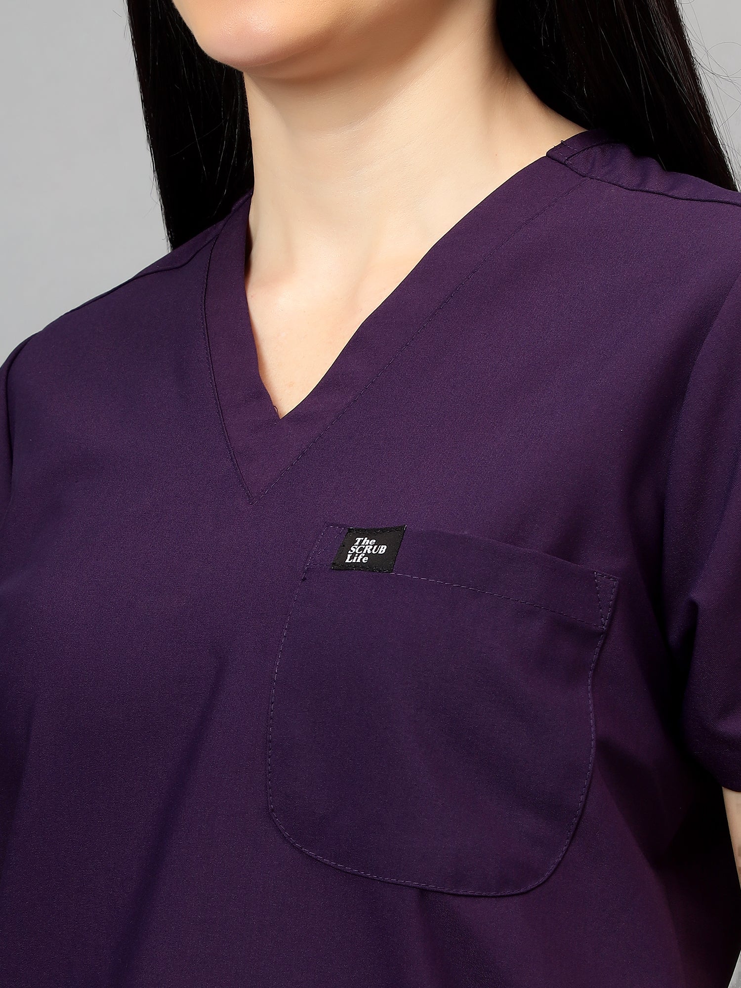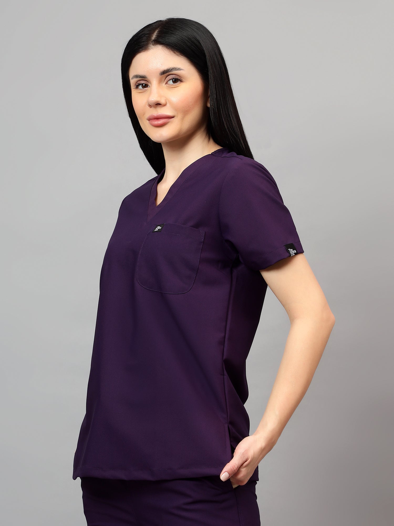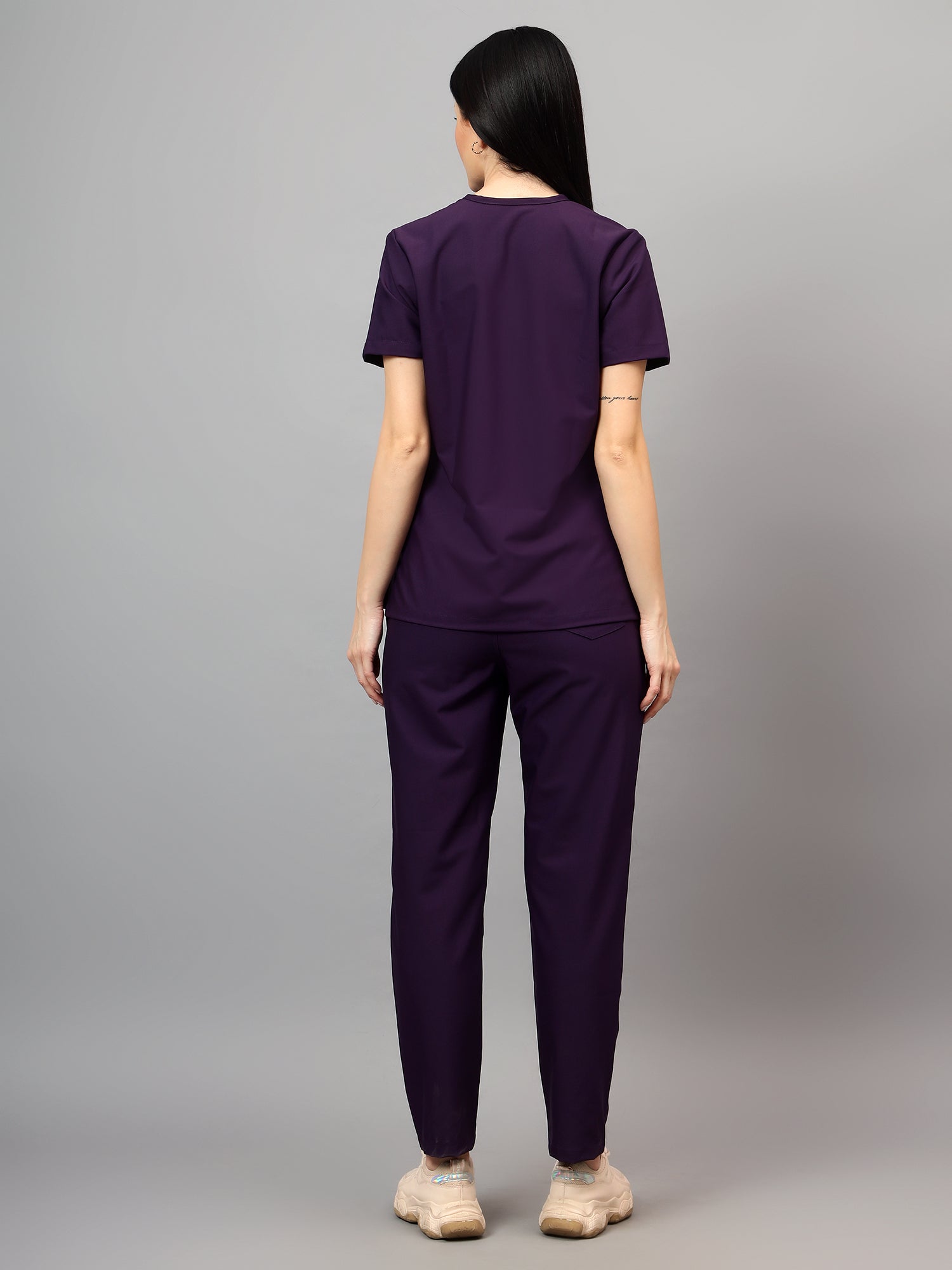 Stretchable (4Way) Female Violet V-Neck With Straight Pant Scrub Set