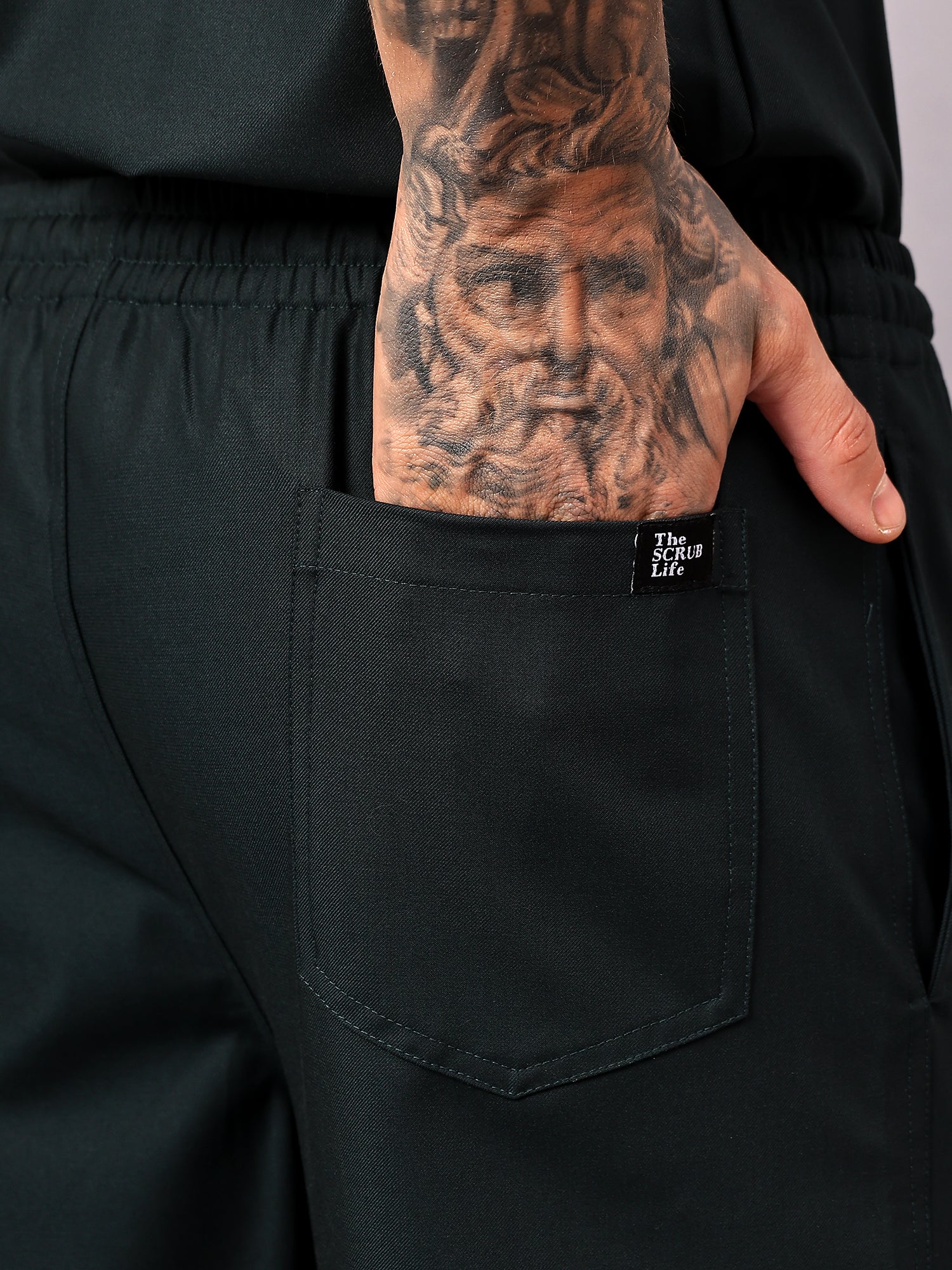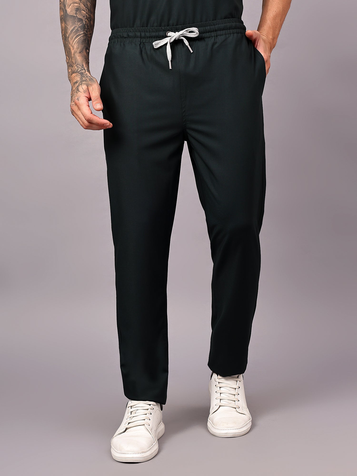 Stretchable (4Way) Male Mid Night Green Straight Scrub Pant