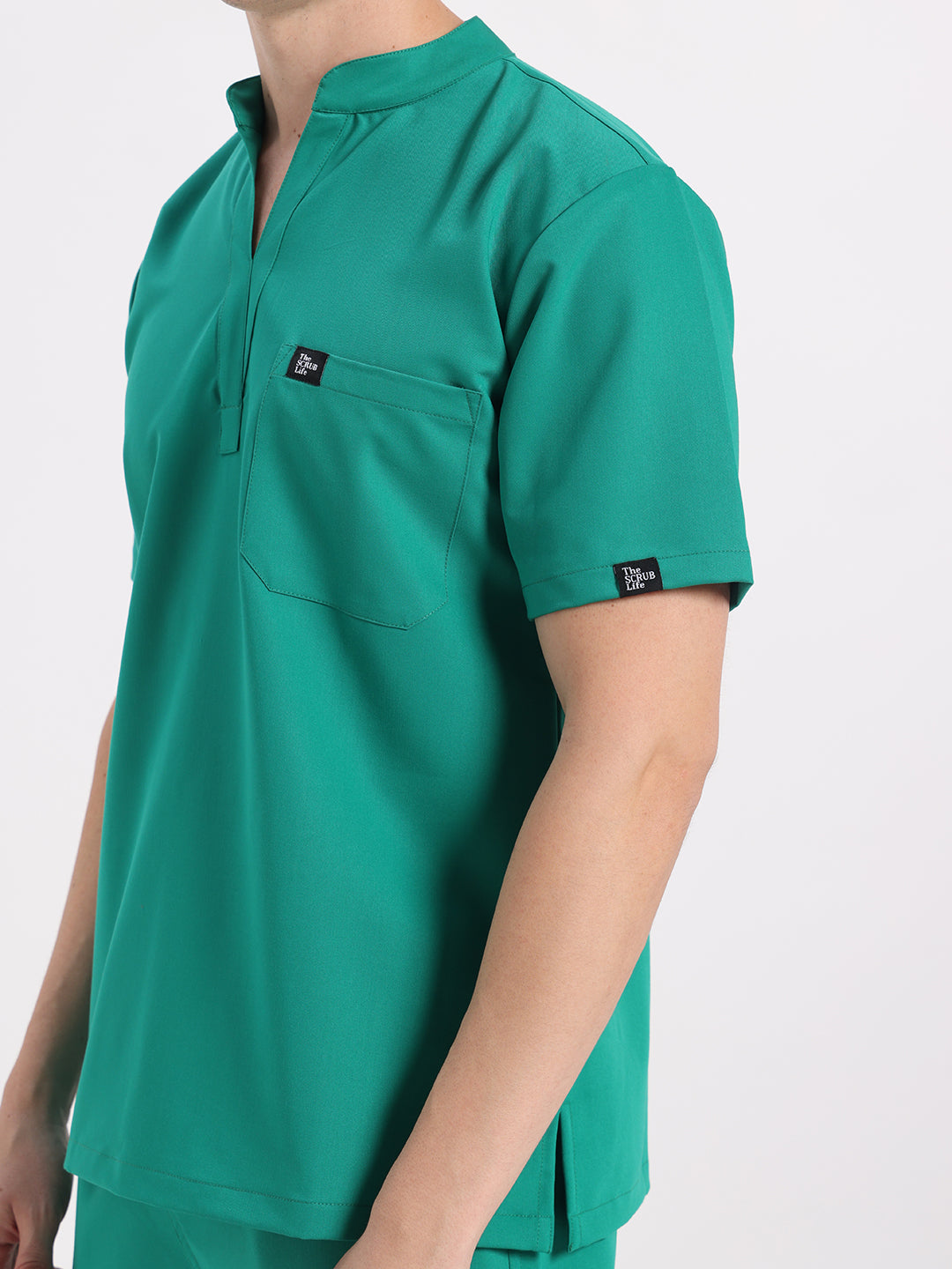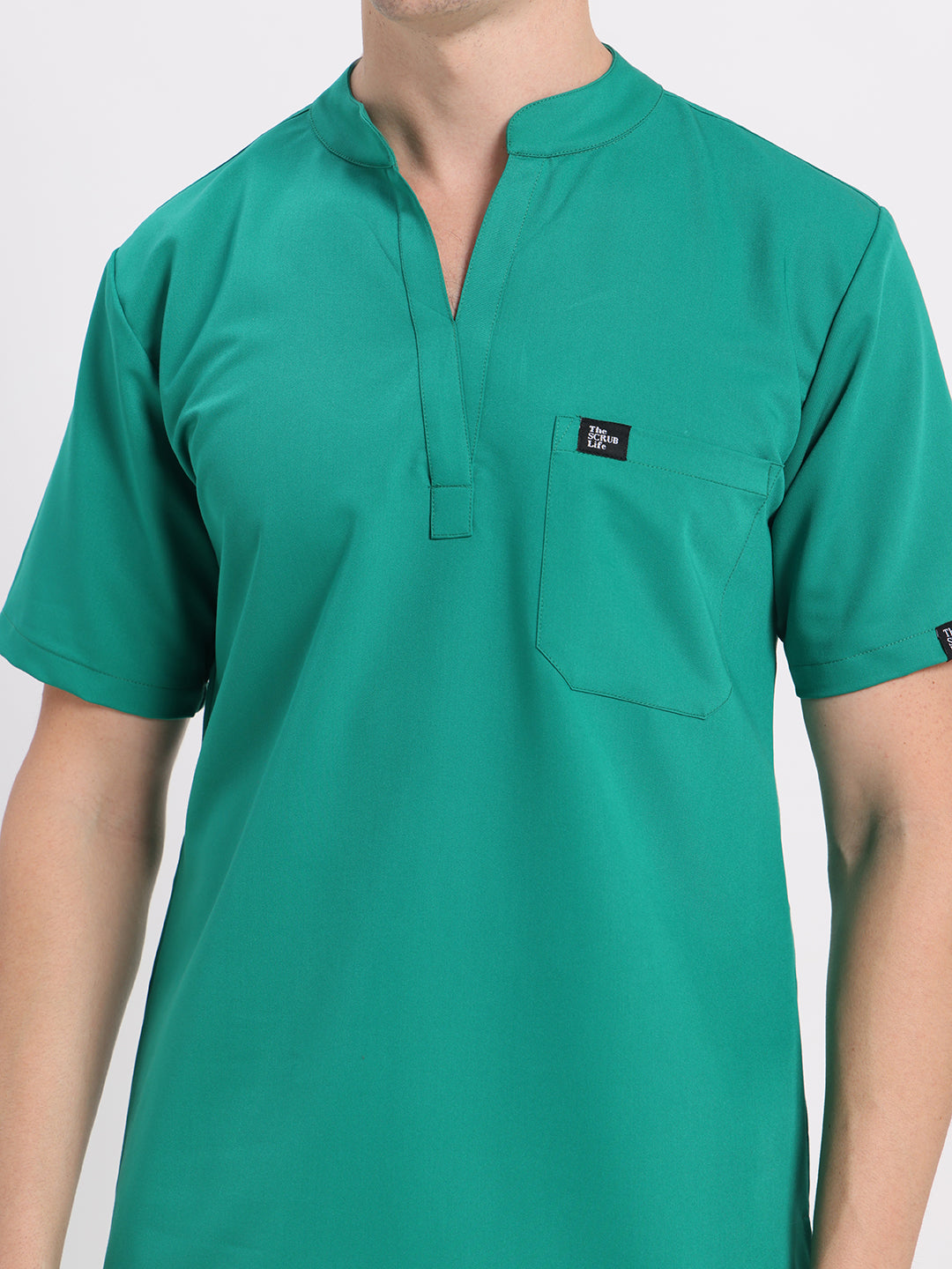 Stretchable (4Way) Male Mandarin Neck Sea Green Scrub Top