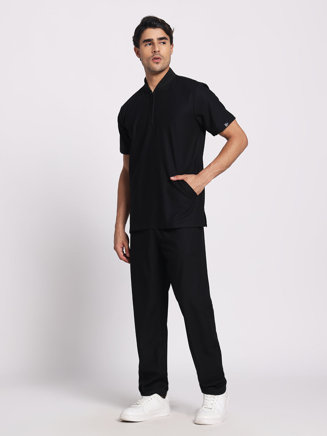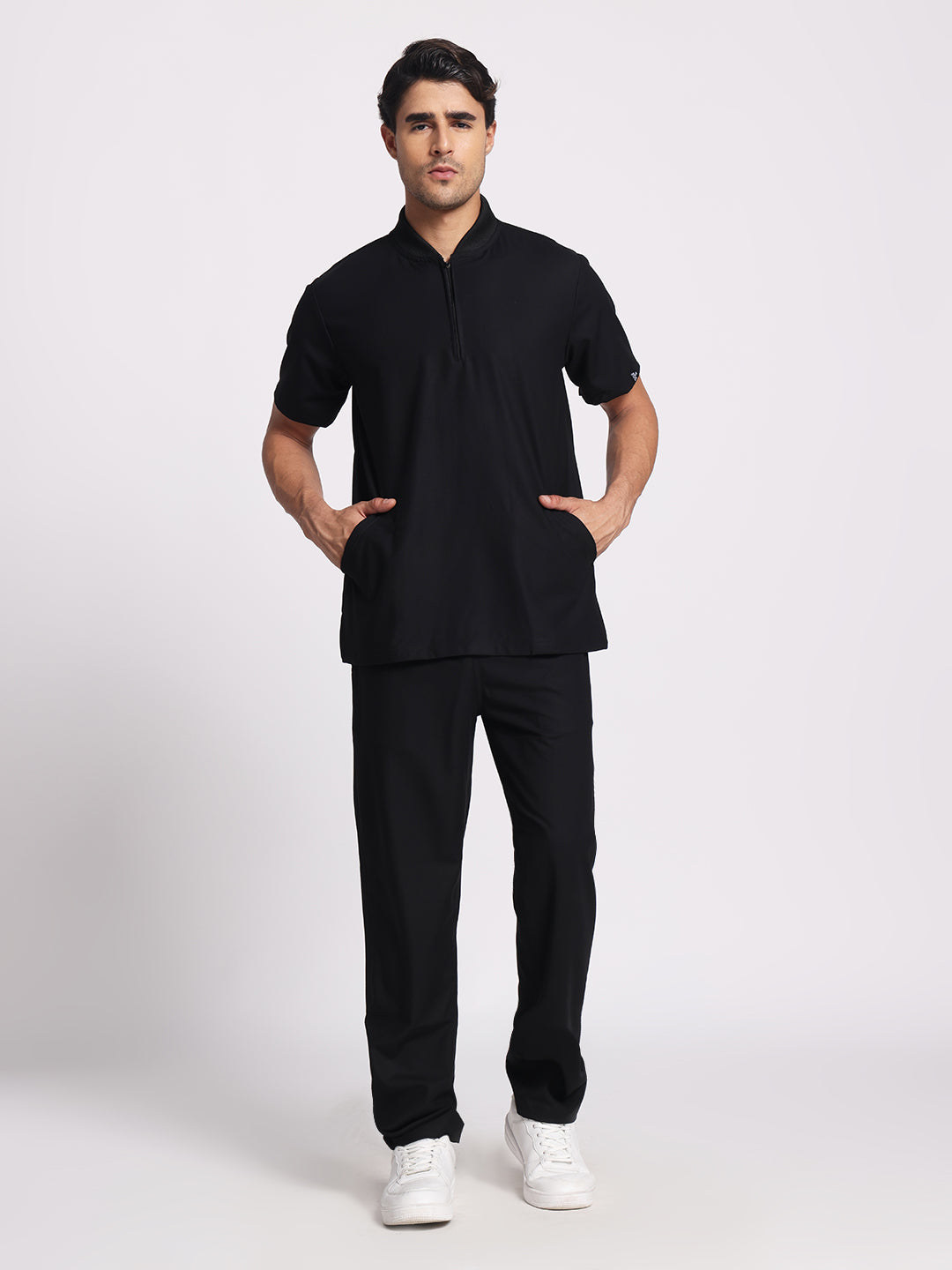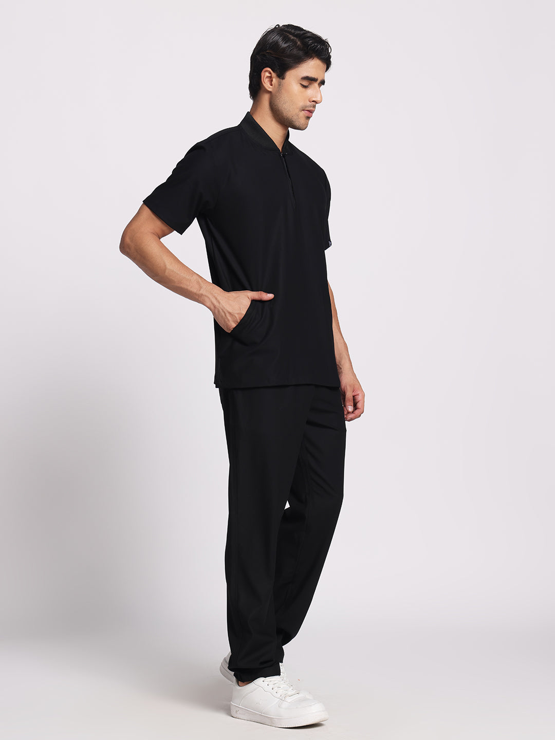 Stretchable (4Way) Black Male Flex Zip Neckline Top With Straight Pants
