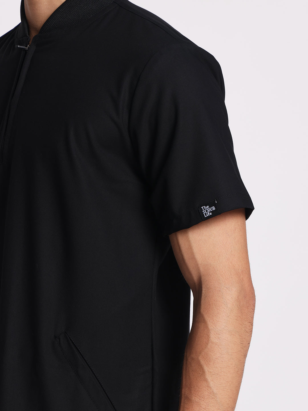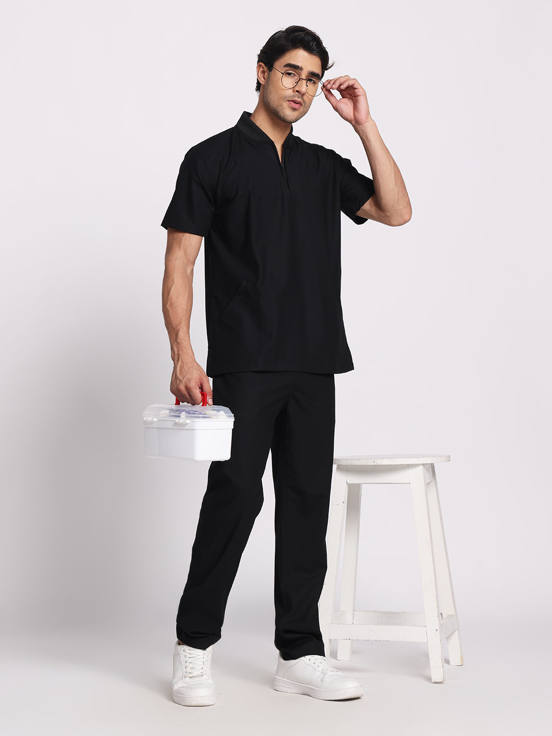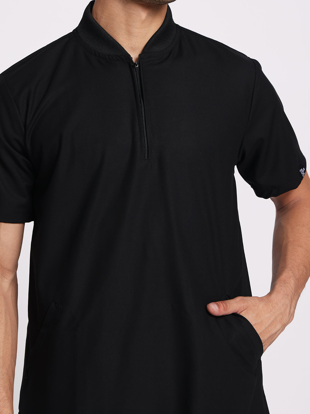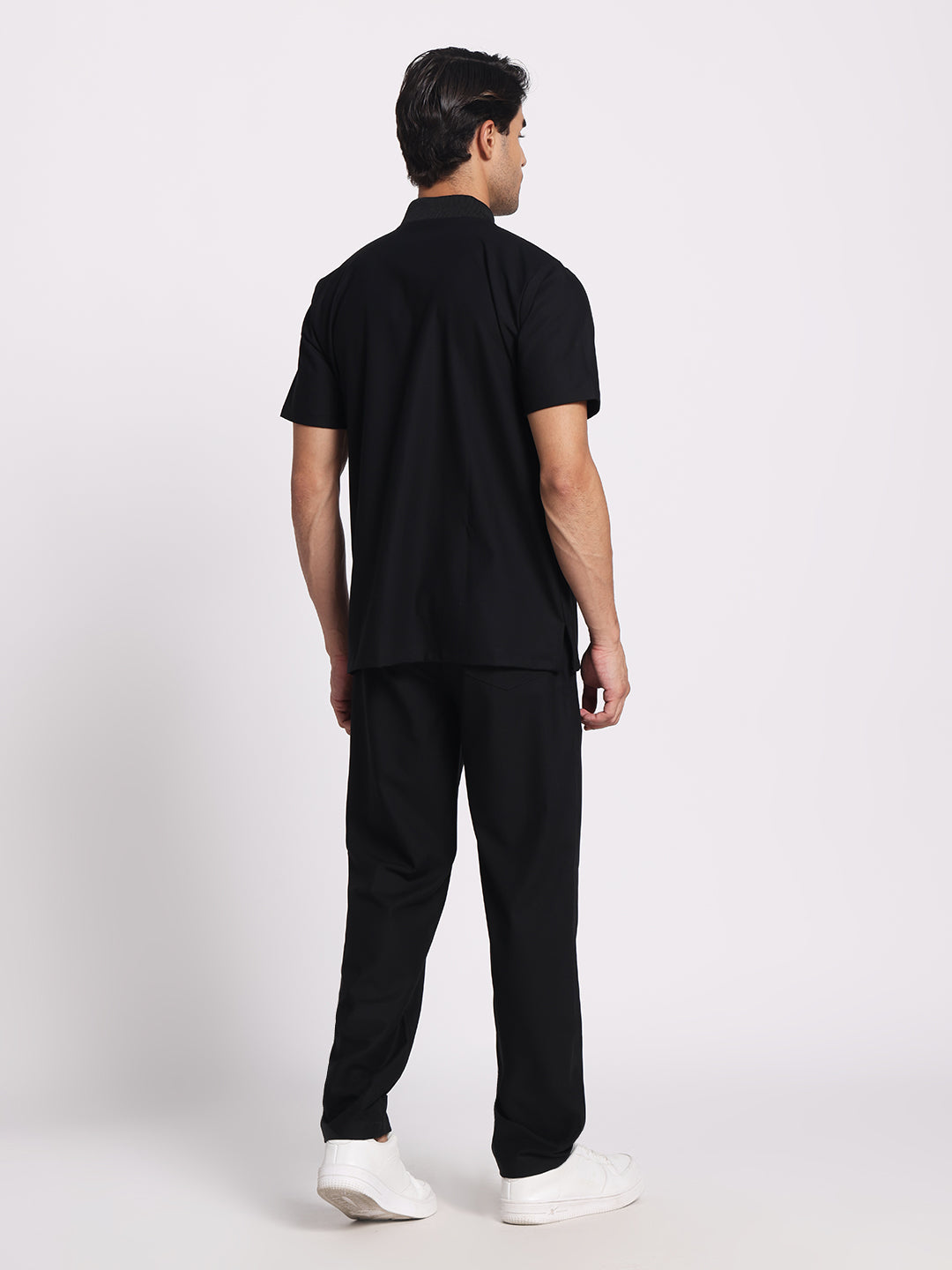 Stretchable (4Way) Black Male Flex Zip Neckline Top With Straight Pants