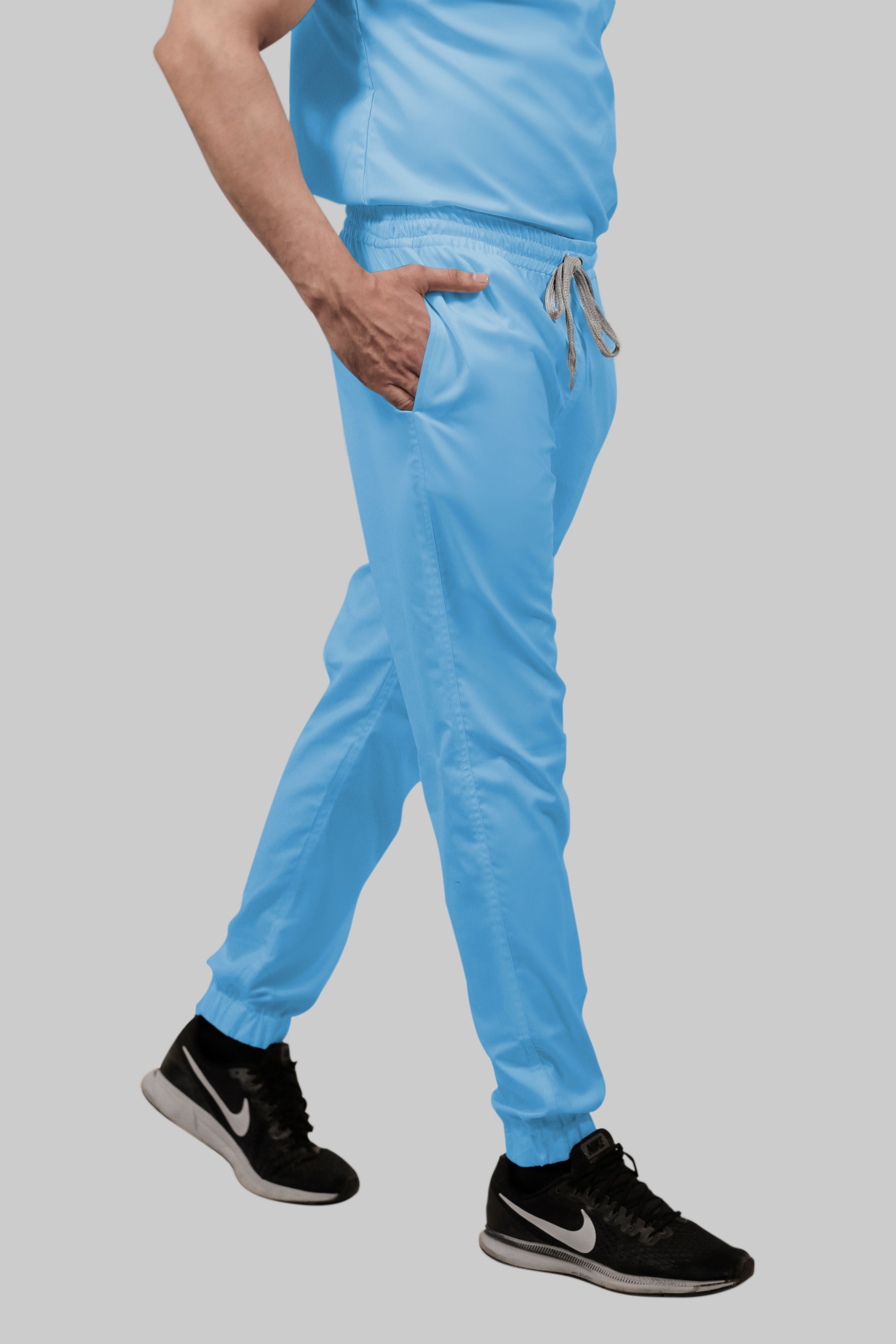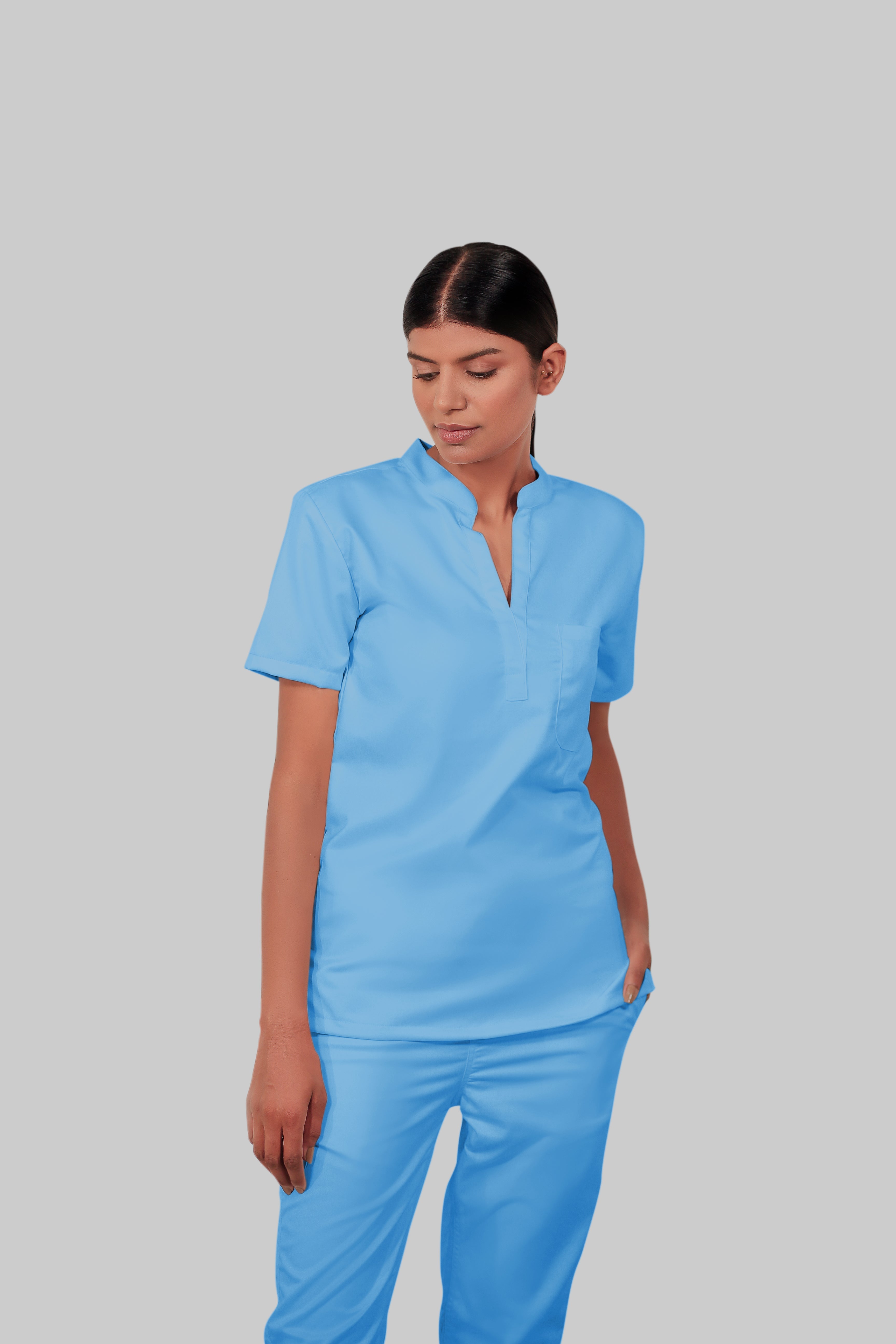 Stretchable (2Way) Female Light Blue Mandarin Neck With Jogger Scrub Scrub Set