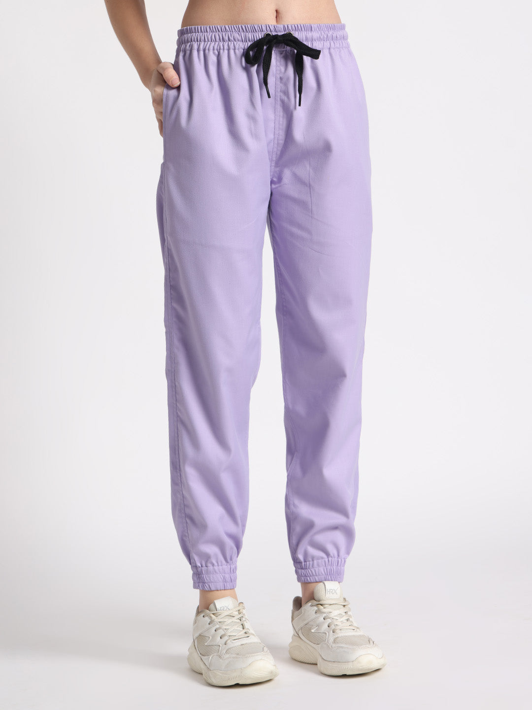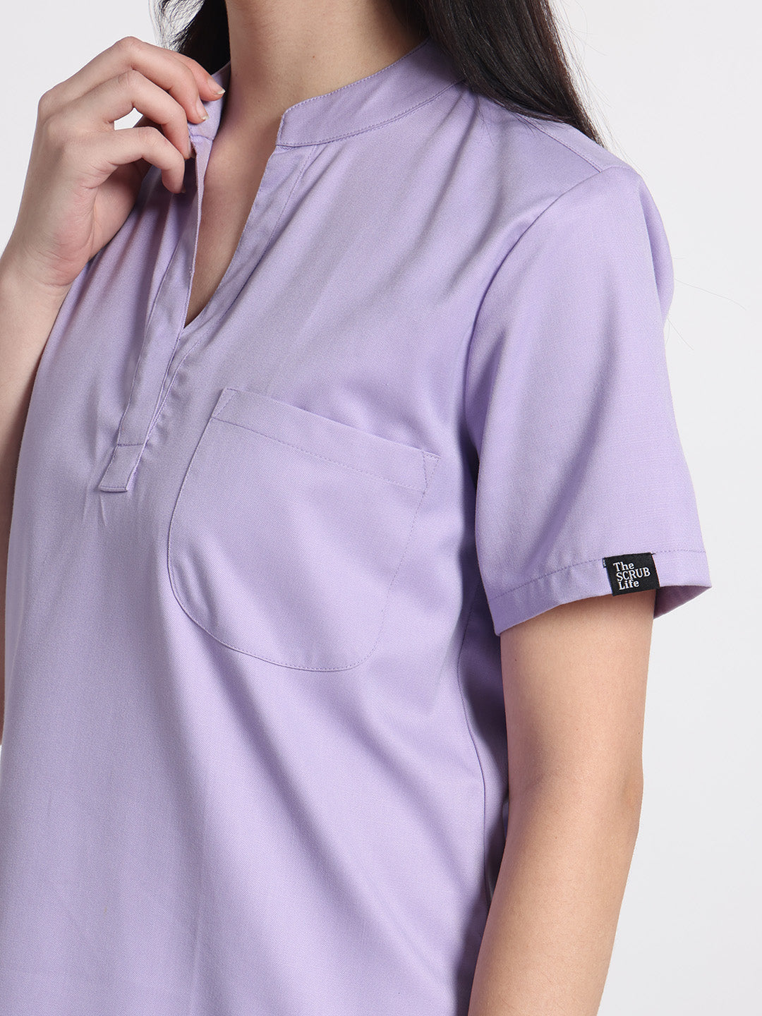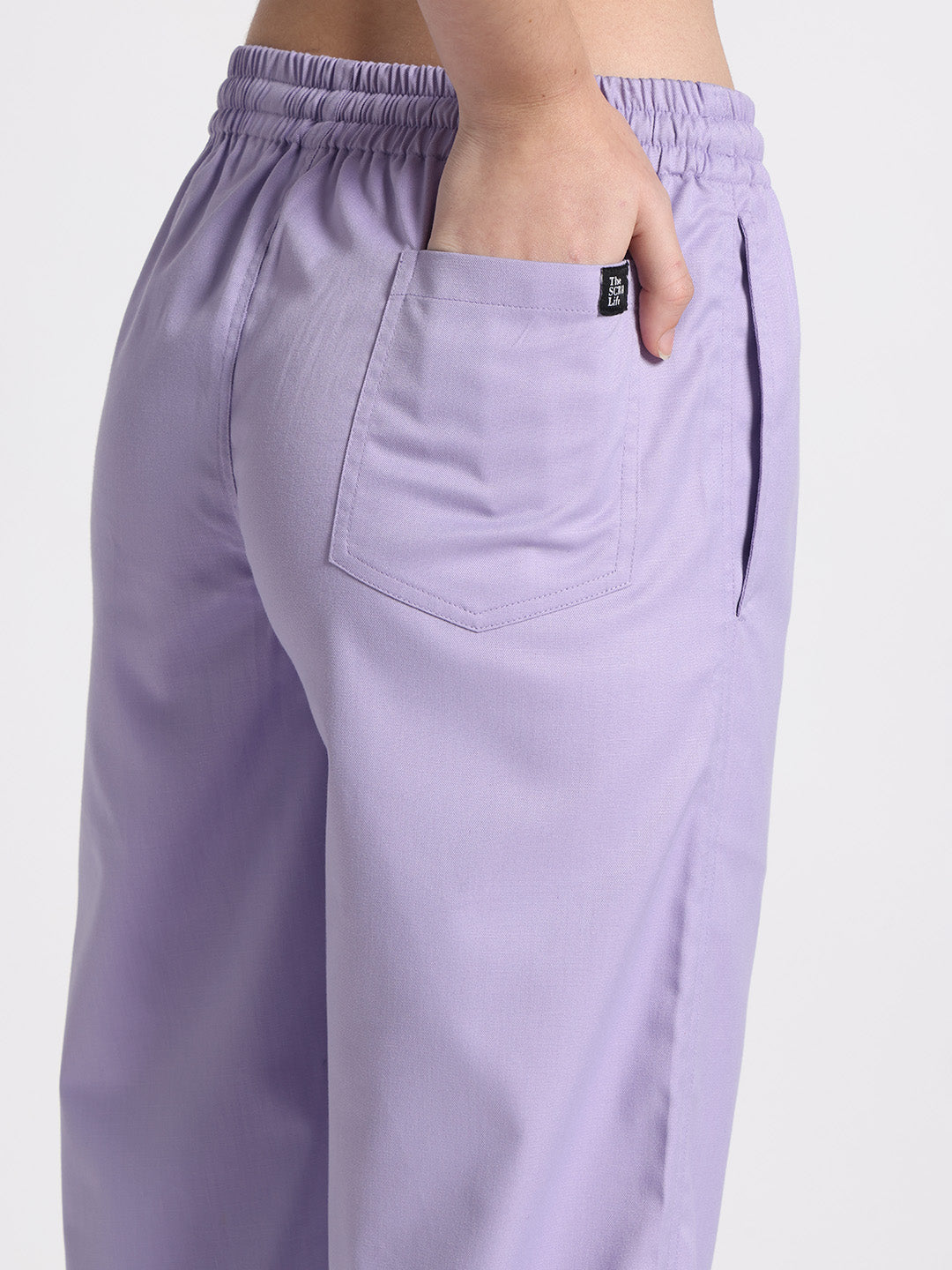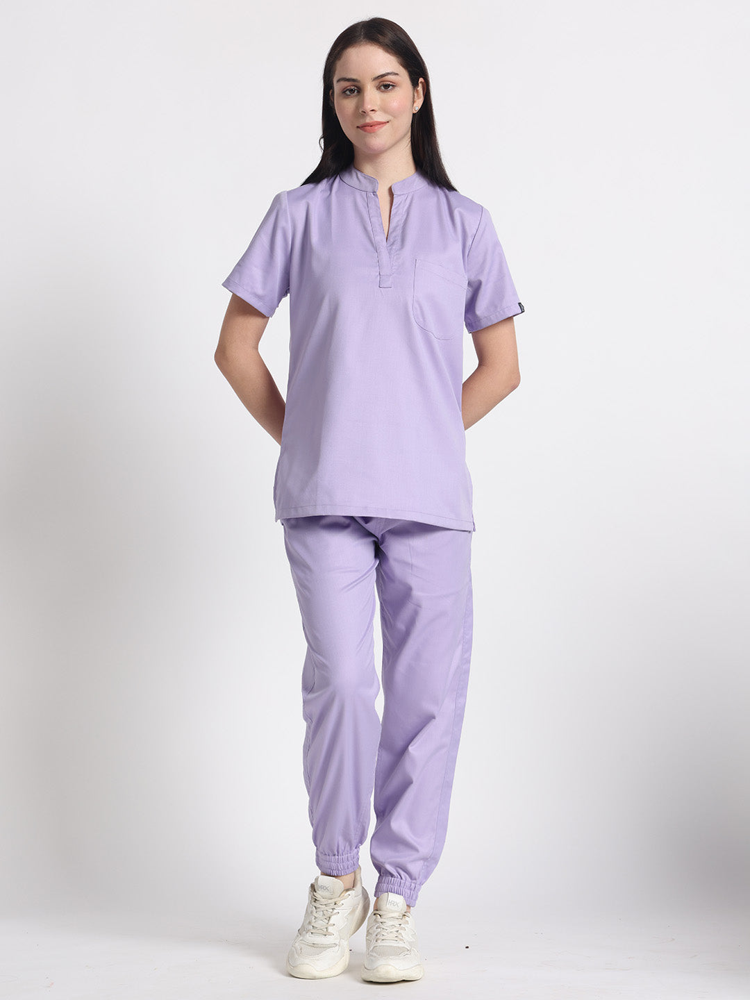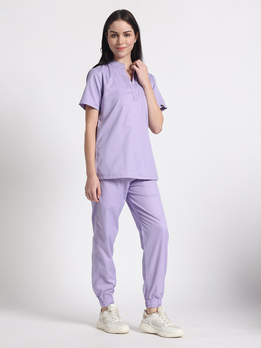 Stretchable (2Way) Female Lavender Mandarin Neck With Jogger Scrub Set