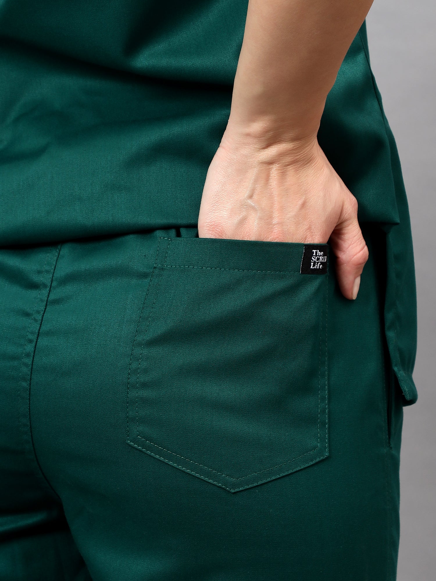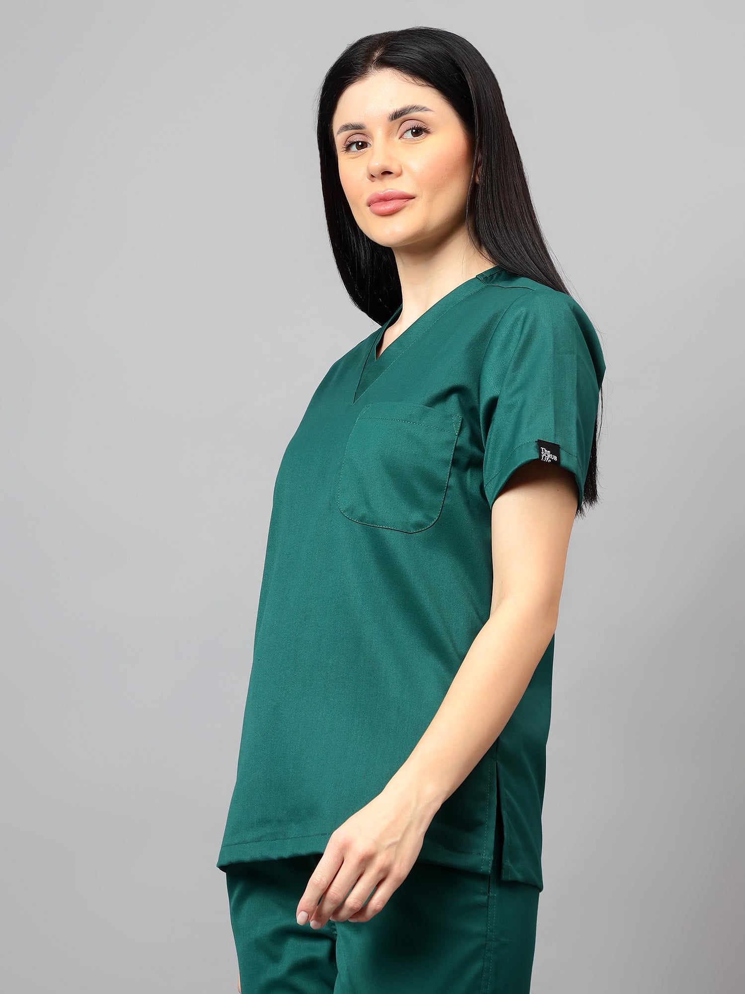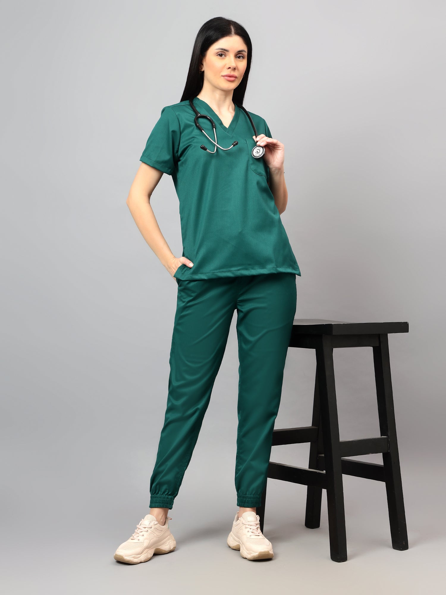 Stretchable (2Way) Female Hunter Green V-Neck With Jogger Scrub Set
