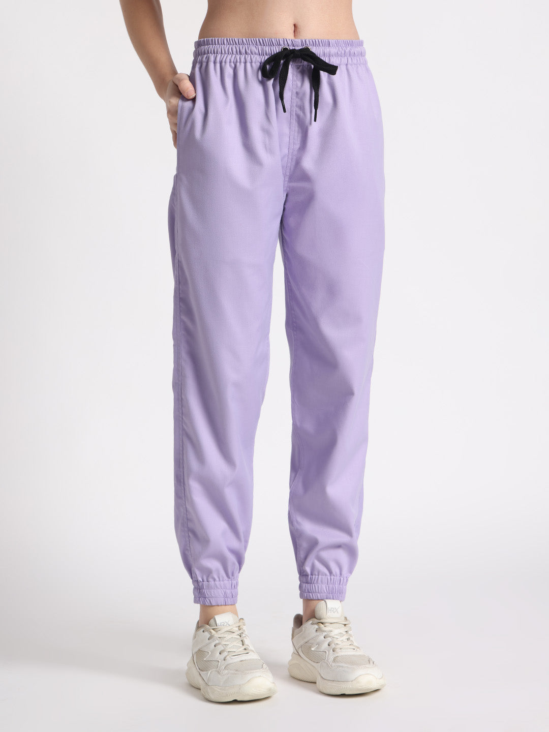 Stretchable (2Way) Female Lavender V-Neck With Jogger Scrub Set