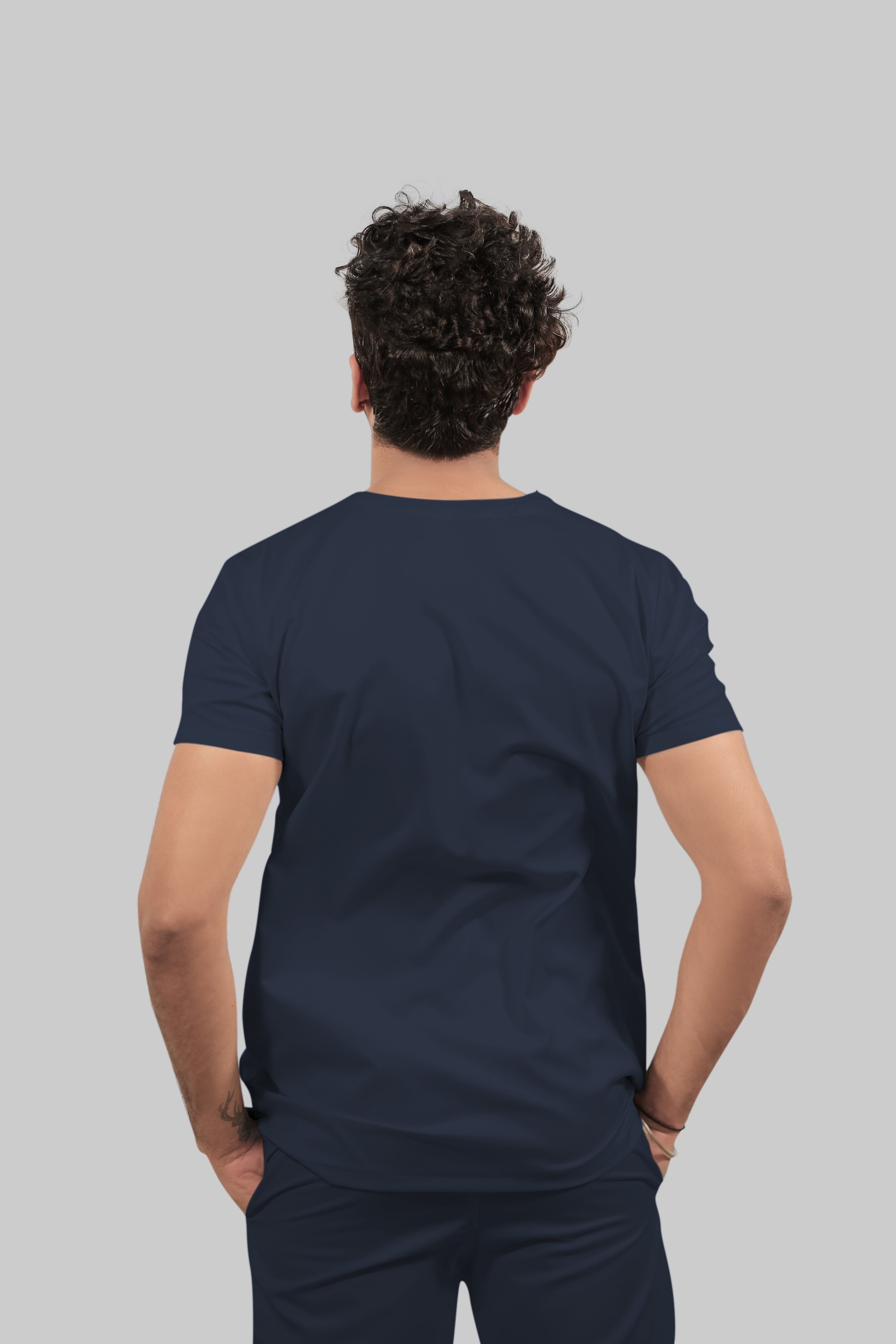 Stretchable (4Way) Male V-Neck Navy Blue Scrub Top