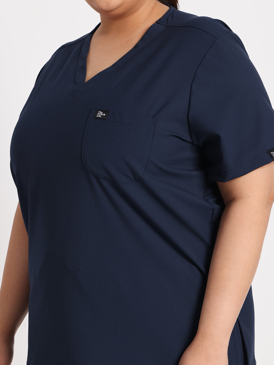 Stretchable (4Way) Female Navy Blue V-Neck Scrub Top
