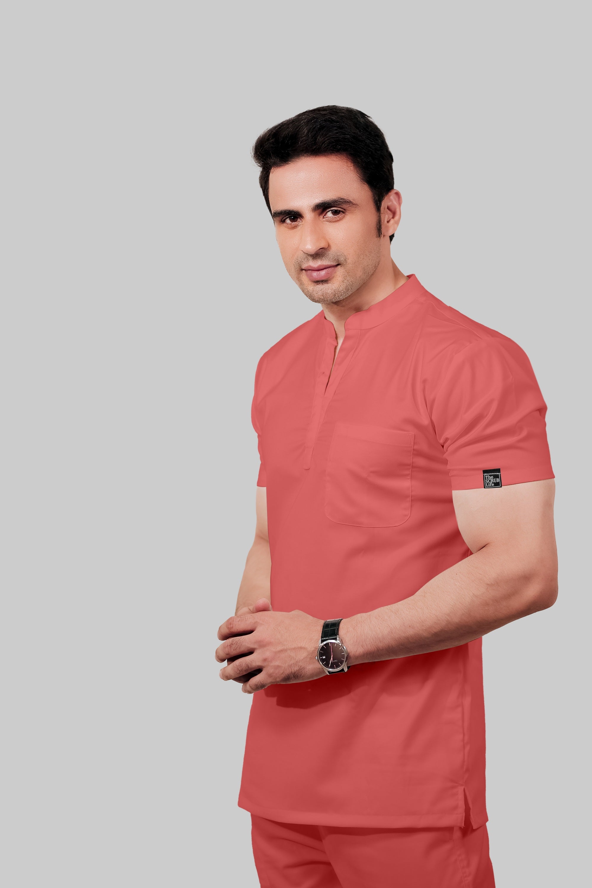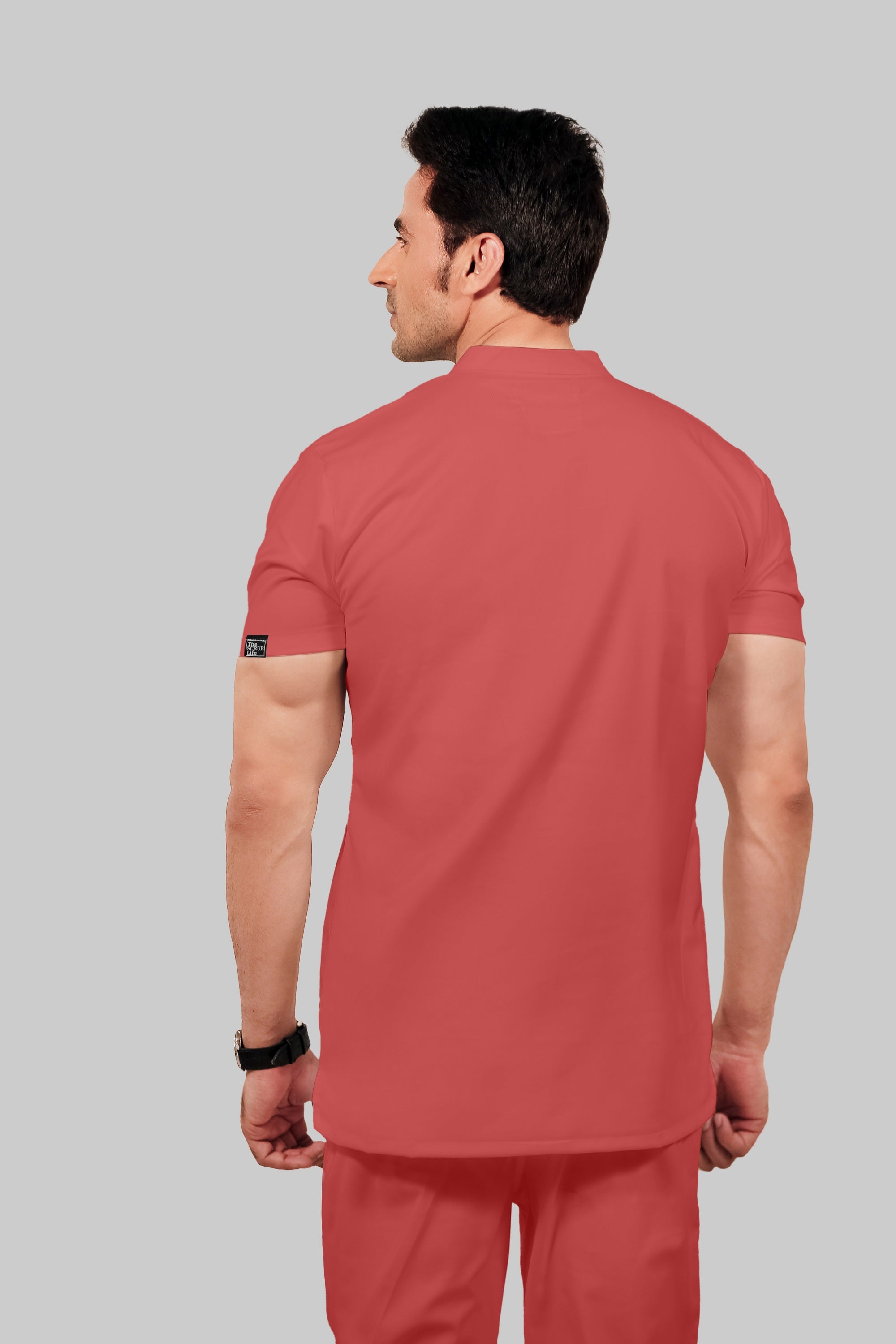 Stretchable (2Way) Male Peach Mandarin Neck With Jogger Scrub Set