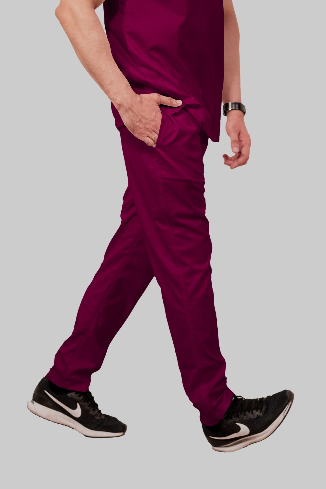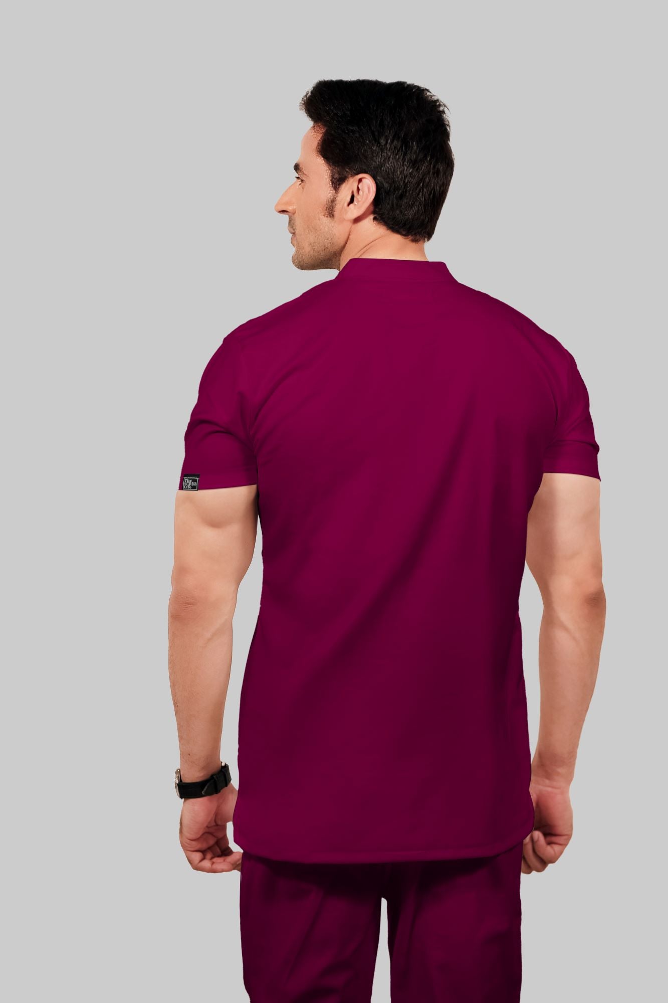 Stretchable (2Way) Male Wine Mandarin Neck With Straight Pant Scrub Set