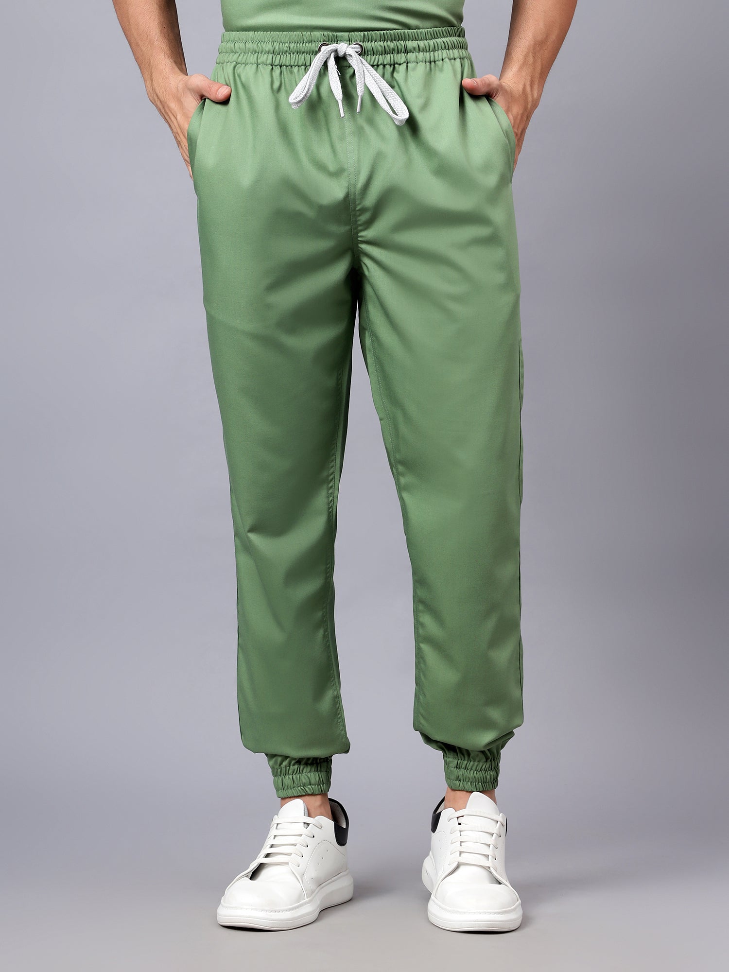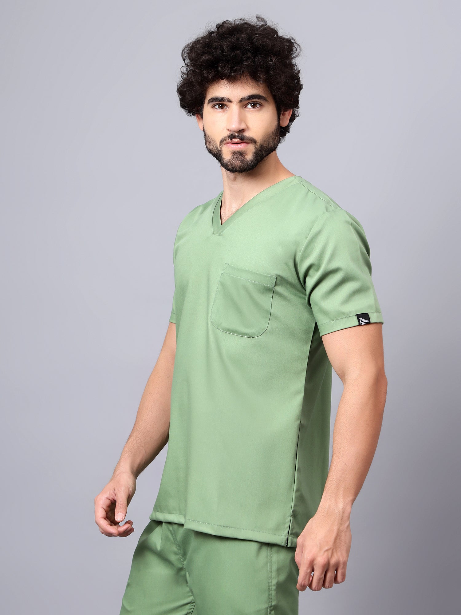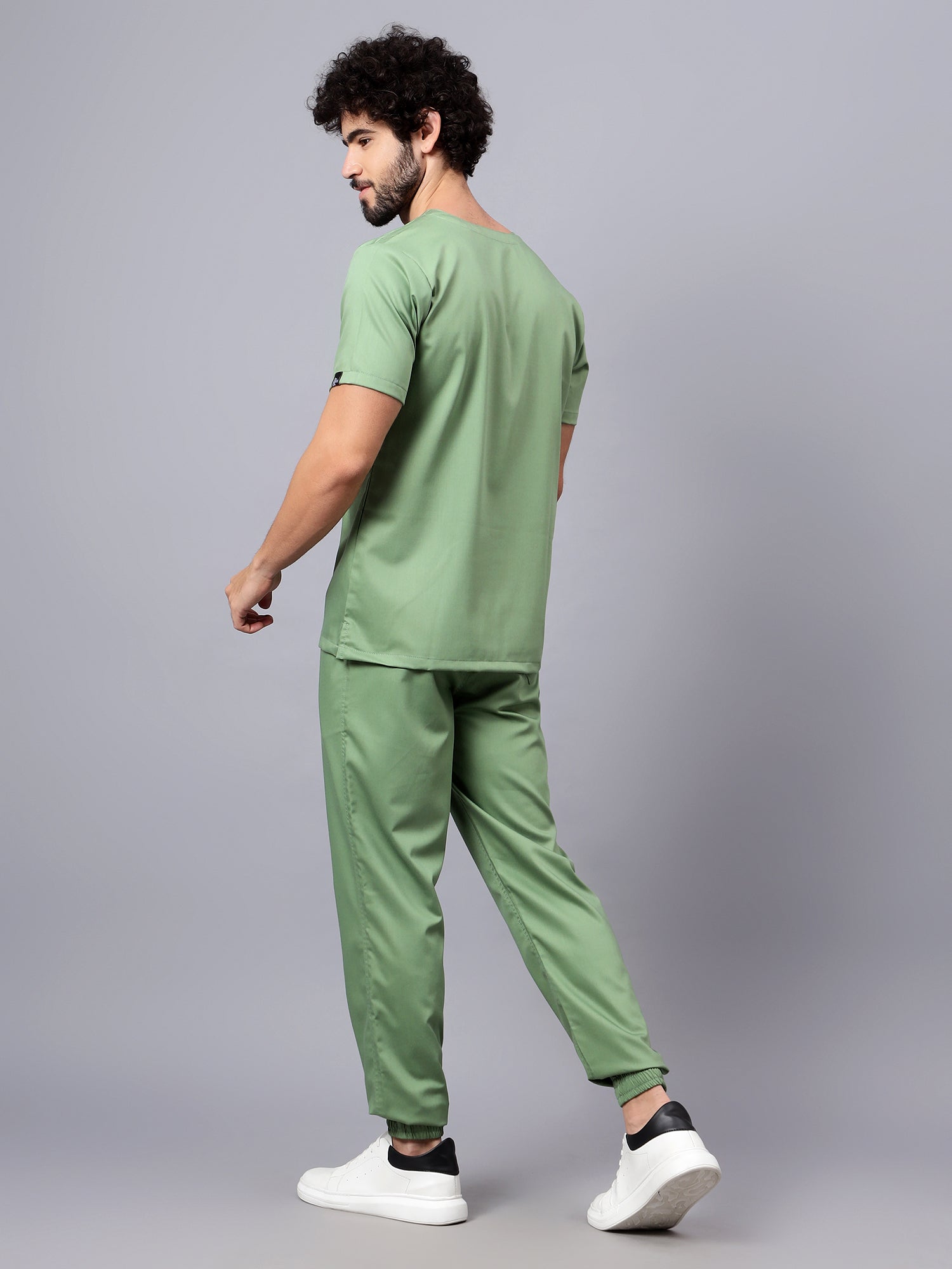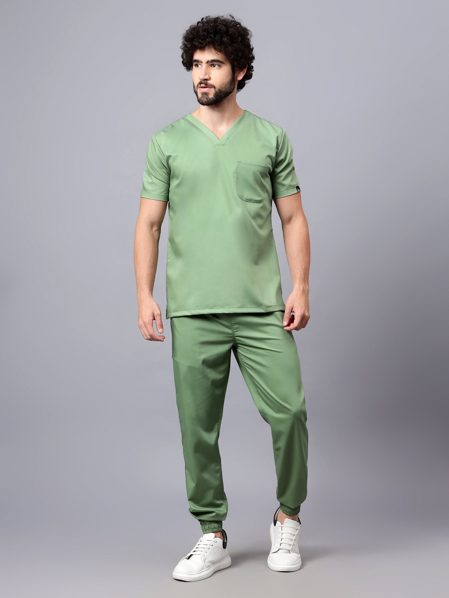Stretchable (2Way) Male Pista Green V-Neck With Jogger Scrub Set