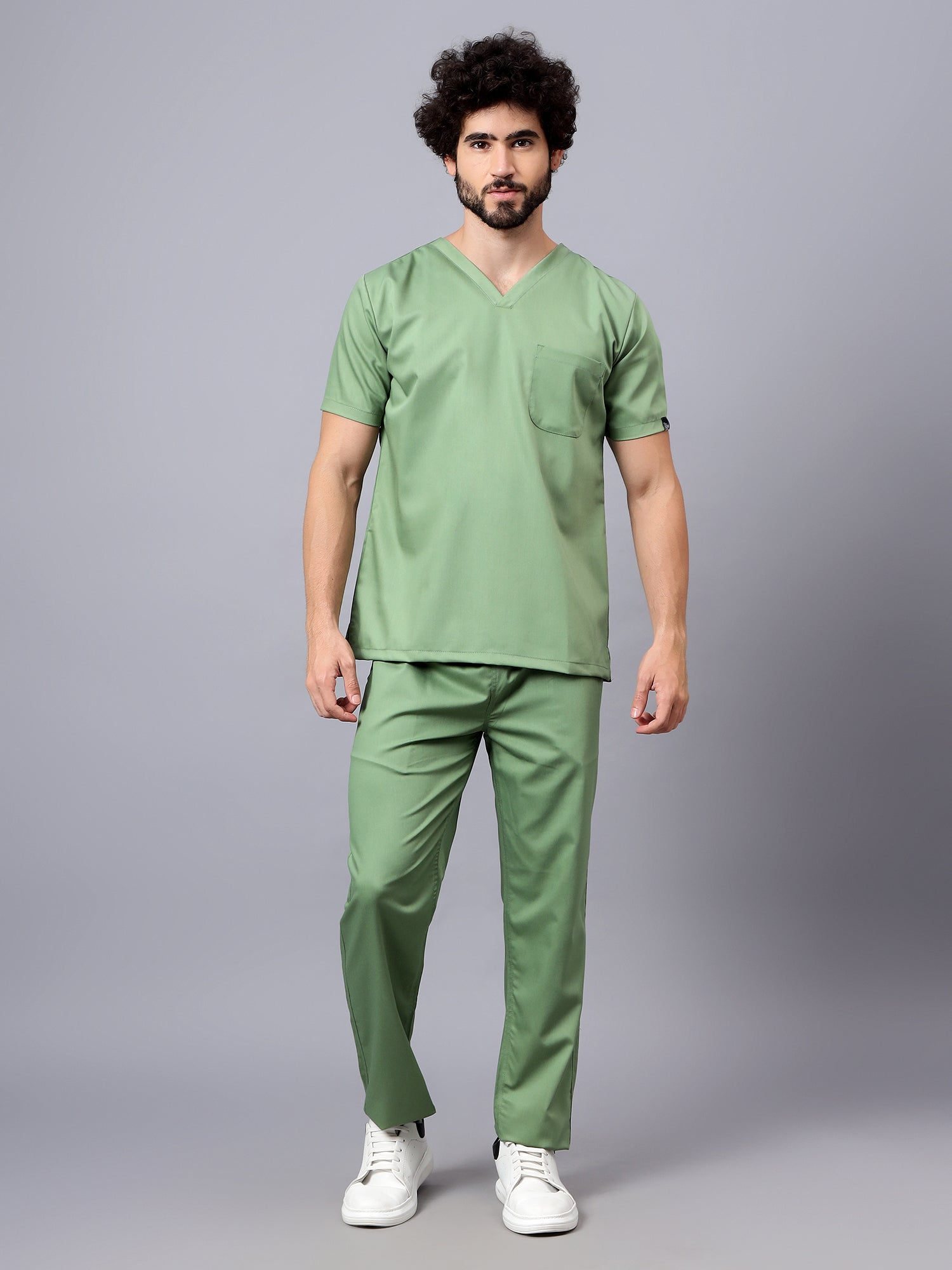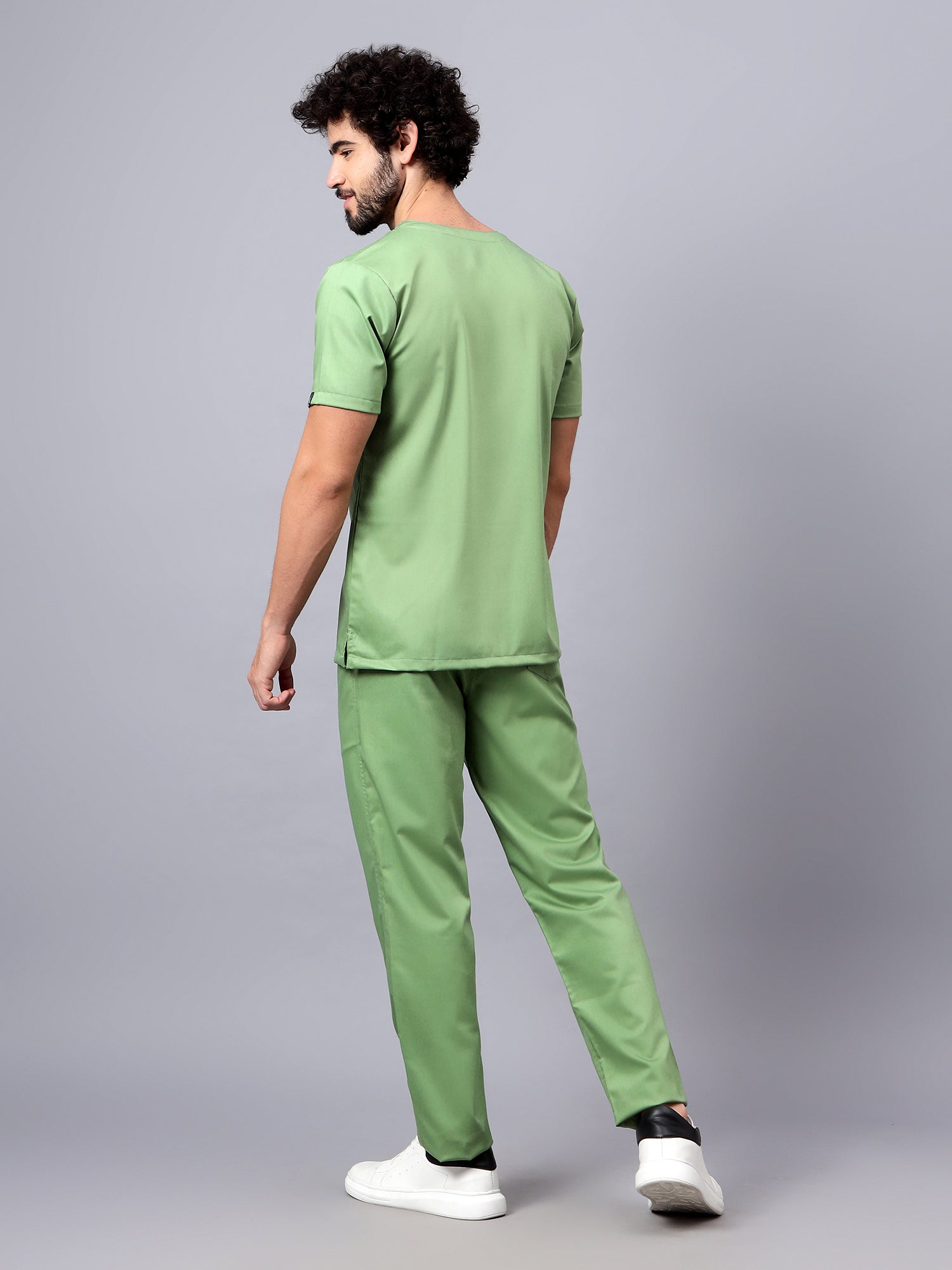 Stretchable (2Way) Male Pista Green V-Neck With Straight Pant Scrub Set