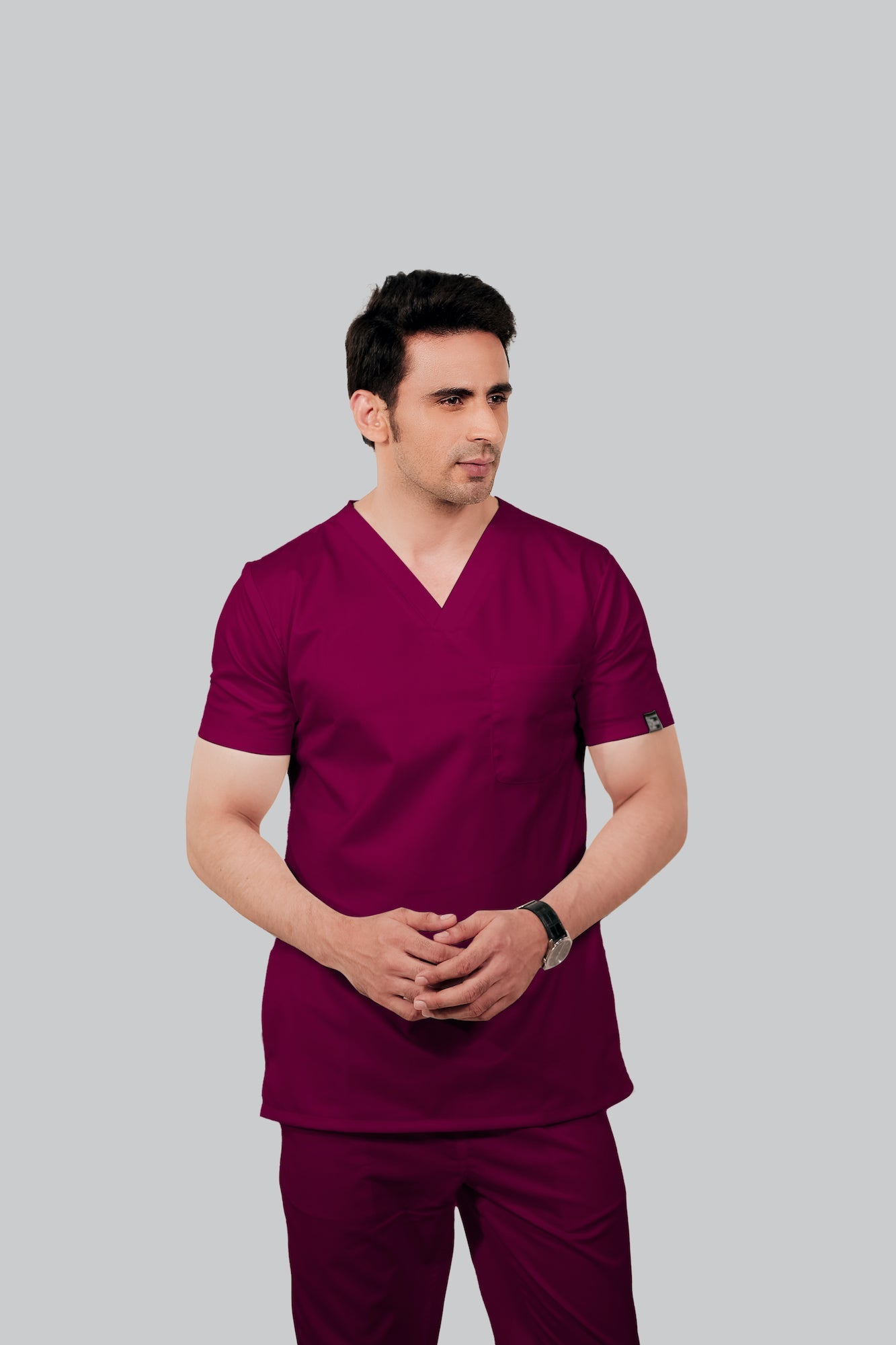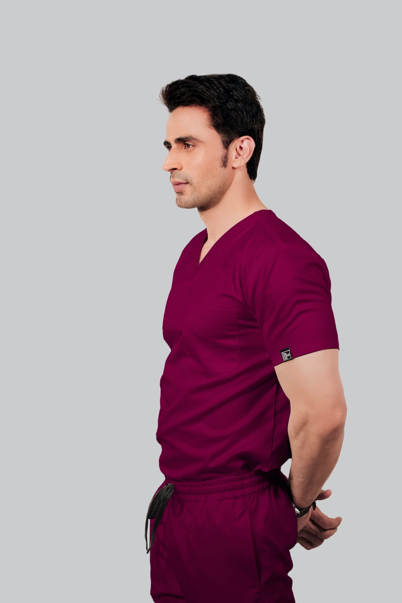 Stretchable (2Way) Male Wine V-Neck Scrub Top